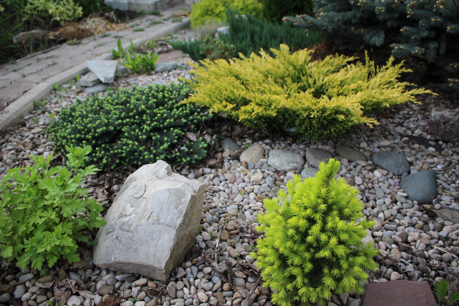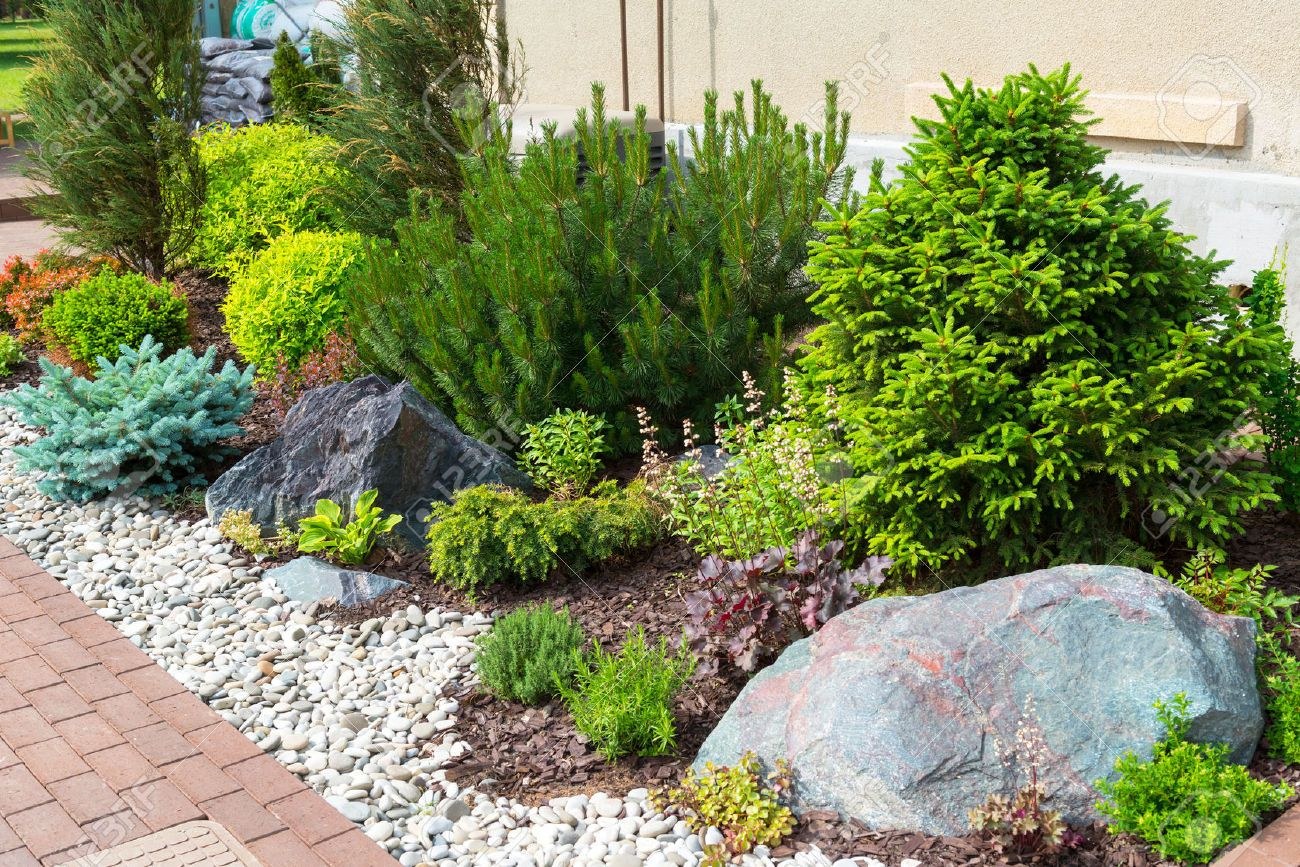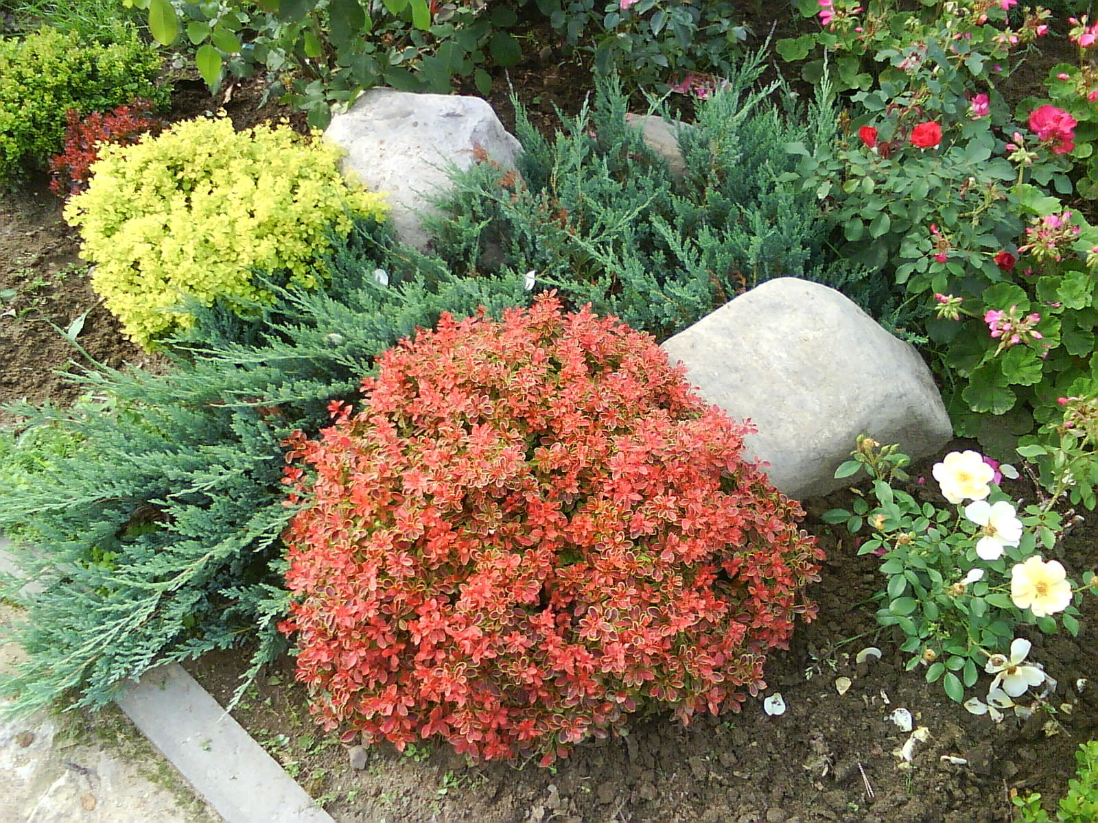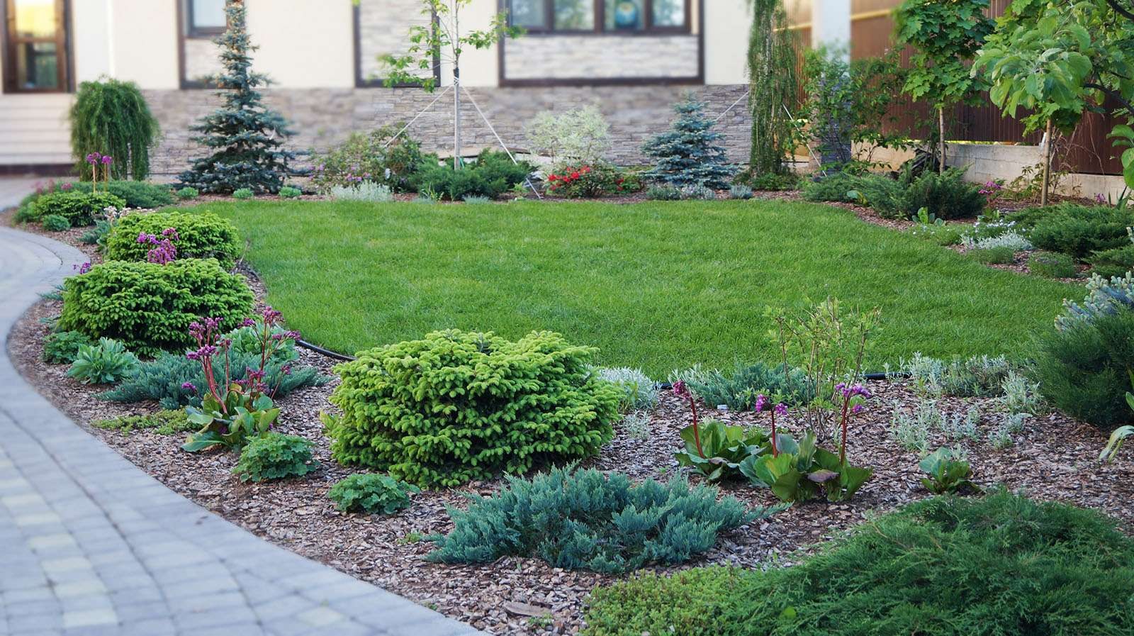 Клумба с рододендронами и хвойниками
