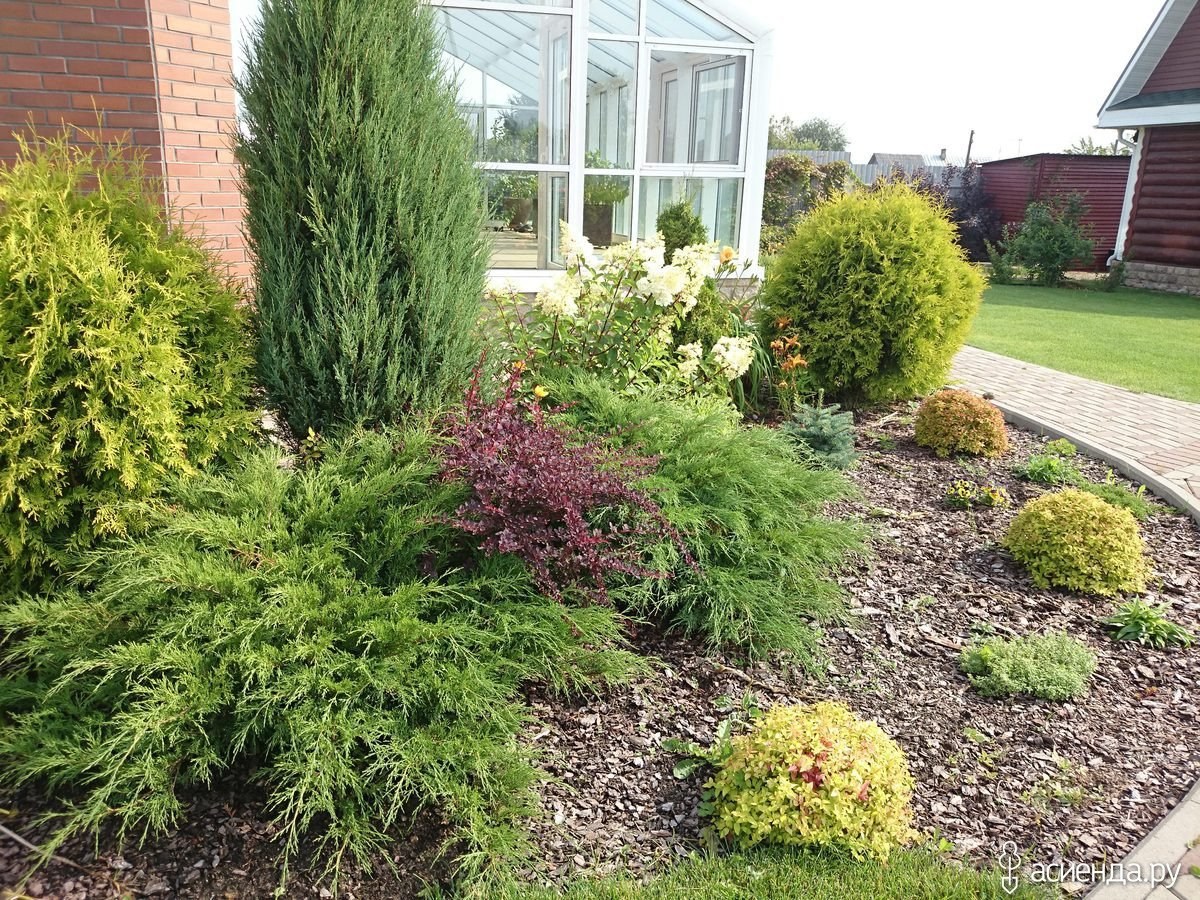Клумба туя Хоста можжевельник