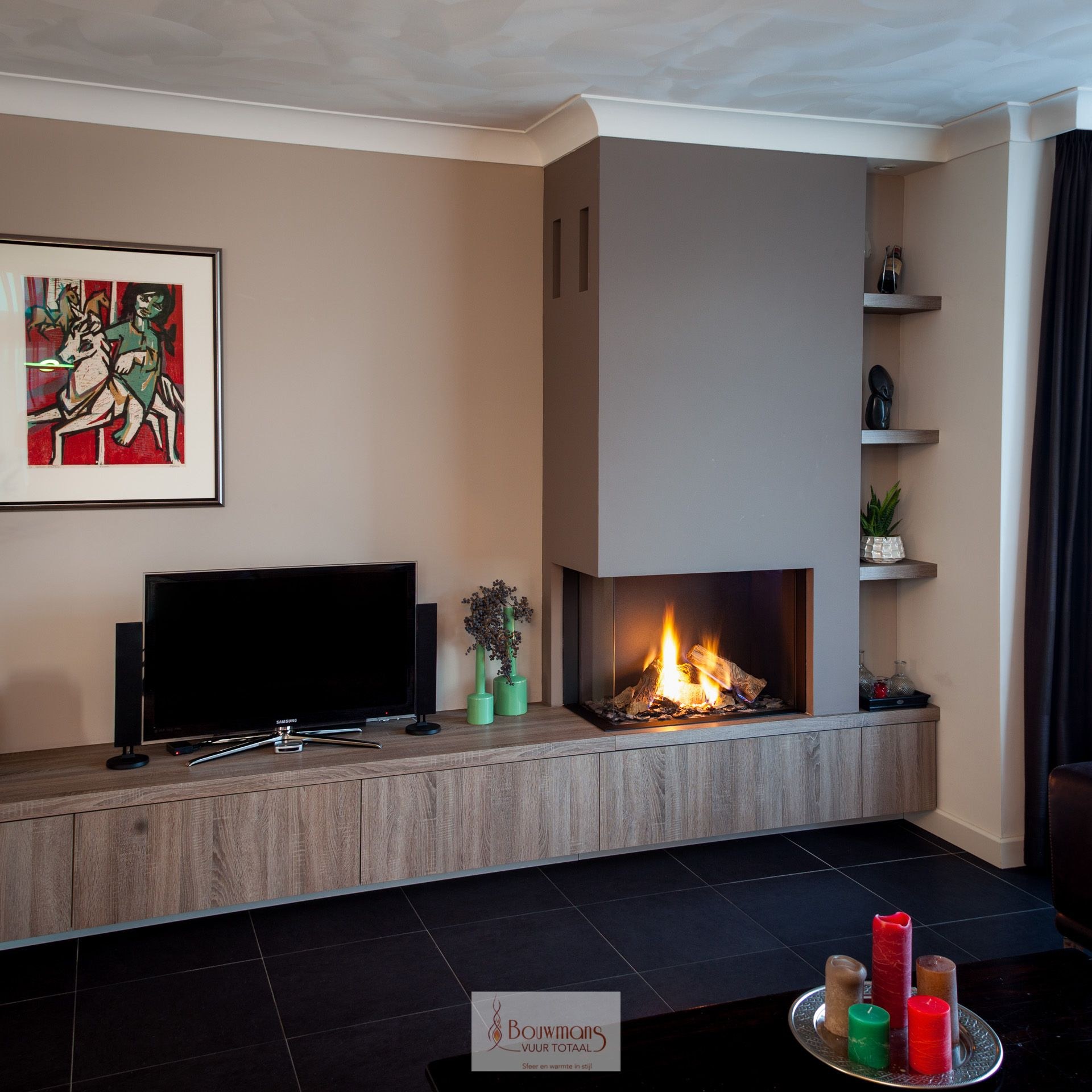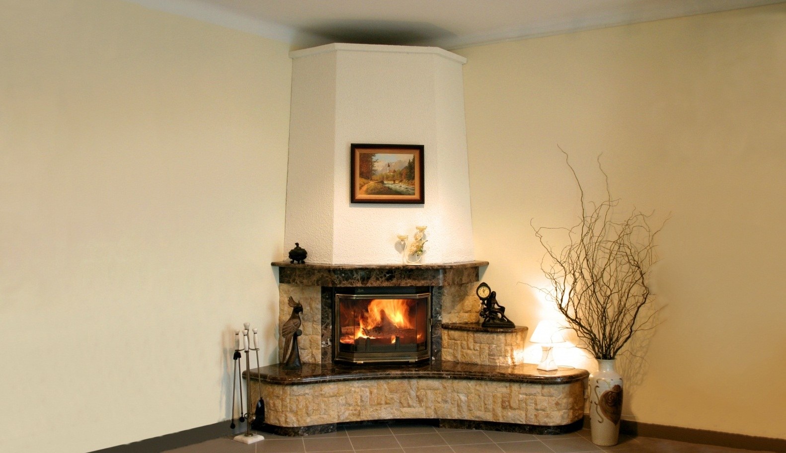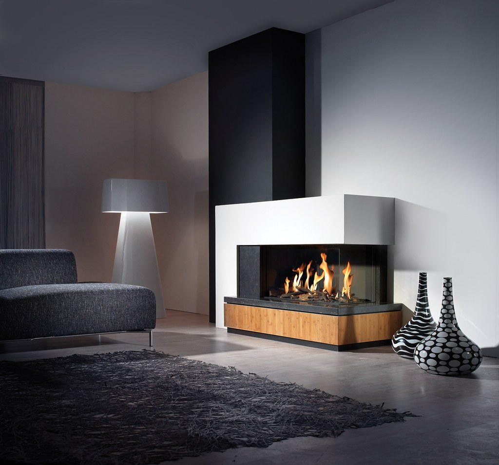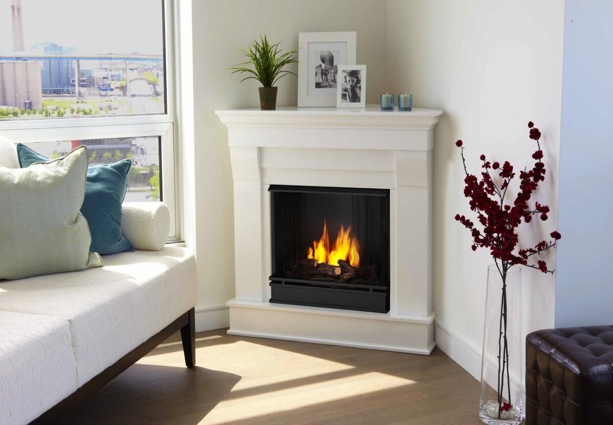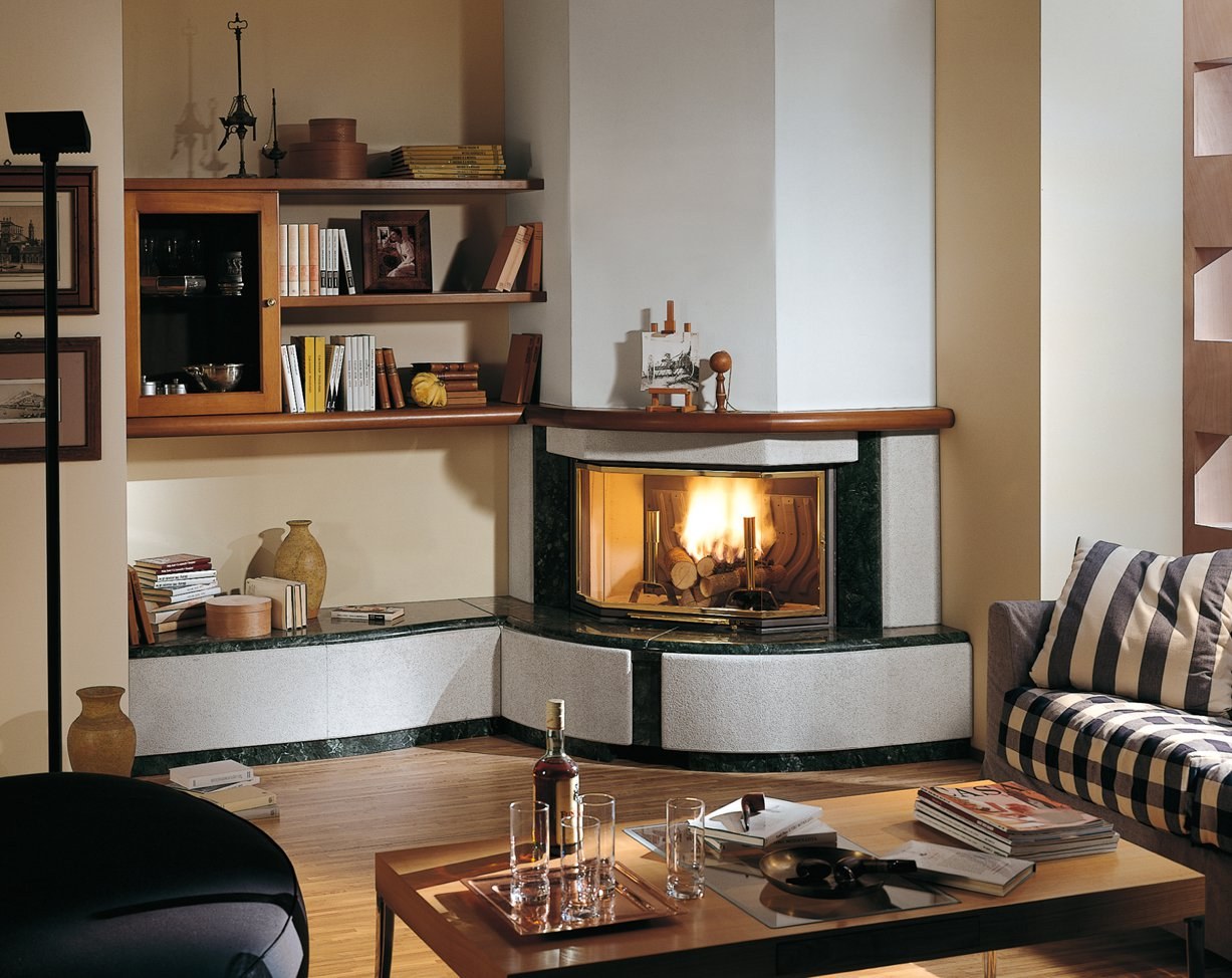 Угловой камин в интерьере