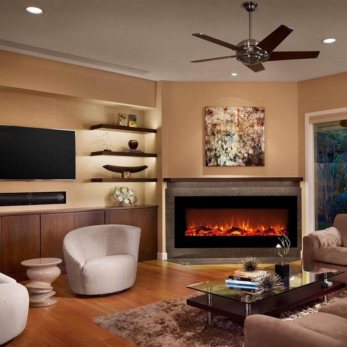 Электрический камин в интерьере гостиной