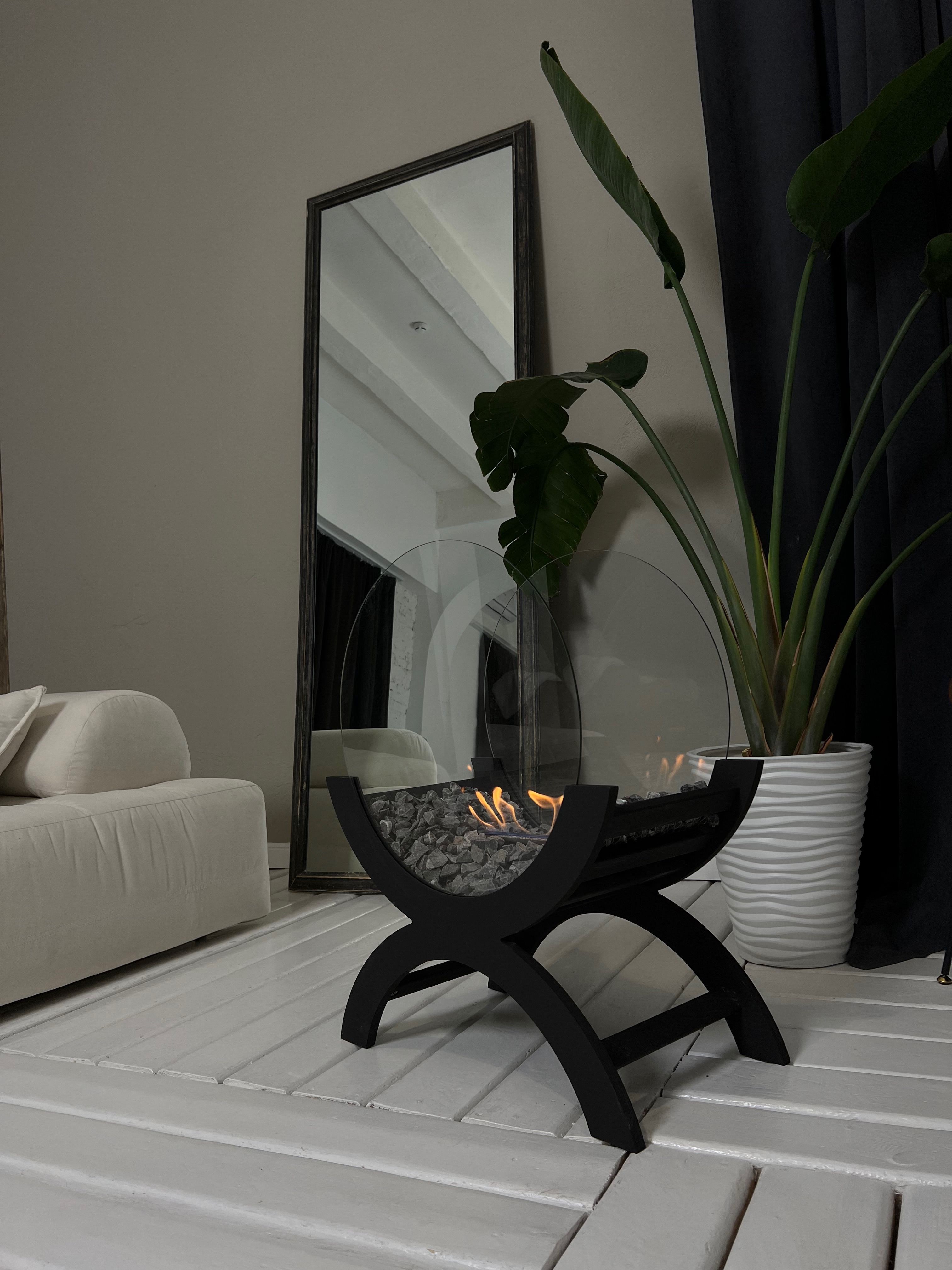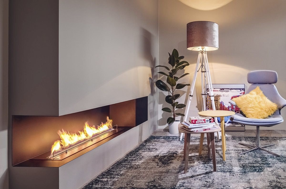 Напольный биокамин в интерьере (59 фото)