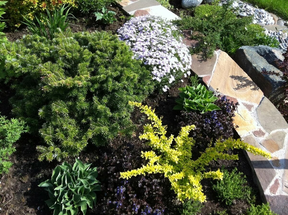 Низкорослые хвойники на миксбордере