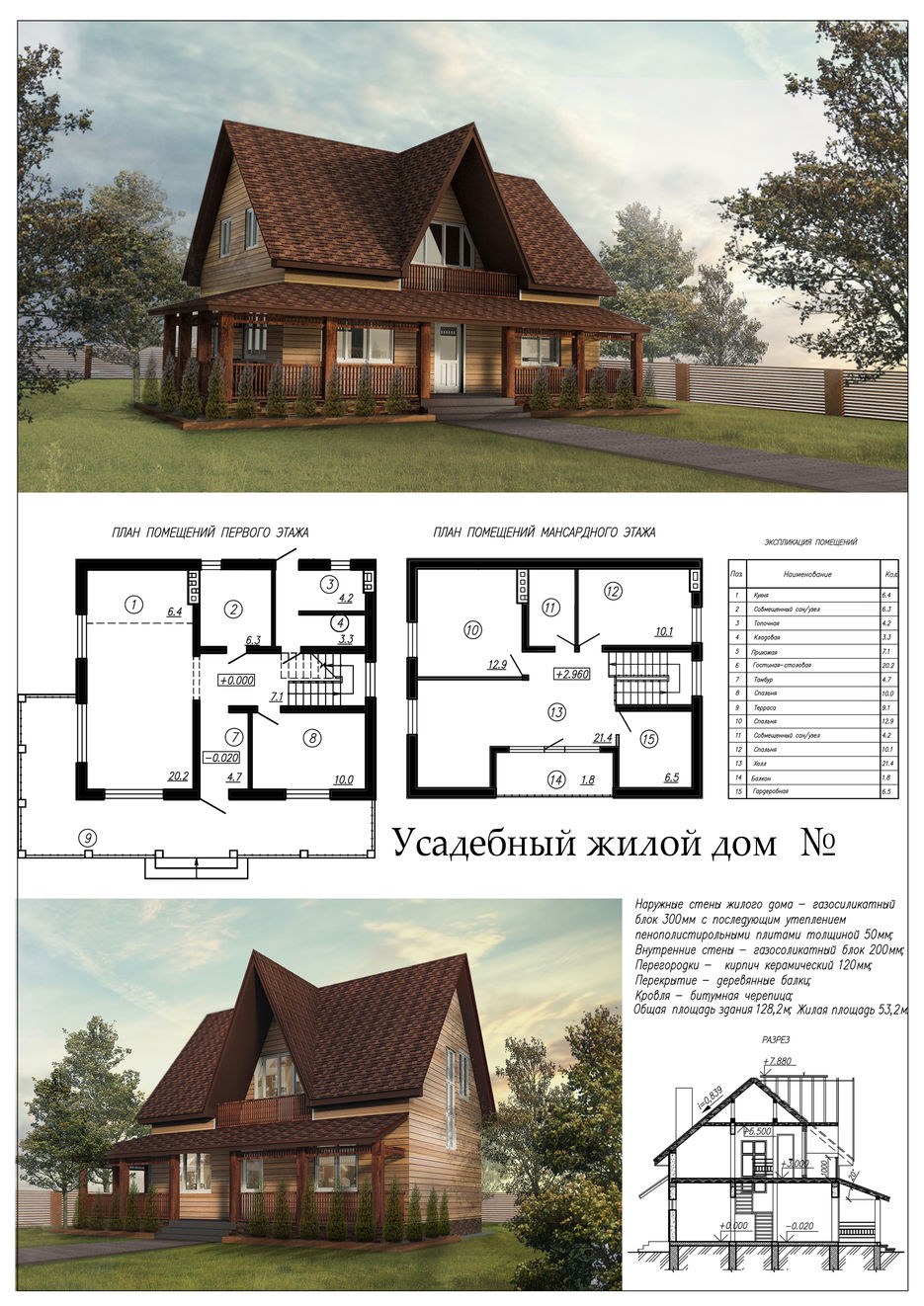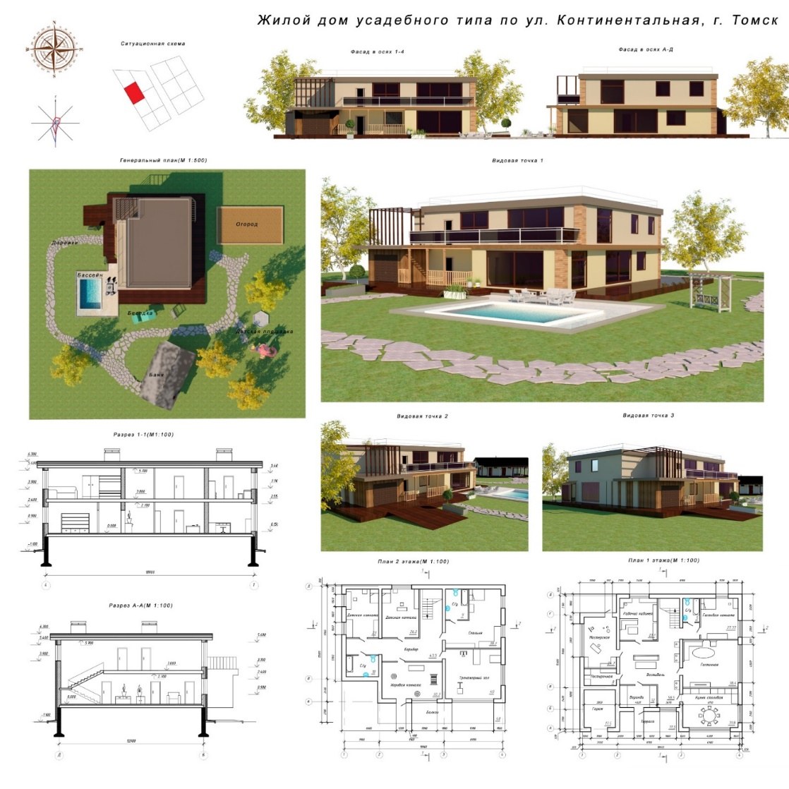 Индивидуальный жилой дом усадебного типа колористическое решение