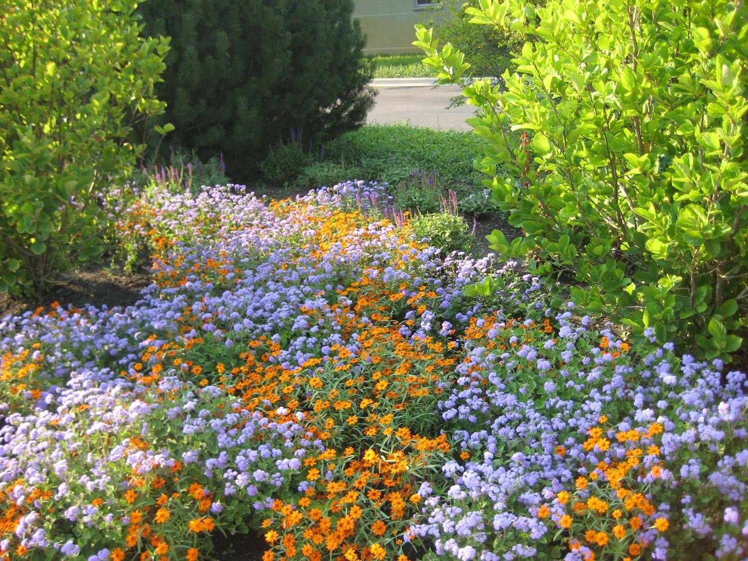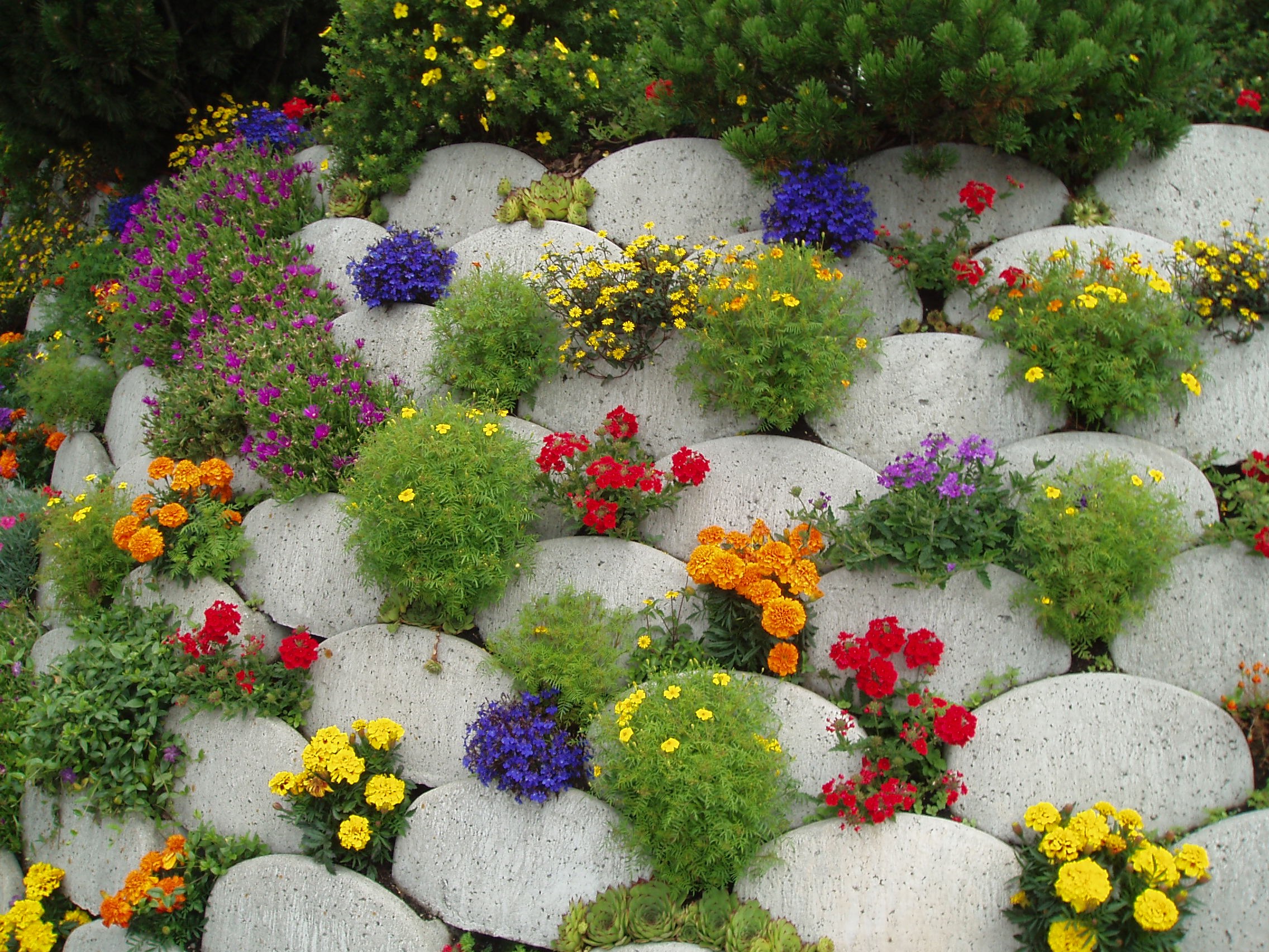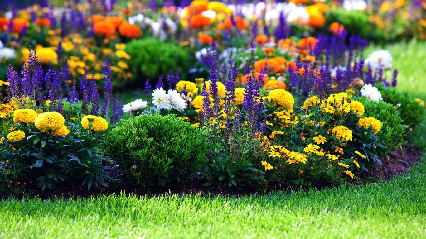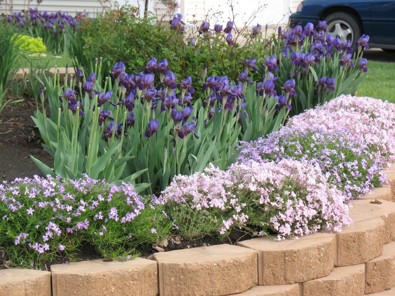 Цветник лесенка, бархатцы, ирисы, тигровая Лилия