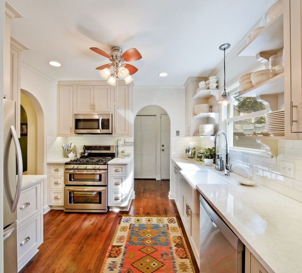 Интерьер узкой кухни