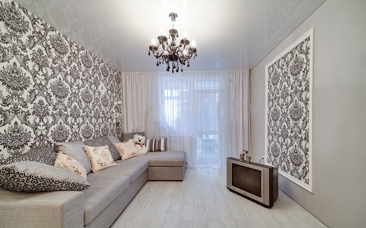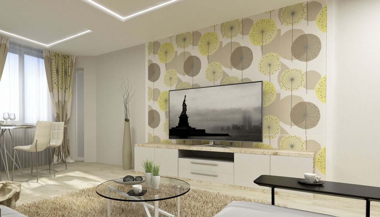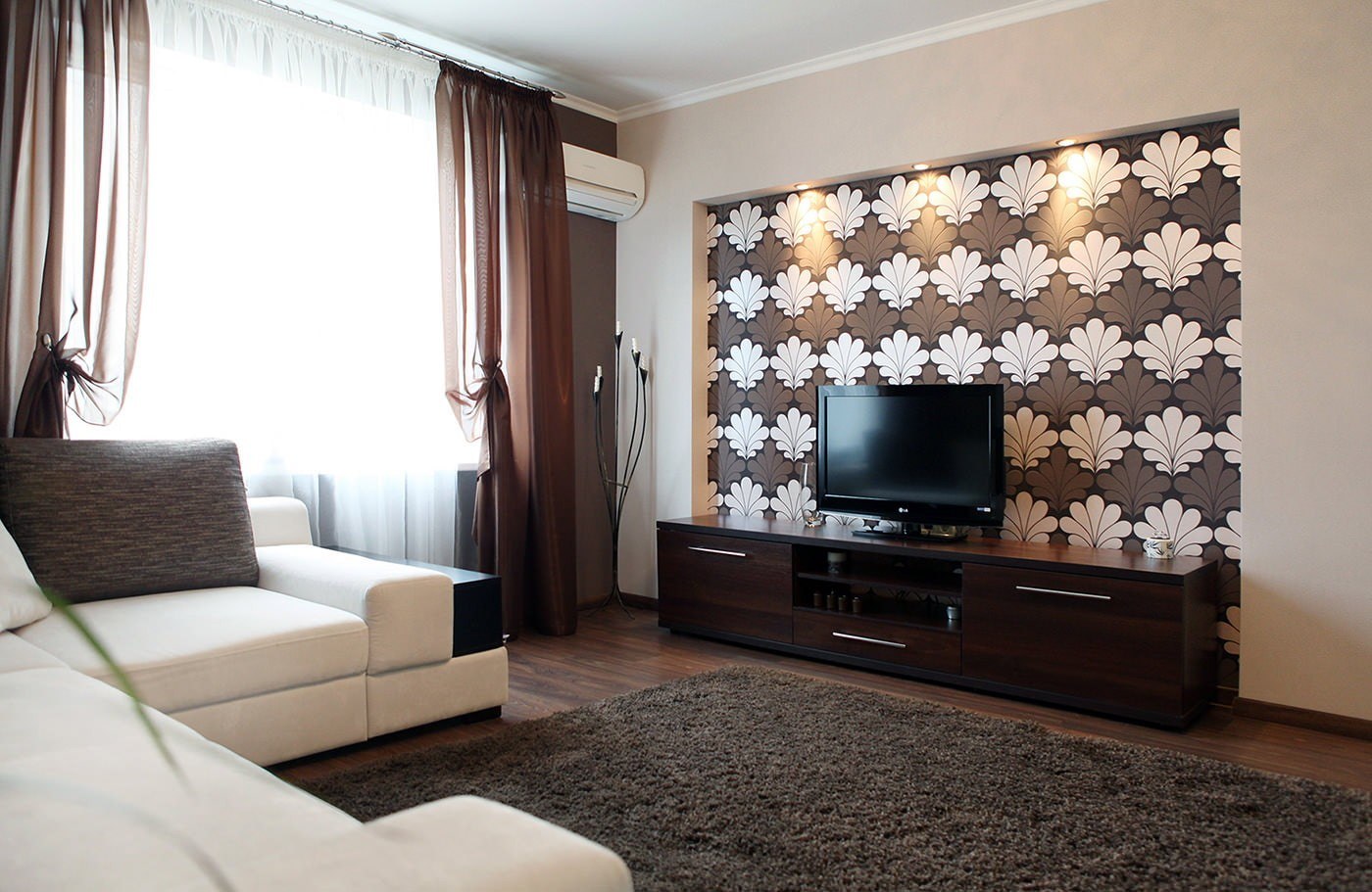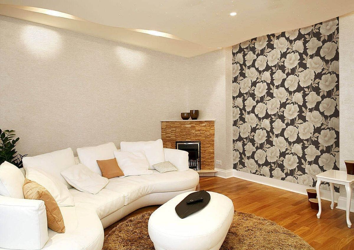 Стильно поклеить обои в гостиной интерьеры (60 фото)