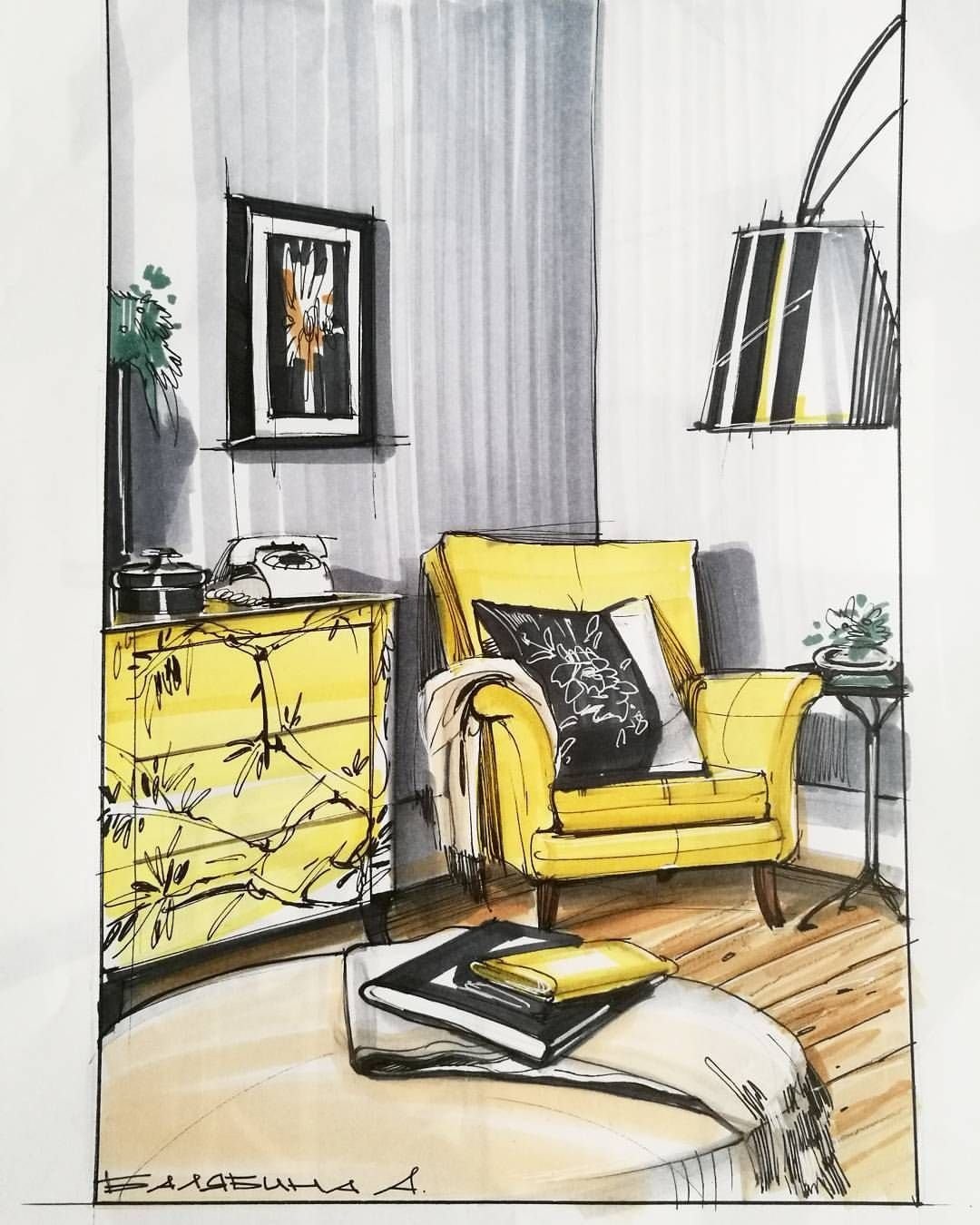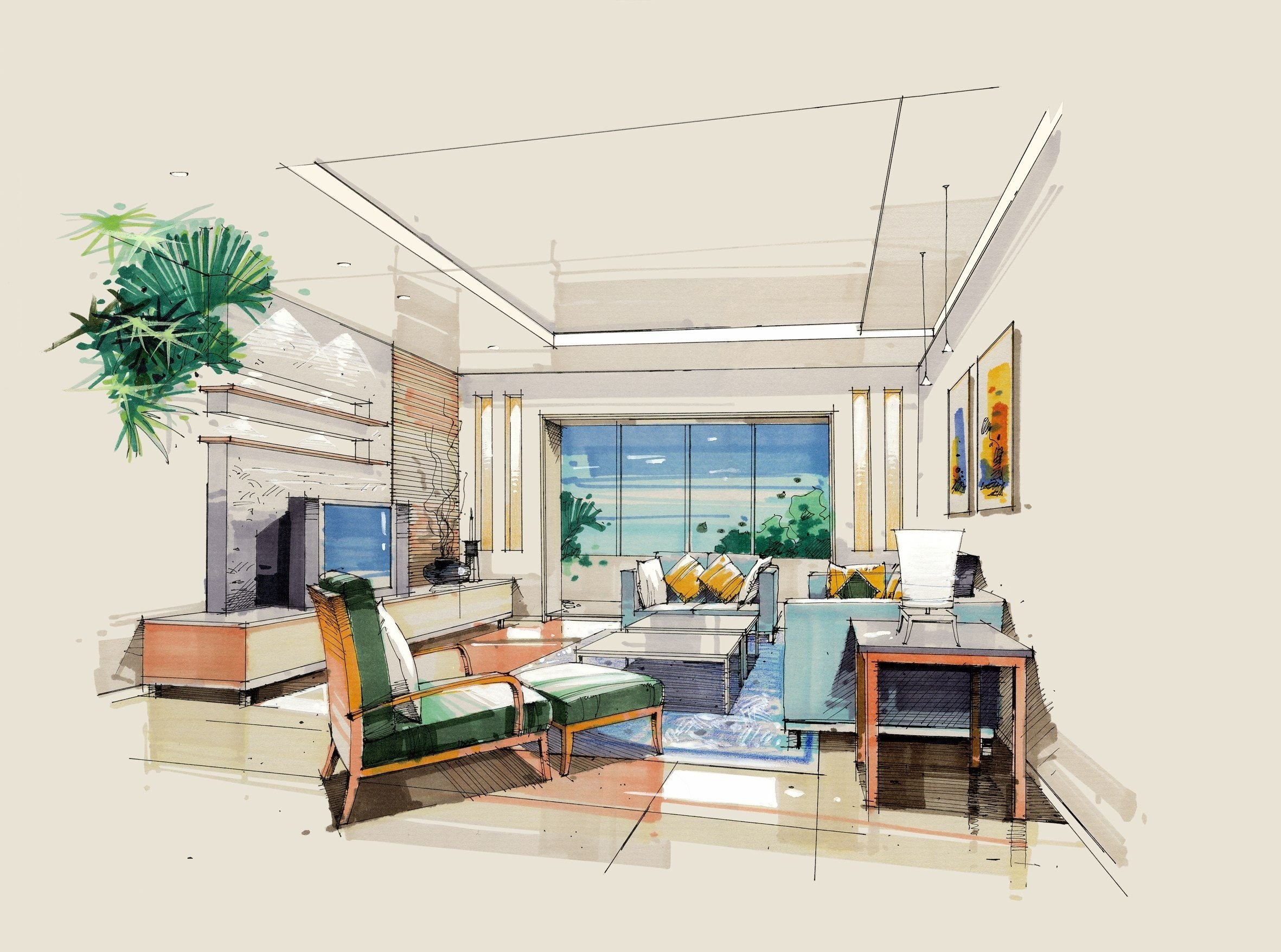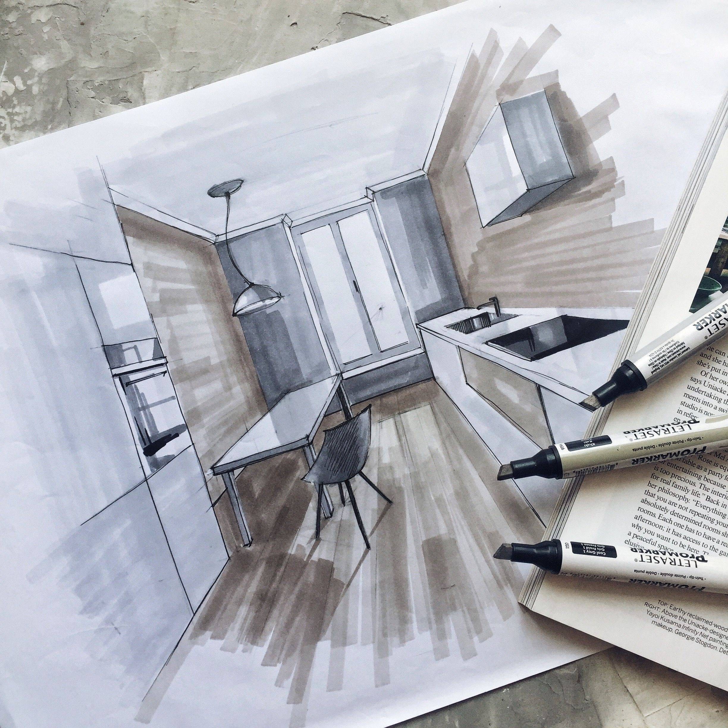 Сергей Тихомиров - интерьерный скетчинг маркерами