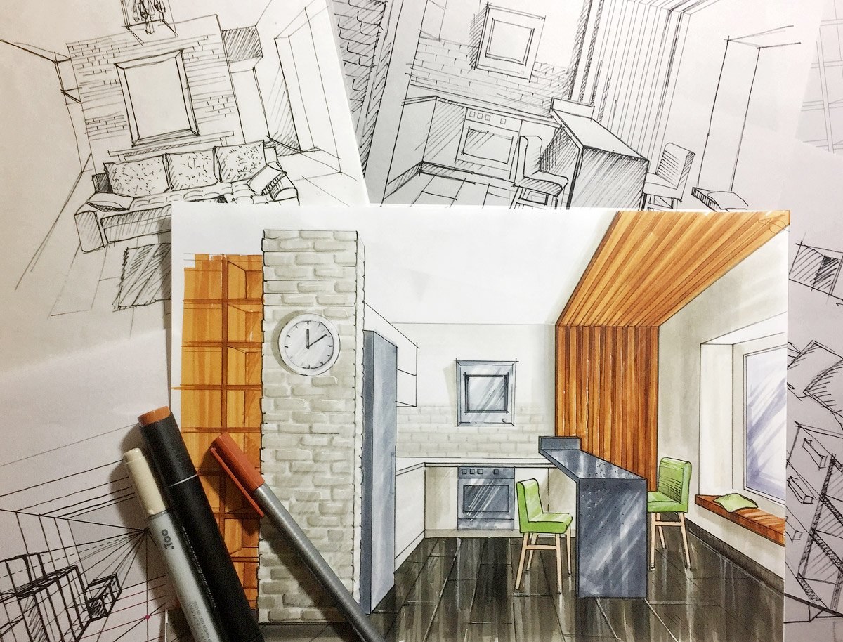 Наброски дизайнера интерьера