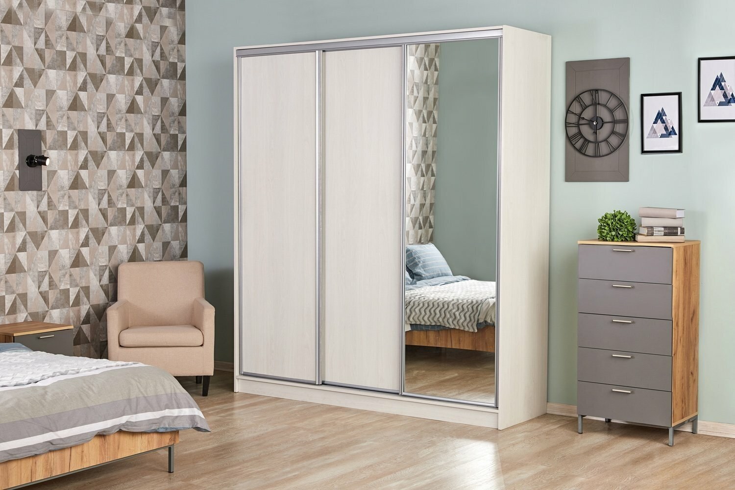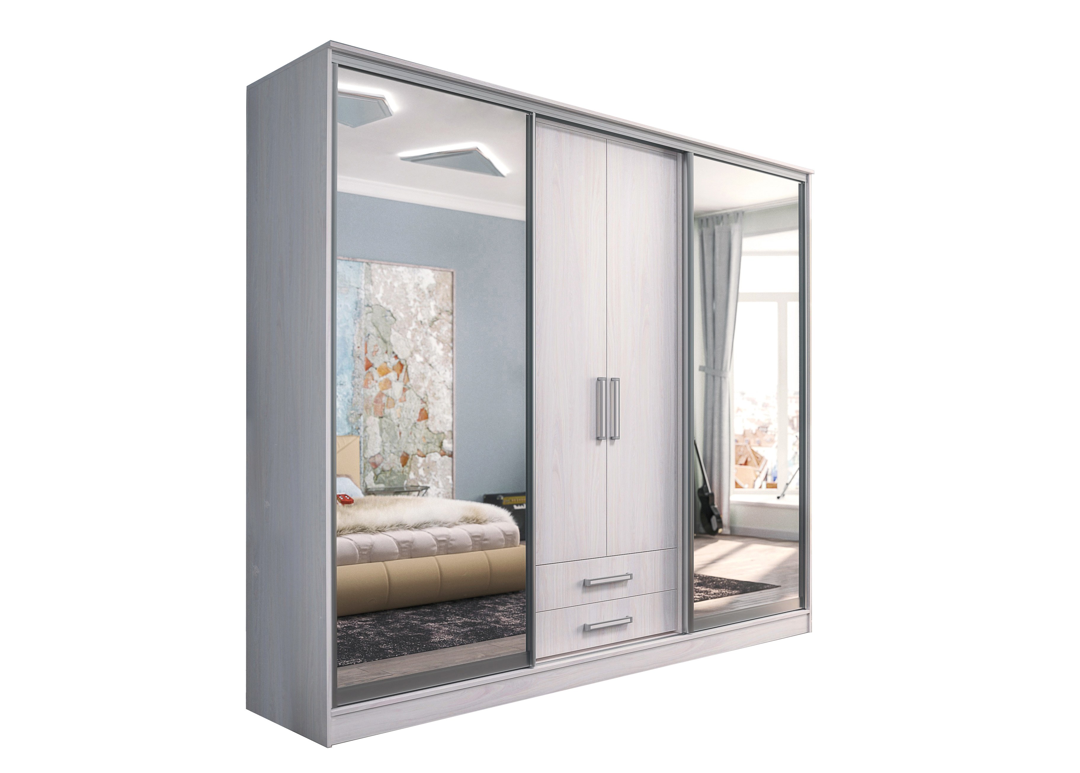 Шкаф купе ясень Анкор светлый с зеркалом