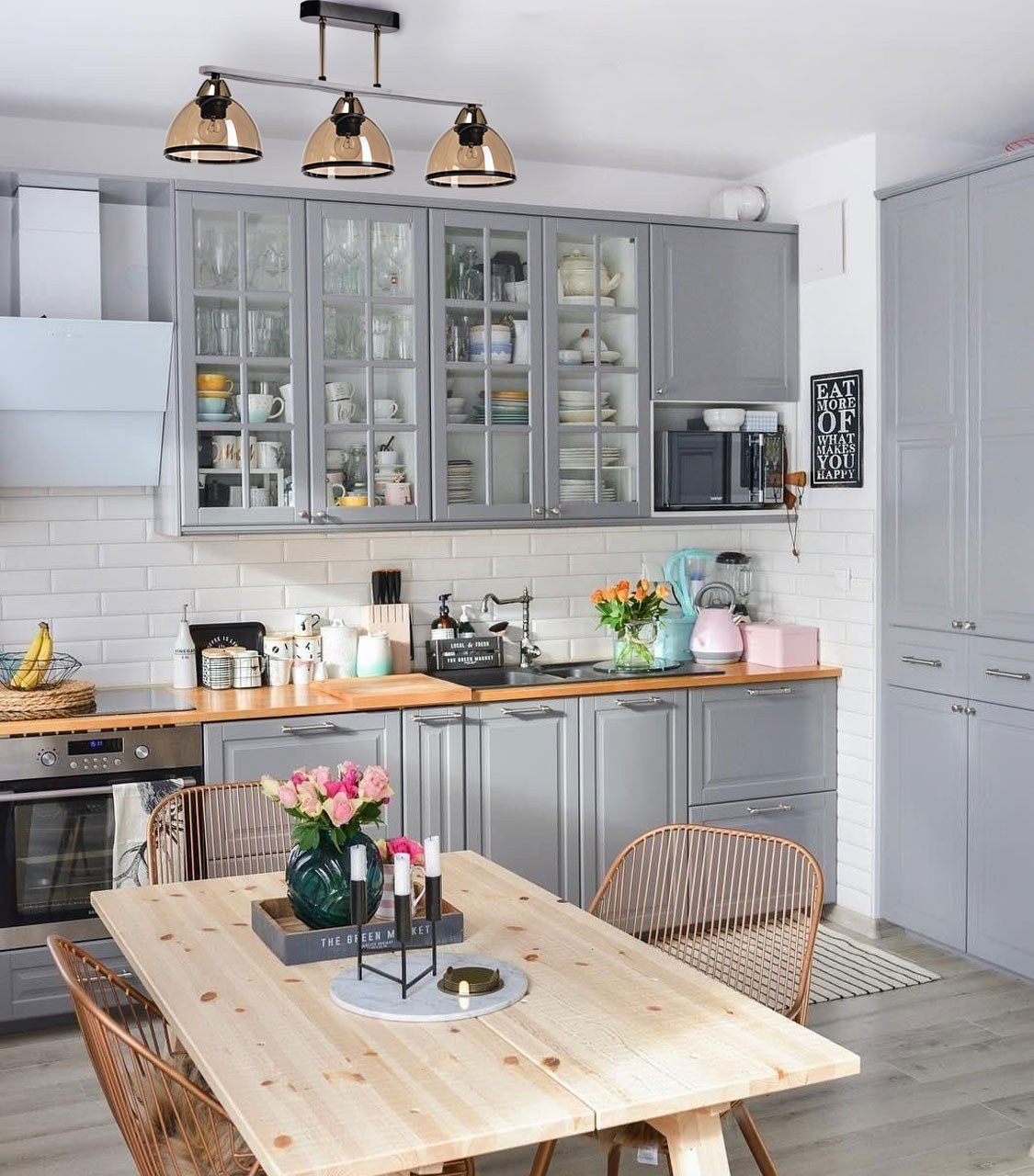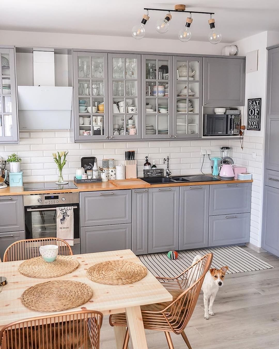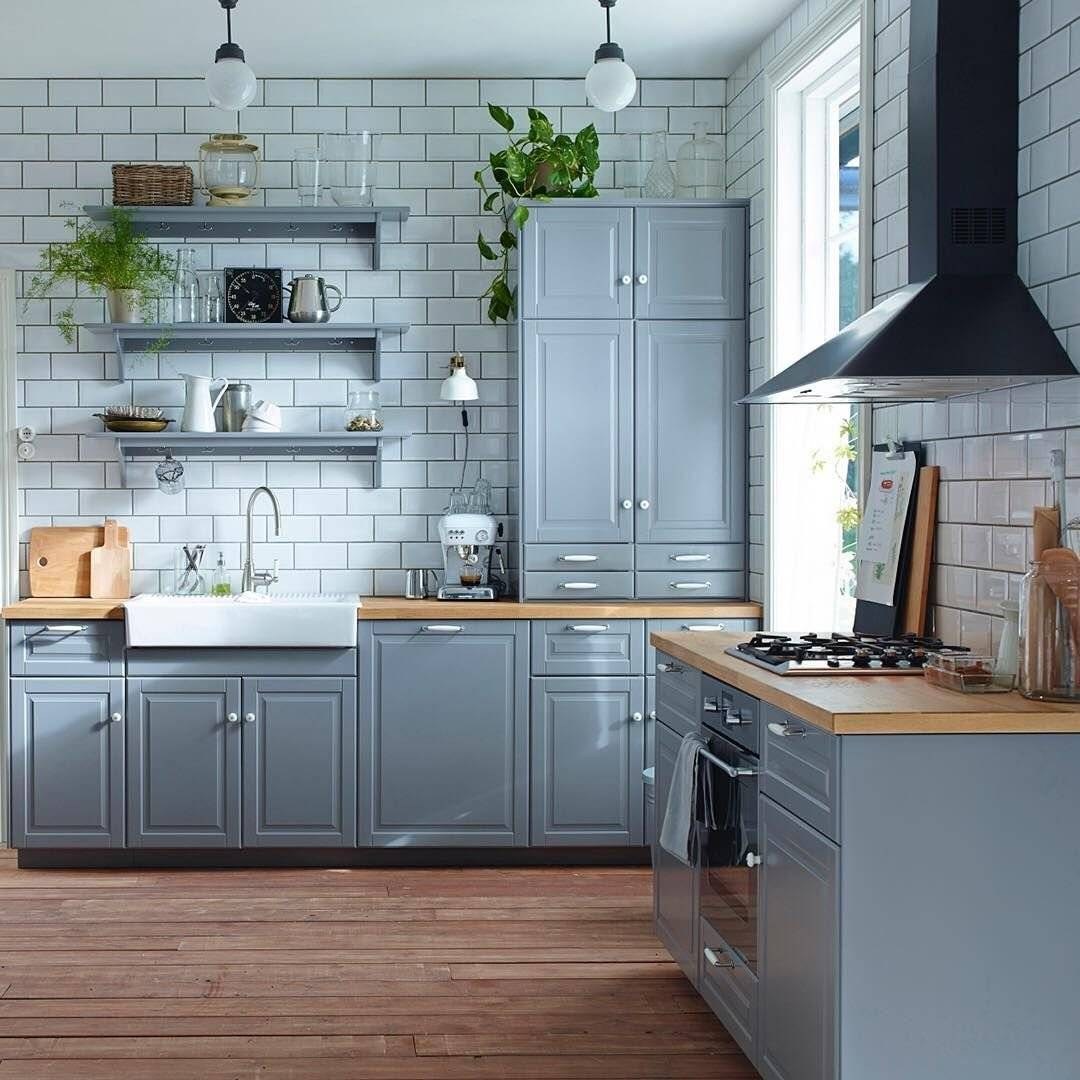 Кухня икеа серая с деревянной столешницей