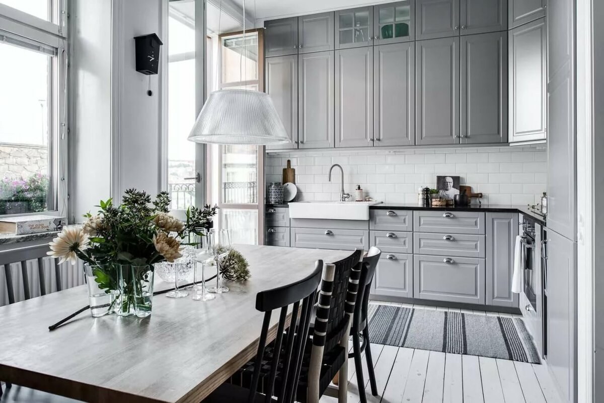 Стиль Сканди в кухне в серых тонах