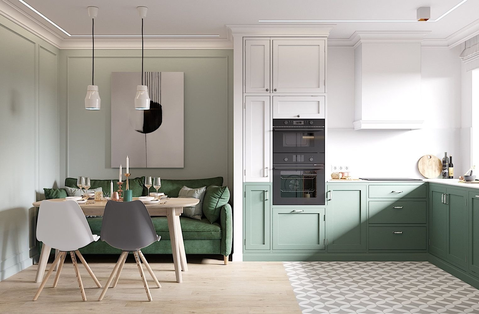 Сканди кухня зеленая