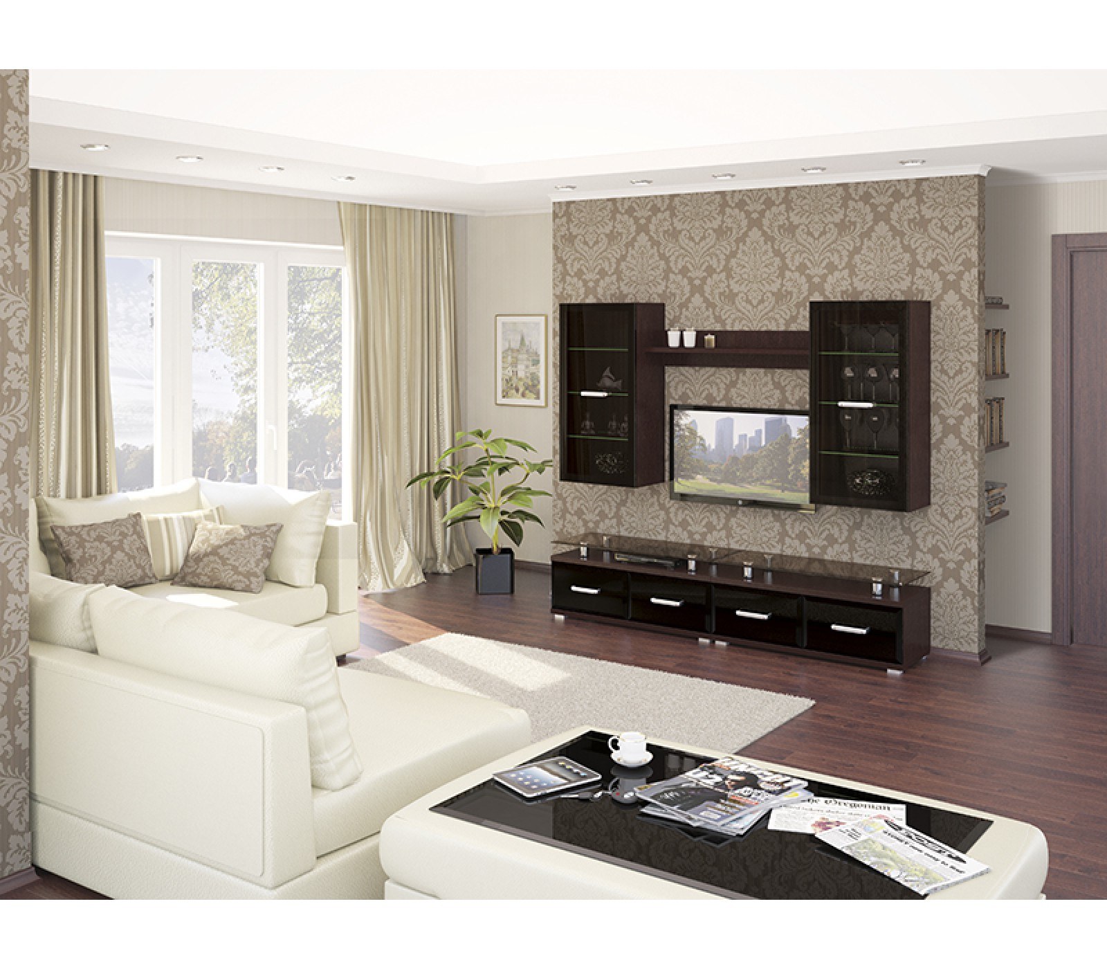 Интерьер гостиной с мебелью цвета венге