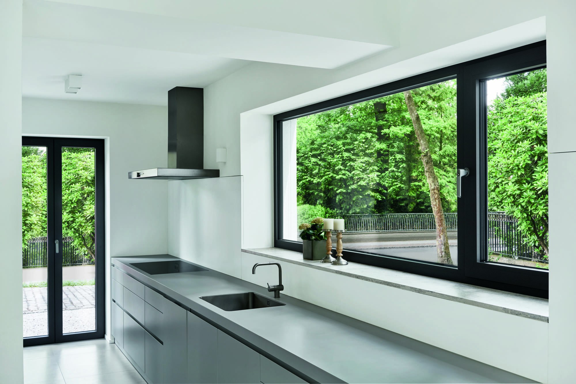 Серые оконные рамы