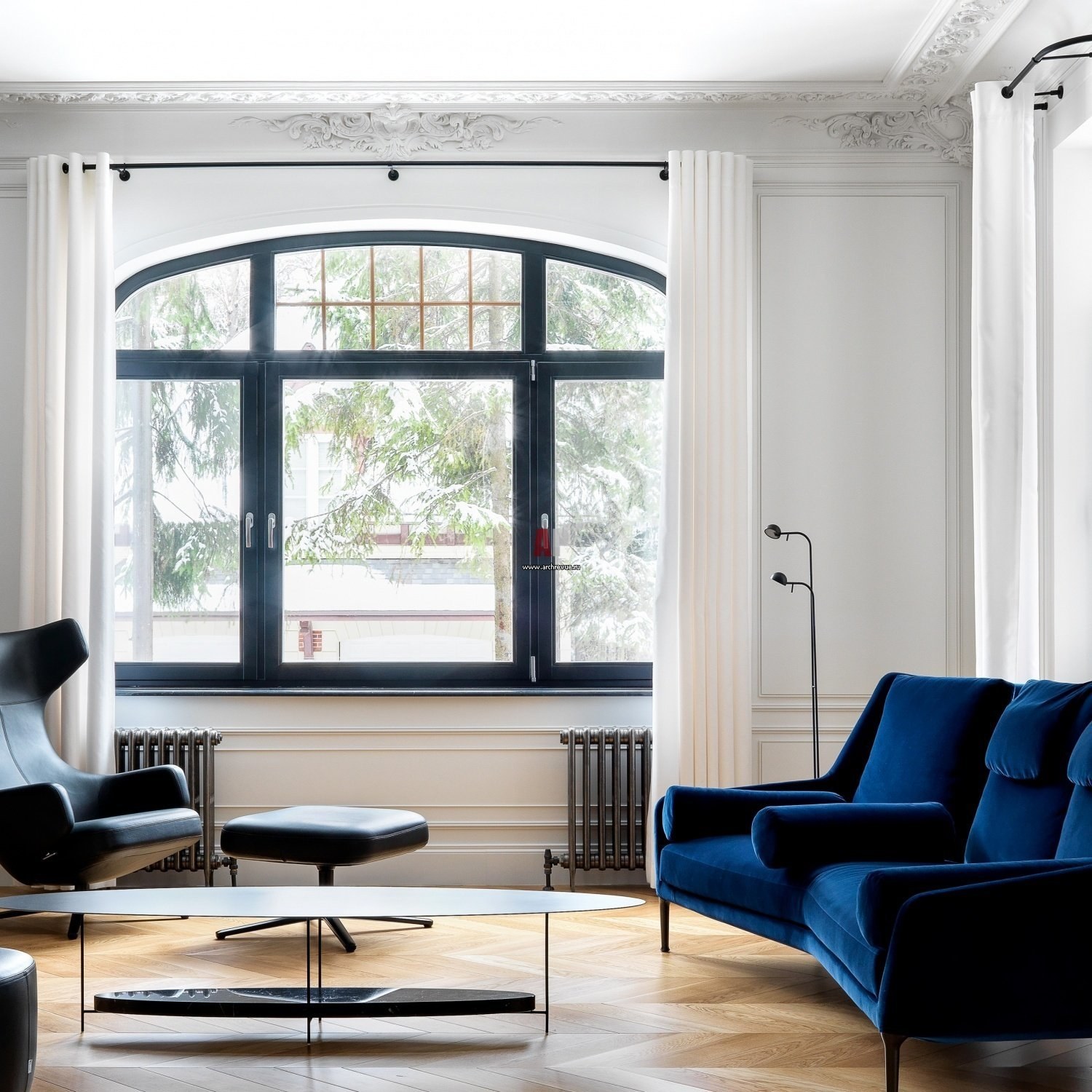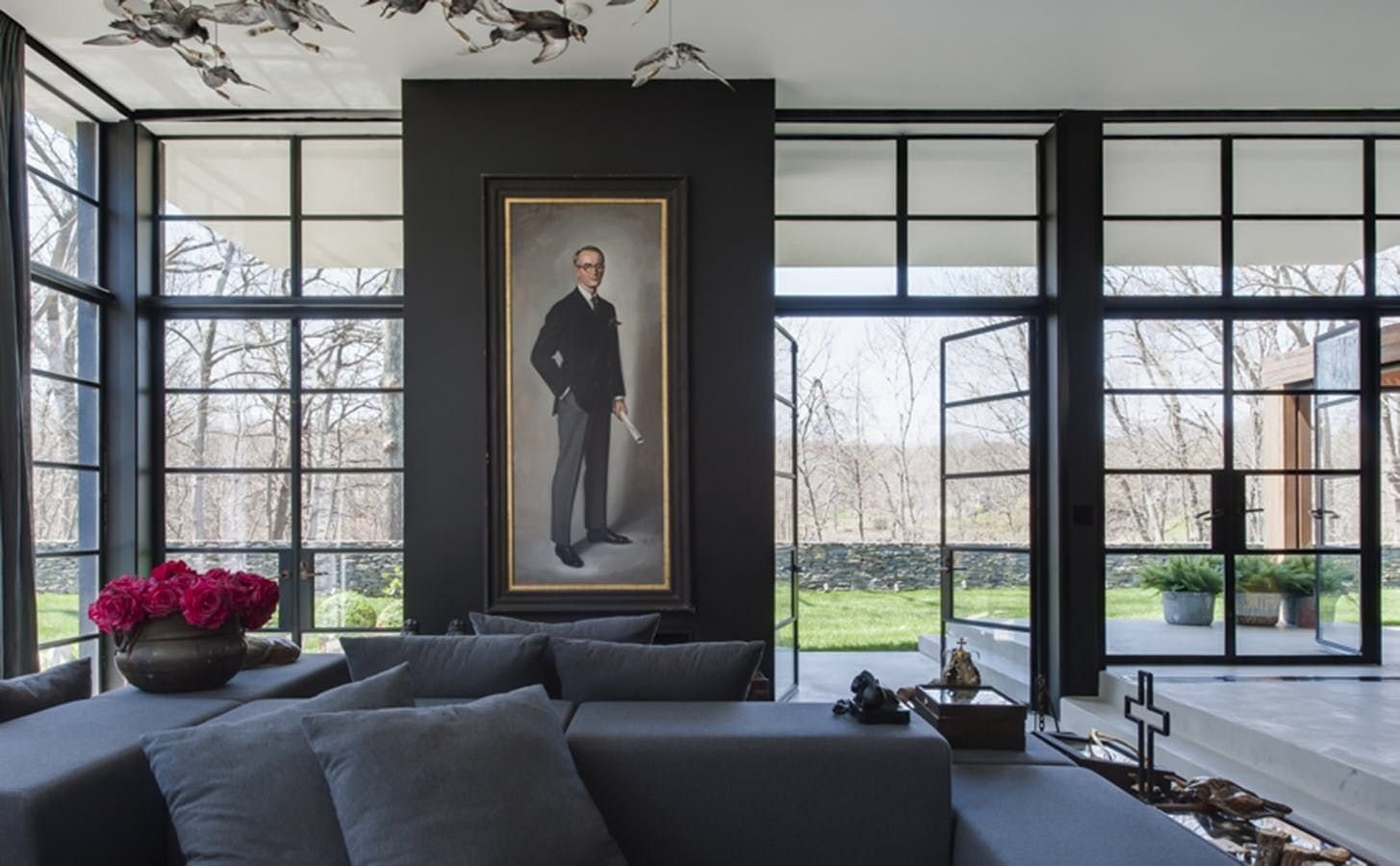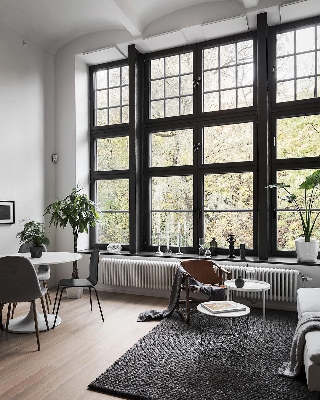 Окна в черной раме в интерьере