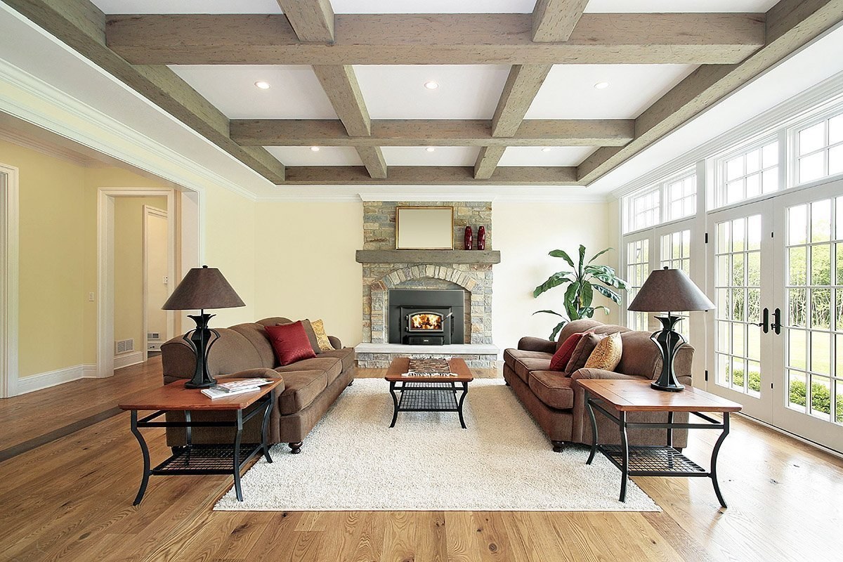 Деревянные потолки с балками в интерьере (58 фото)