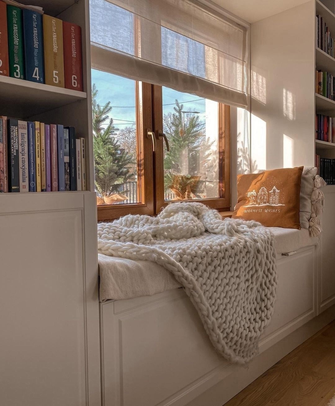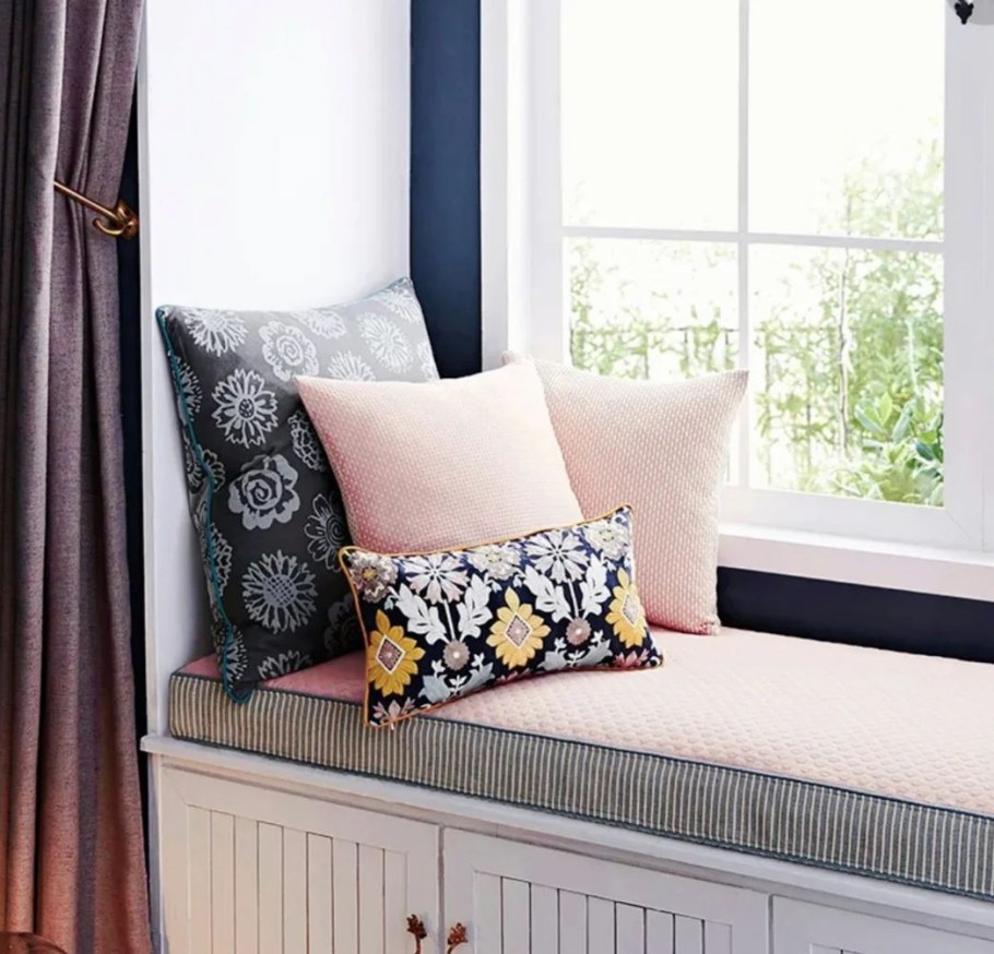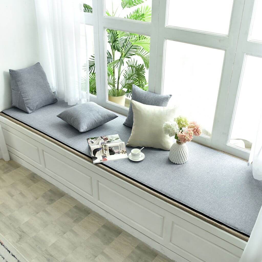 Широкий подоконник с подушками