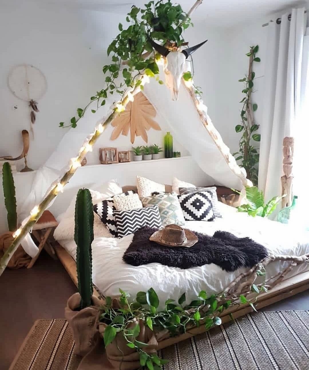 Экостиль в интерьере кровать