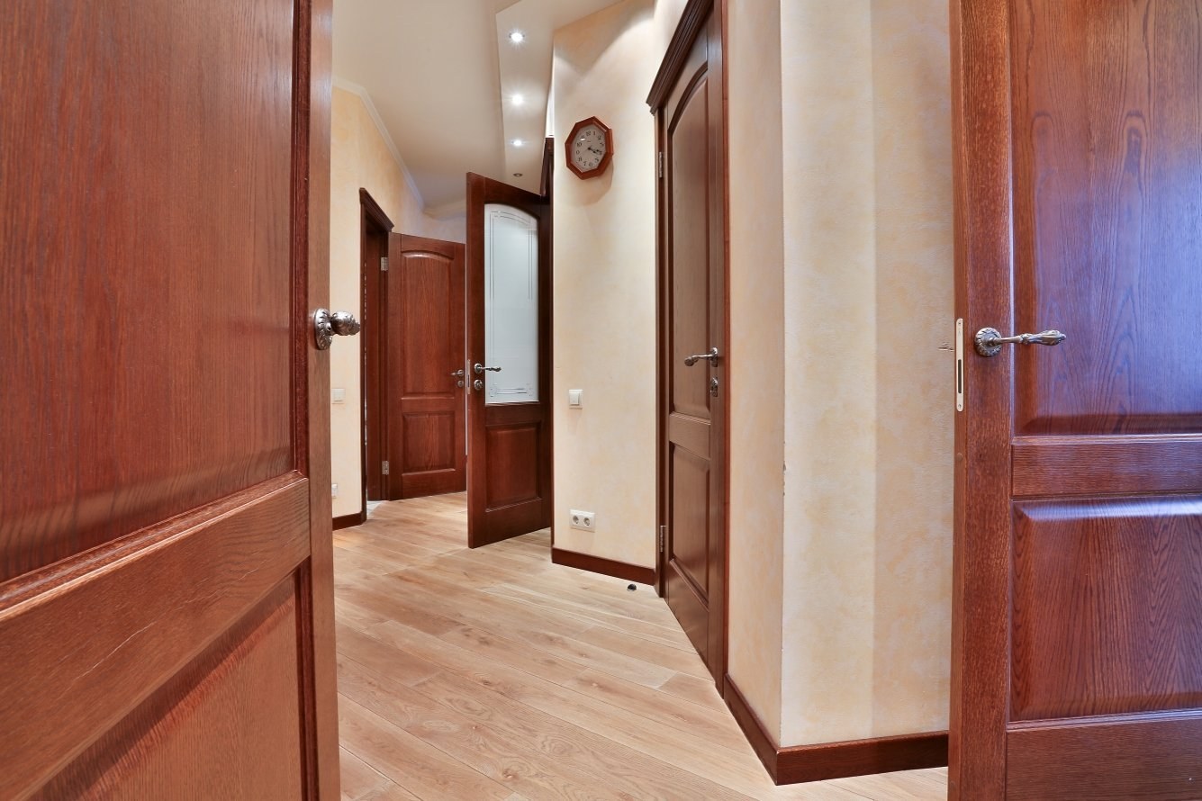Самый красивый интерьер квартиры с дверями под красное дерево