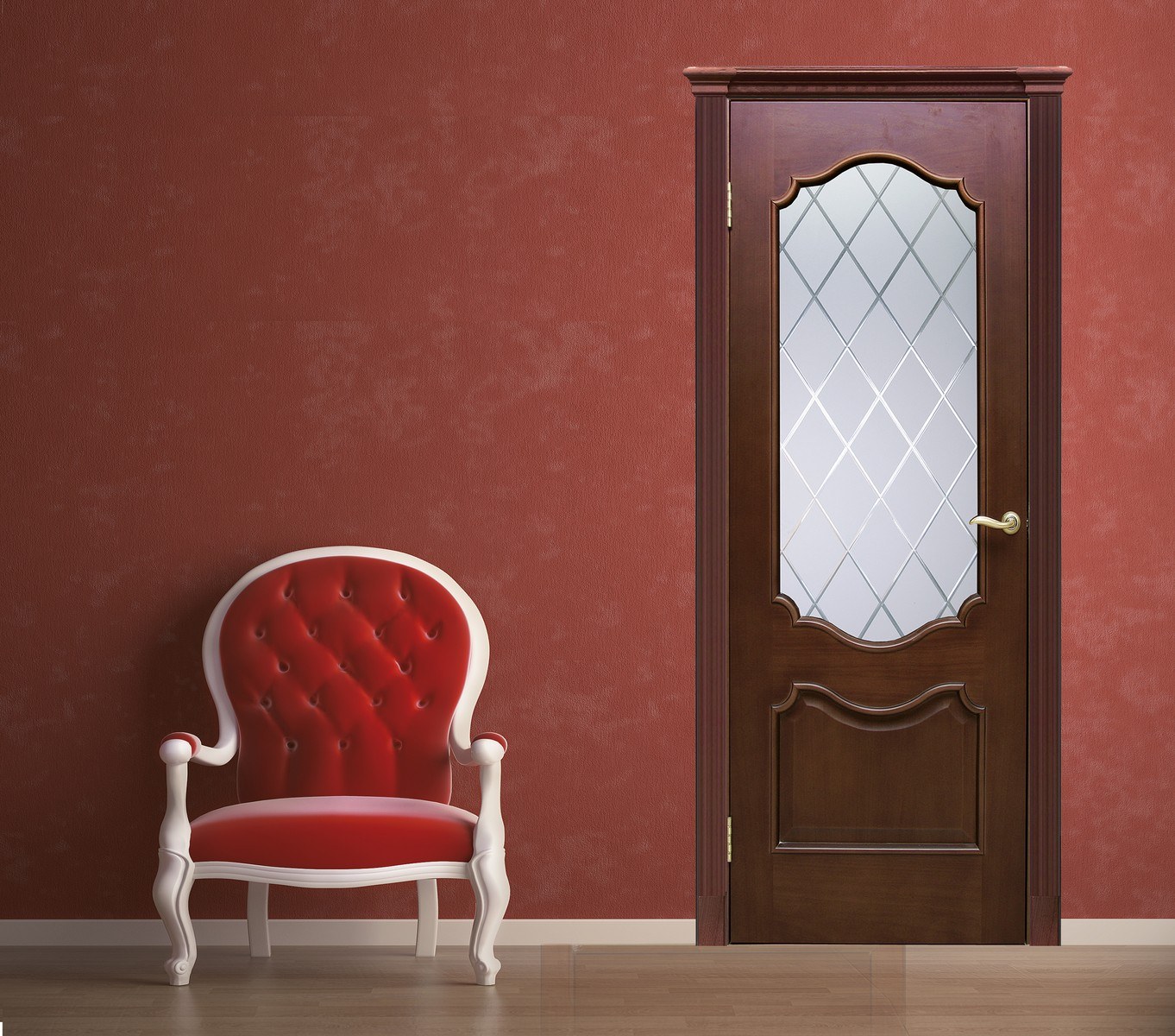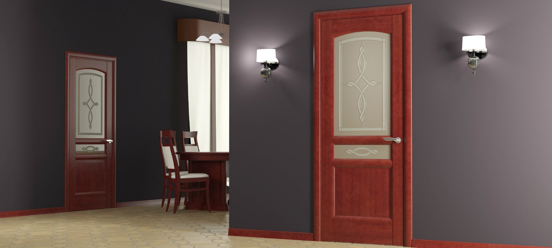 Двери межкомнатные филенчатые шпонированные красное дерево