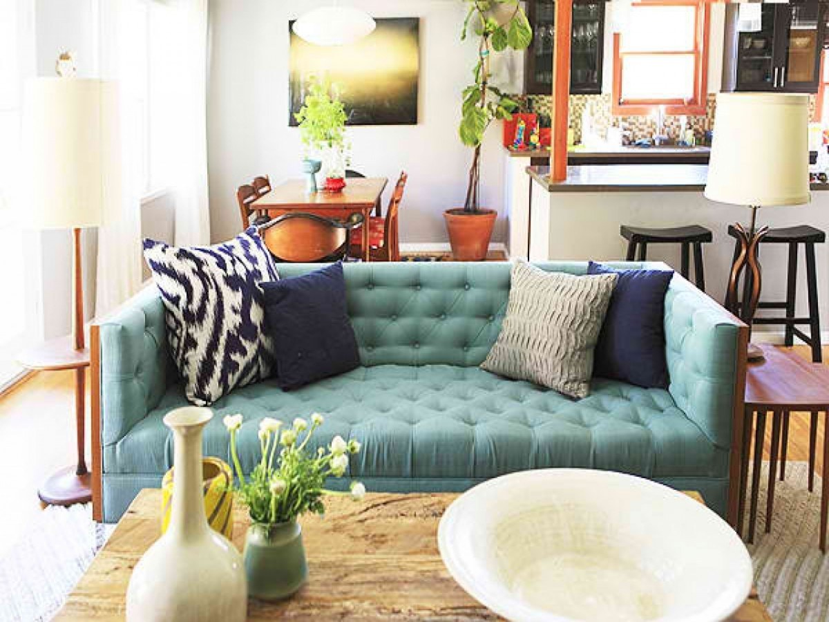 Бирюзовый диван в интерьере