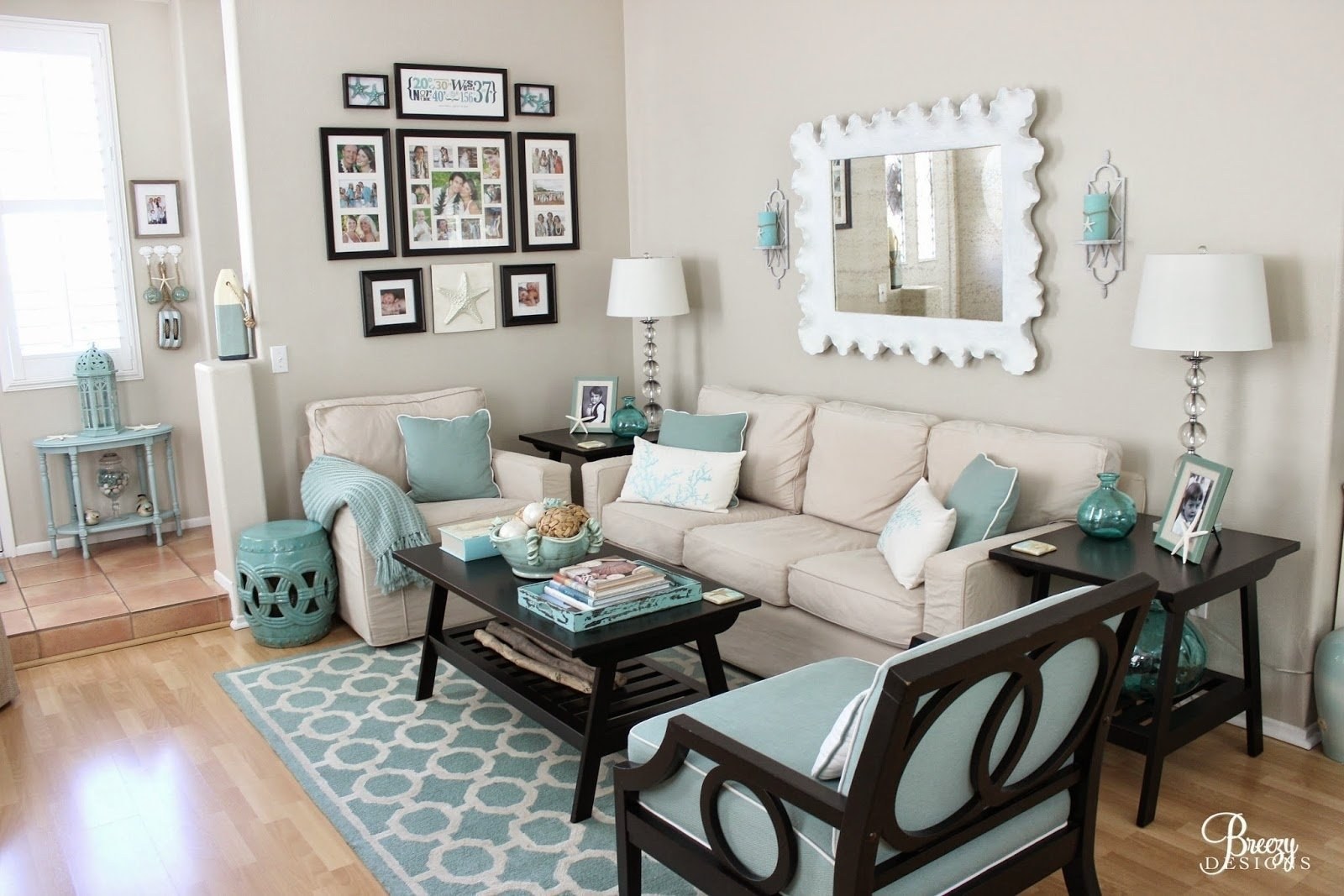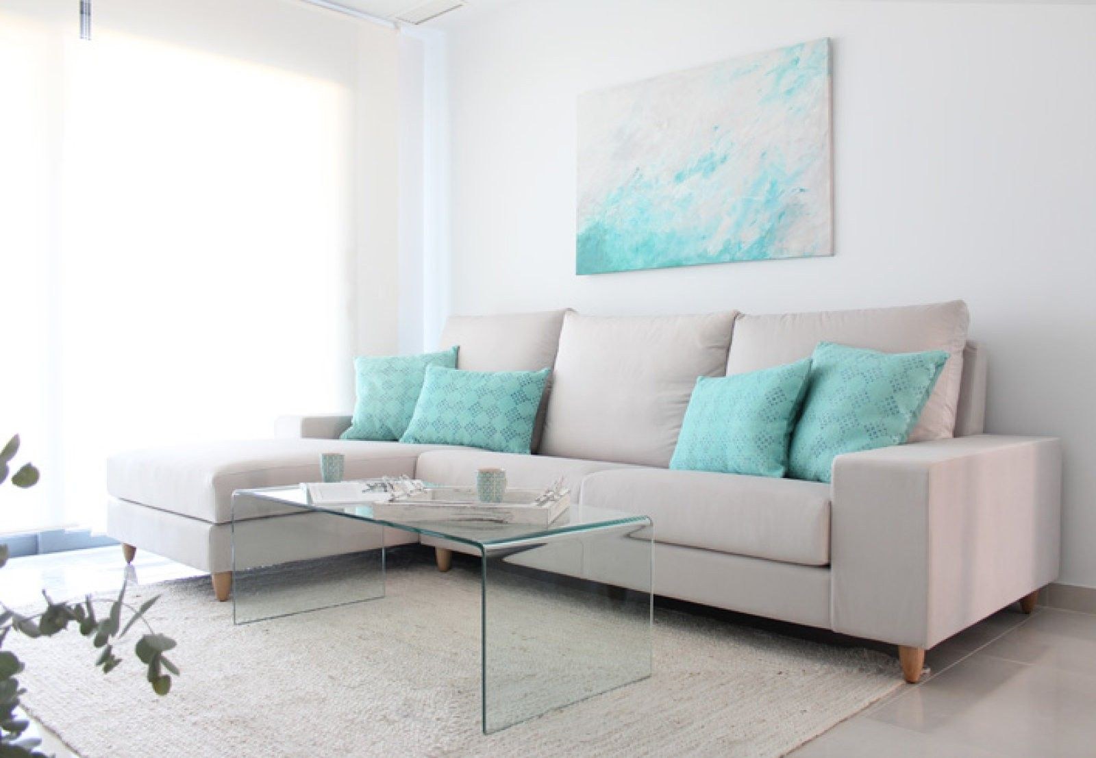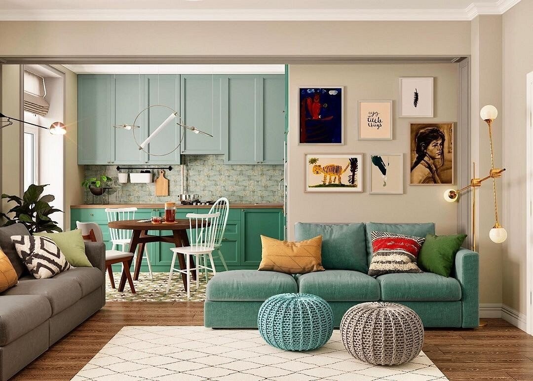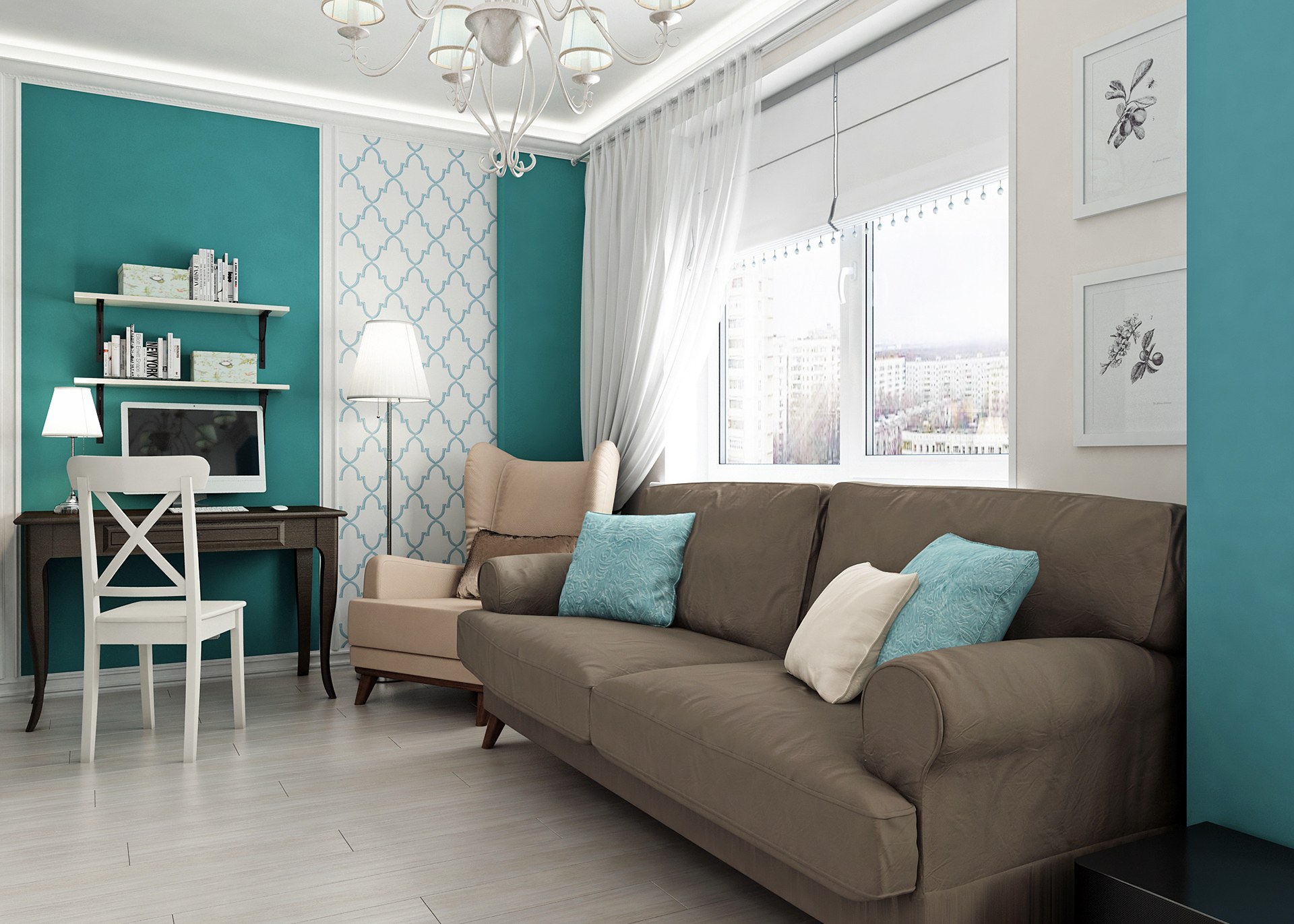 Бирюза в интерьере гостиной