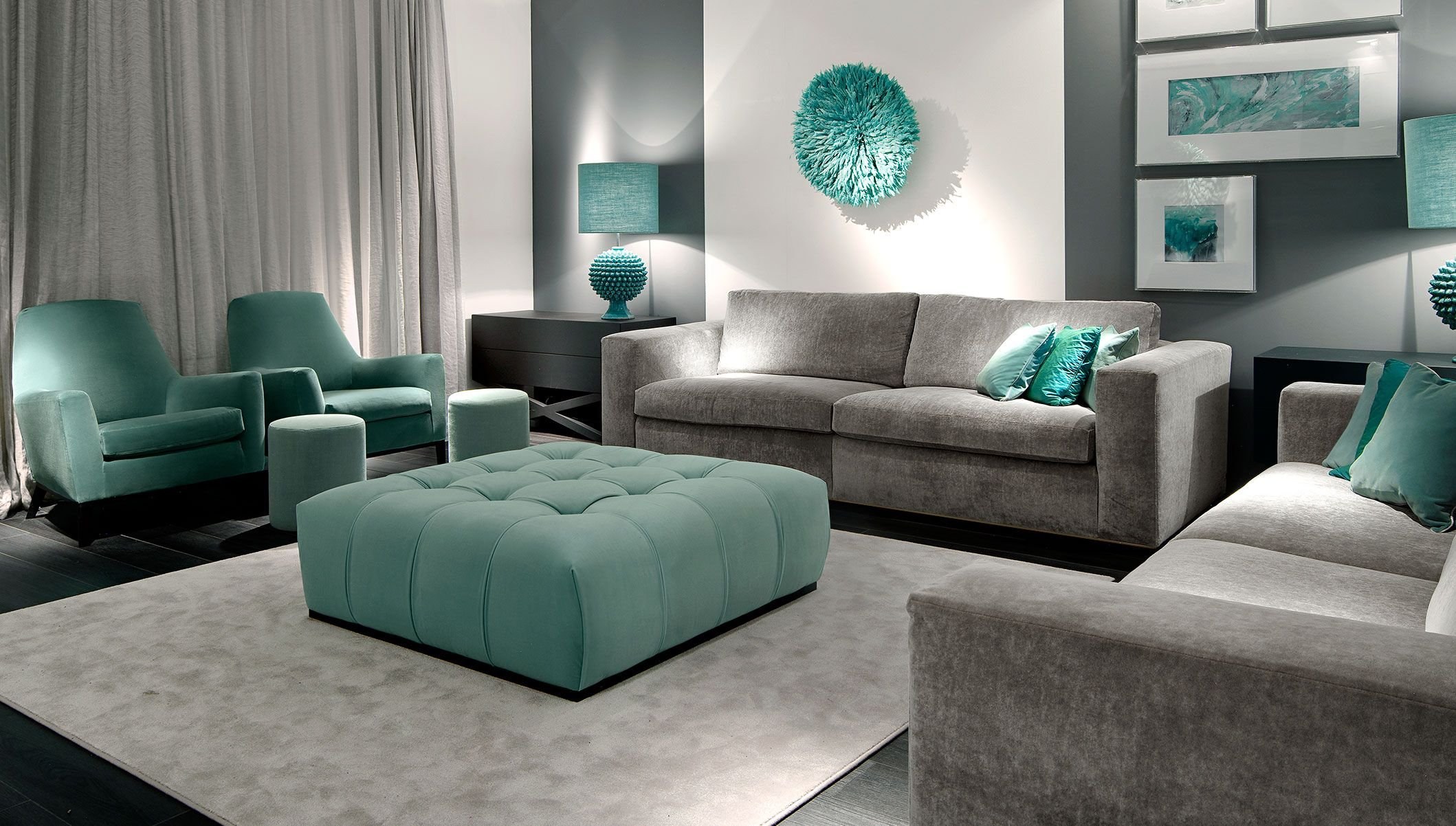 Сочетание серого и бирюзового в интерьере