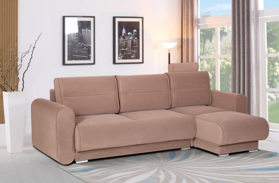 Диван угловой Мартин-1 с выдвижной оттоманкой и ножками-кубышками