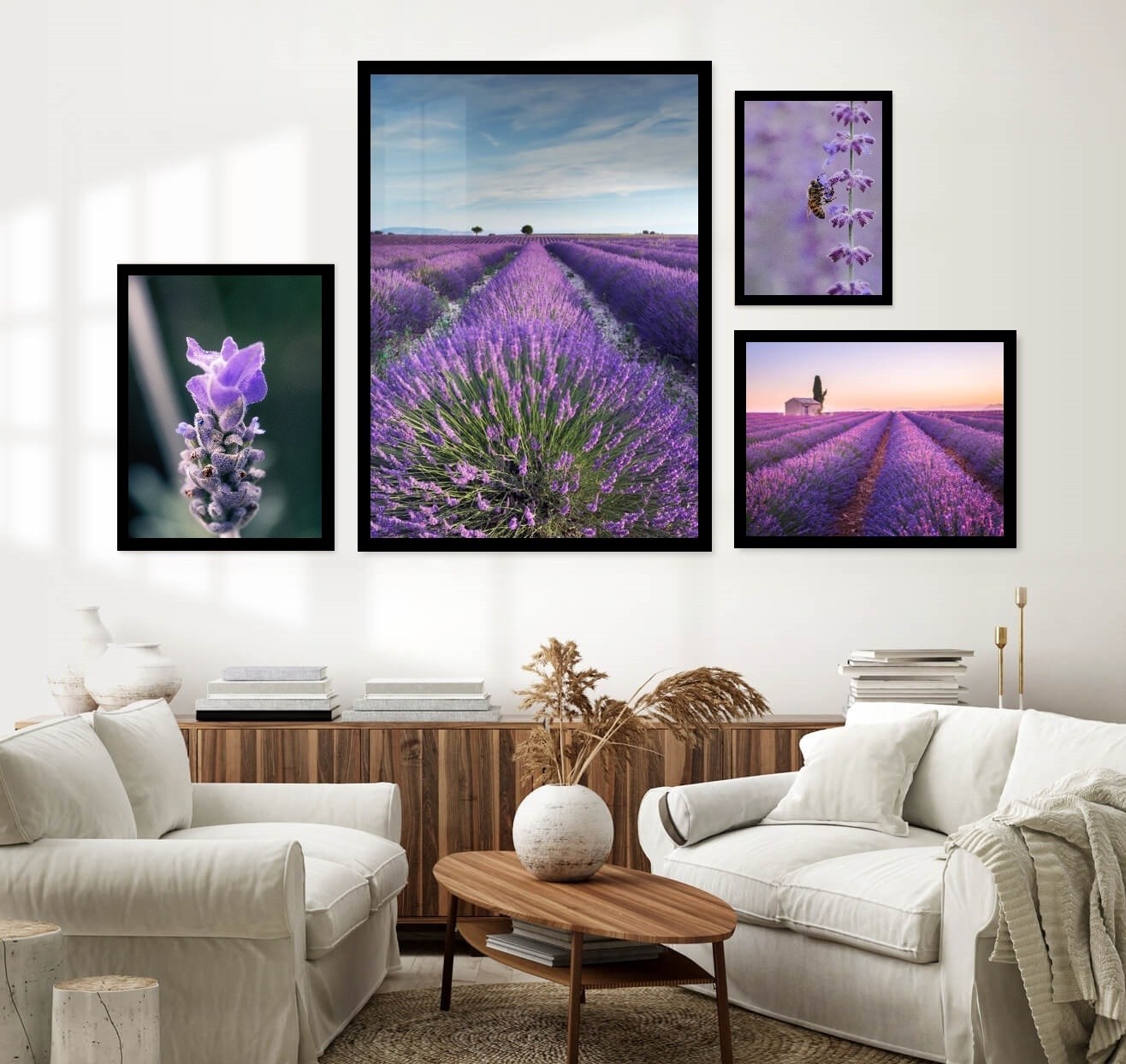 Картины с лавандой в интерьере гостиной