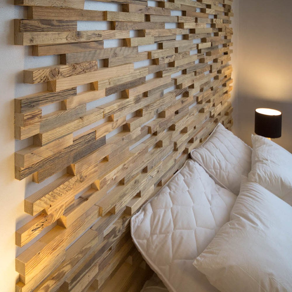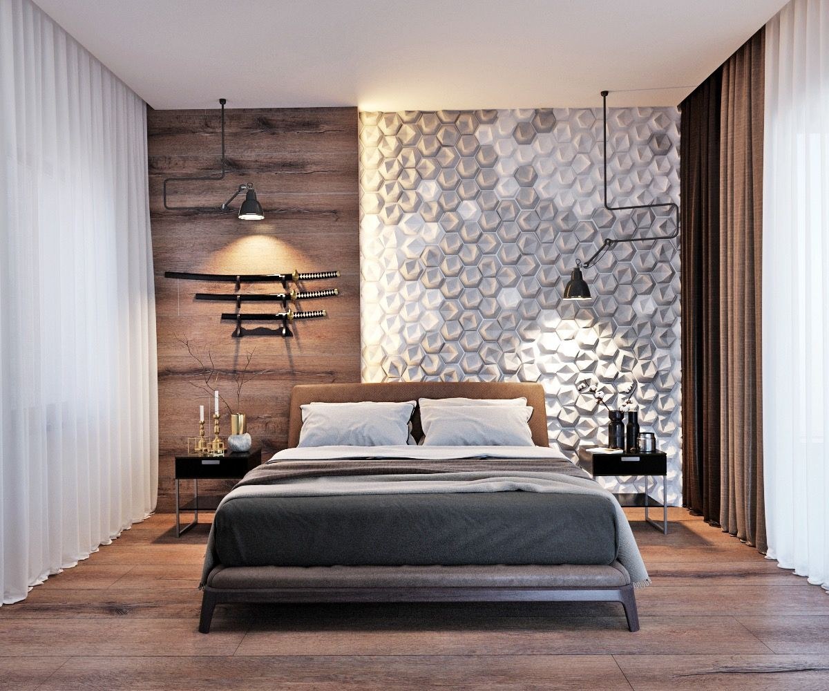Деревянные панели для стен в интерьере спальни