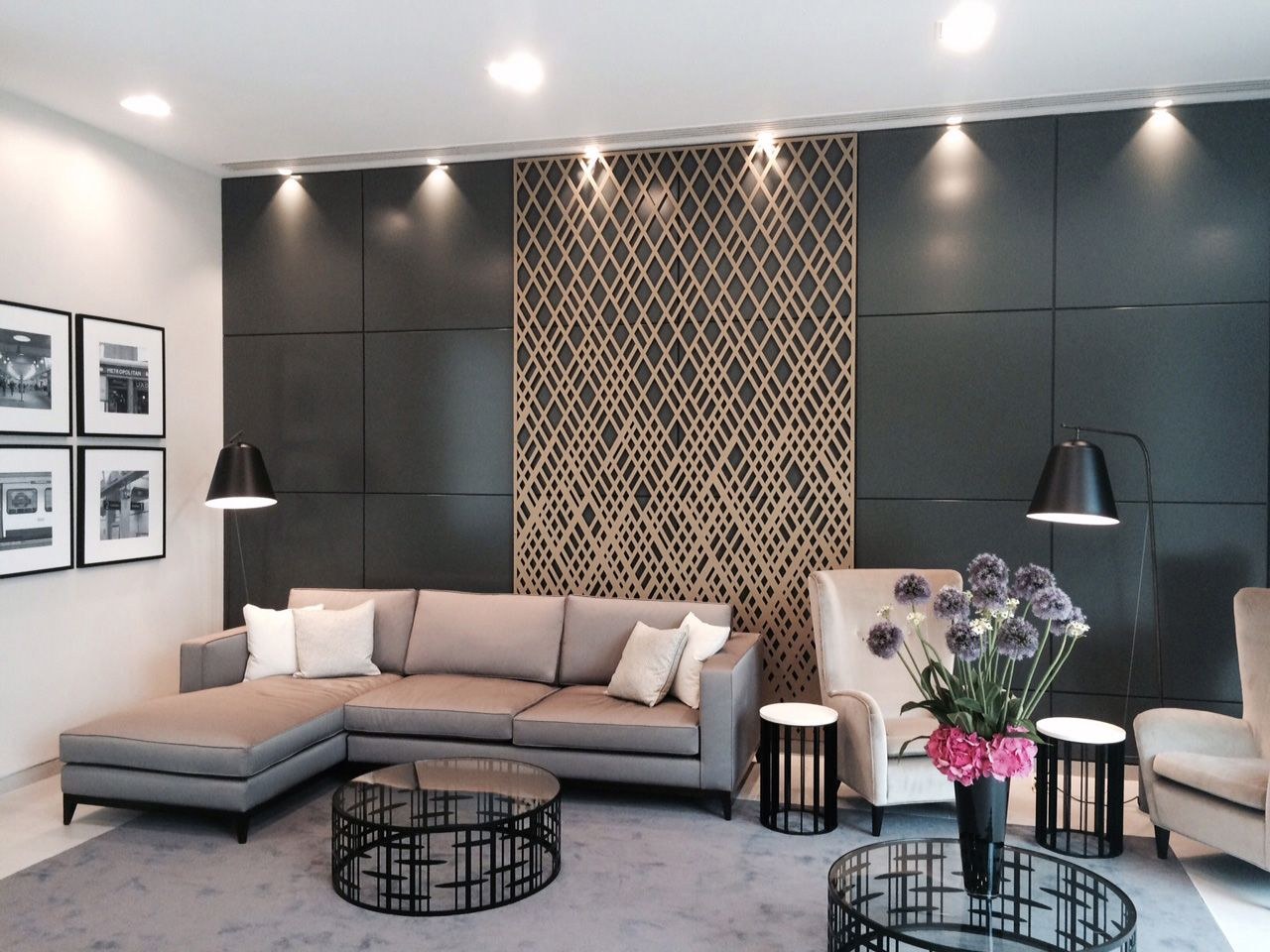Стеновые панели за диваном в гостиной