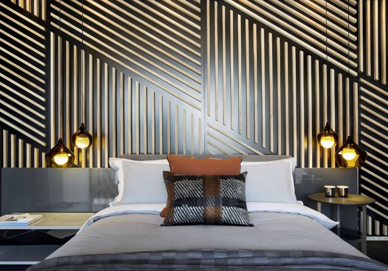 Деревянные рейки в интерьере спальни