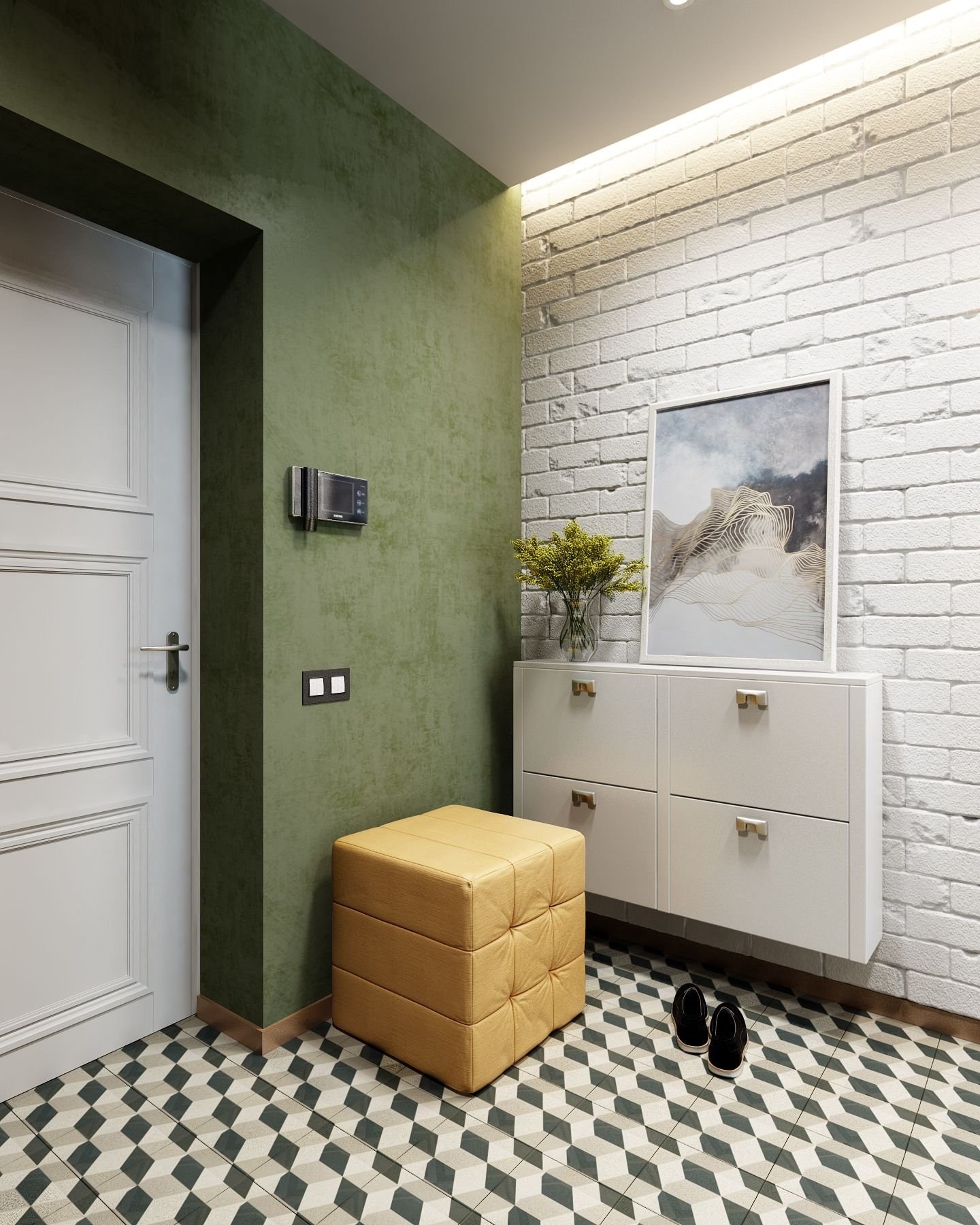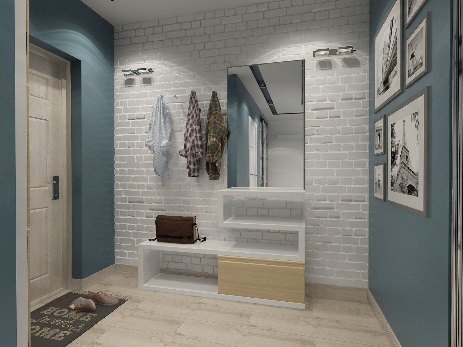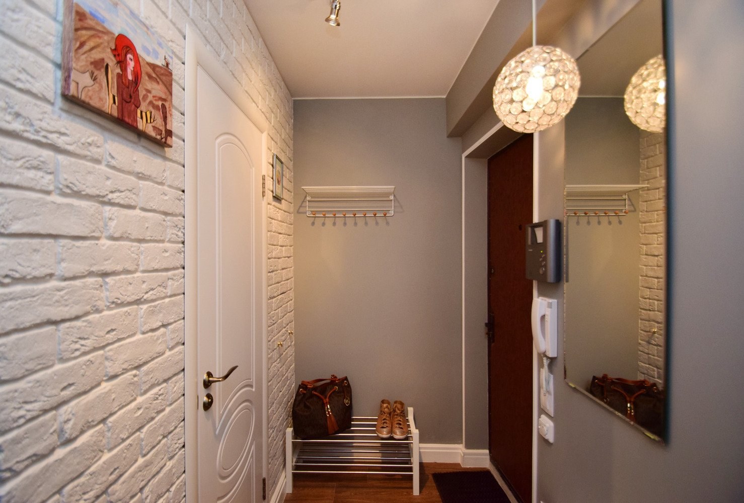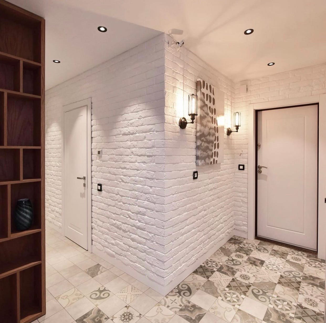 Белый кирпич в интерьере прихожей