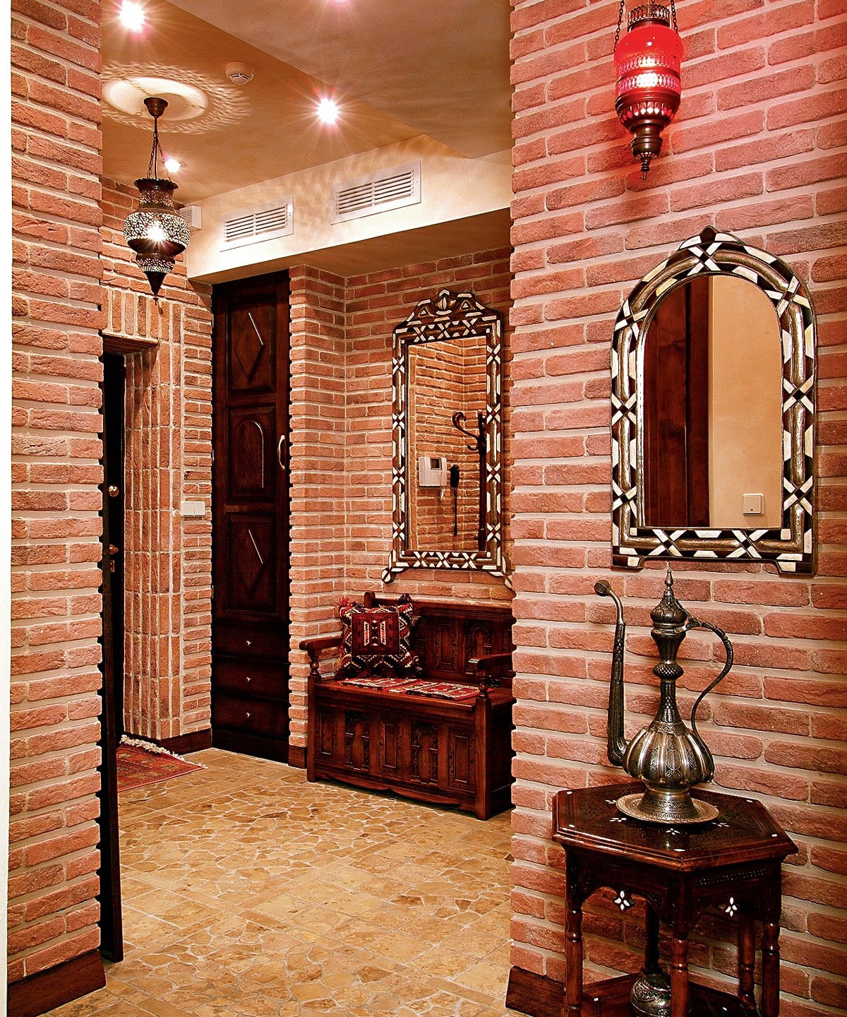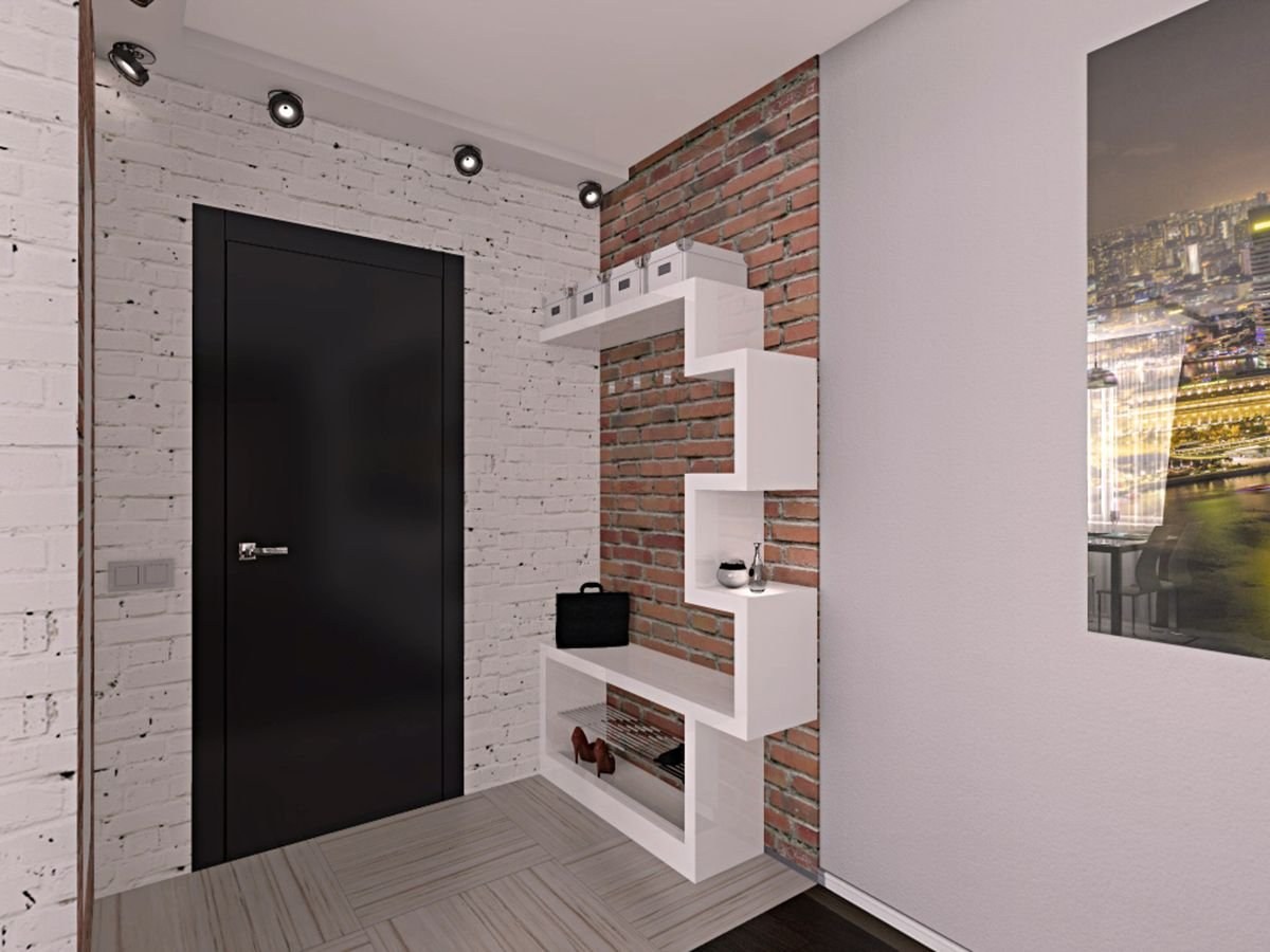 Кирпич в интерьере прихожей