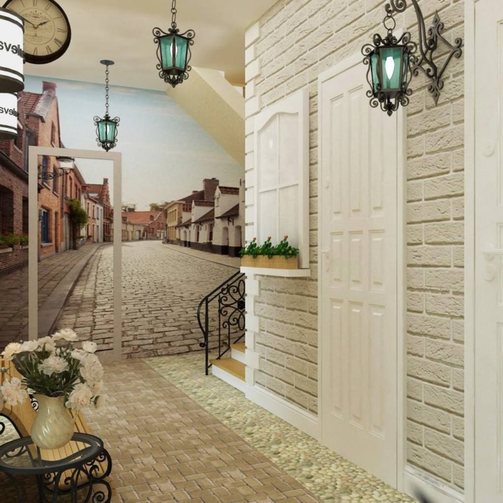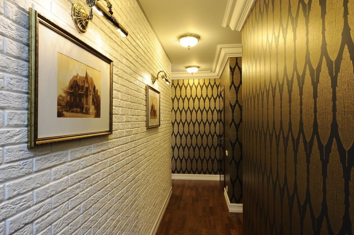 Отделка коридора под кирпич