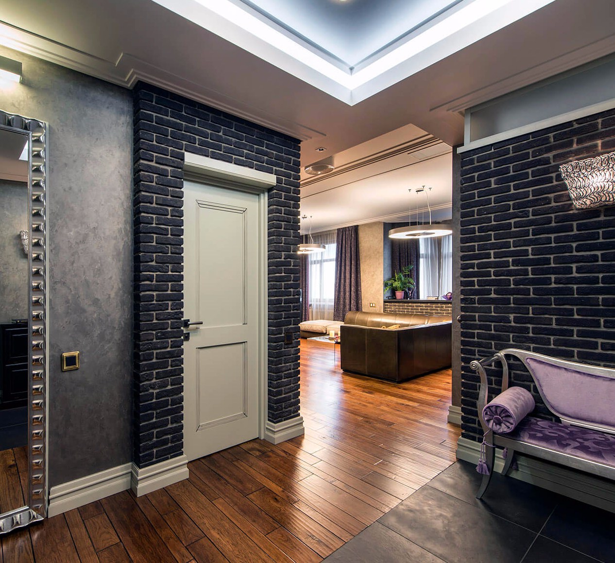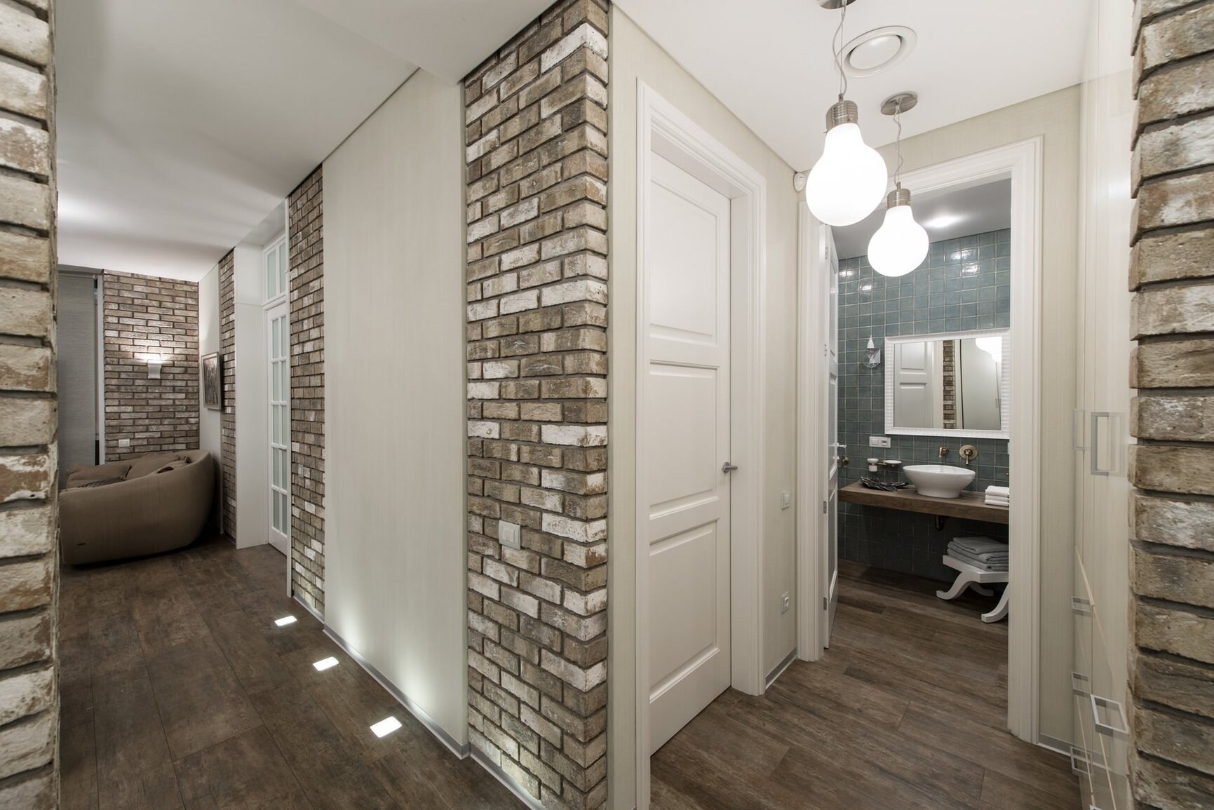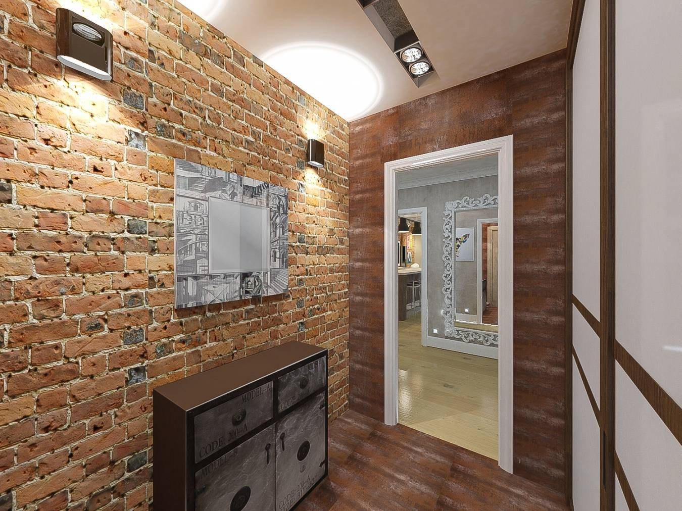 Кирпич в интерьере коридора