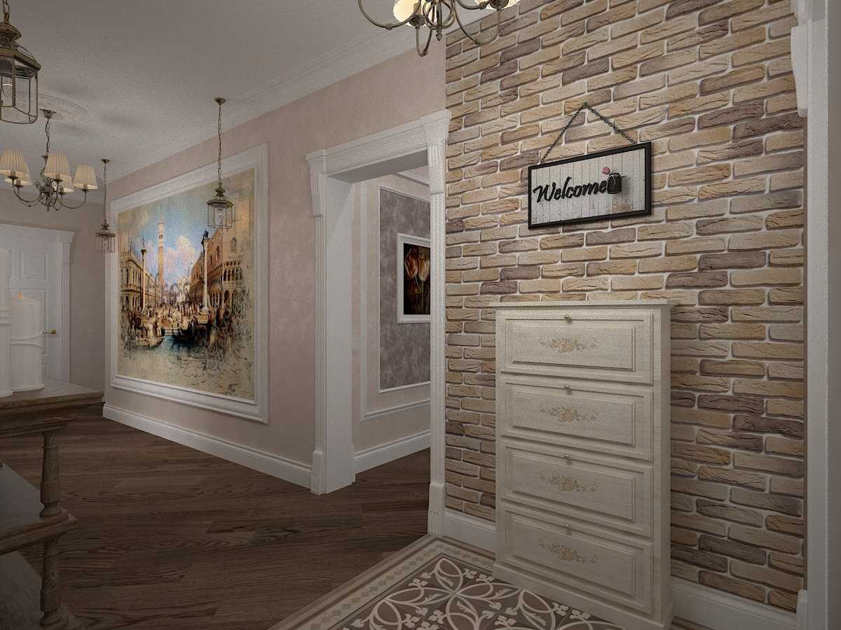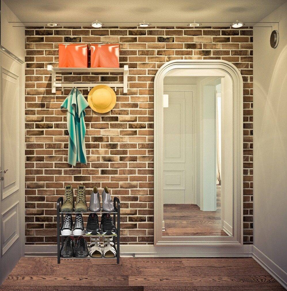 Декоративный кирпич в интерьере прихожей с обоями (60 фото)