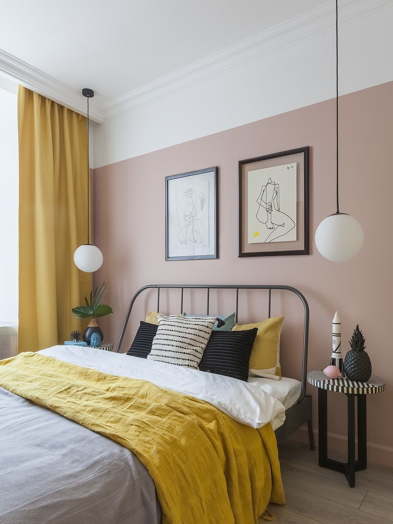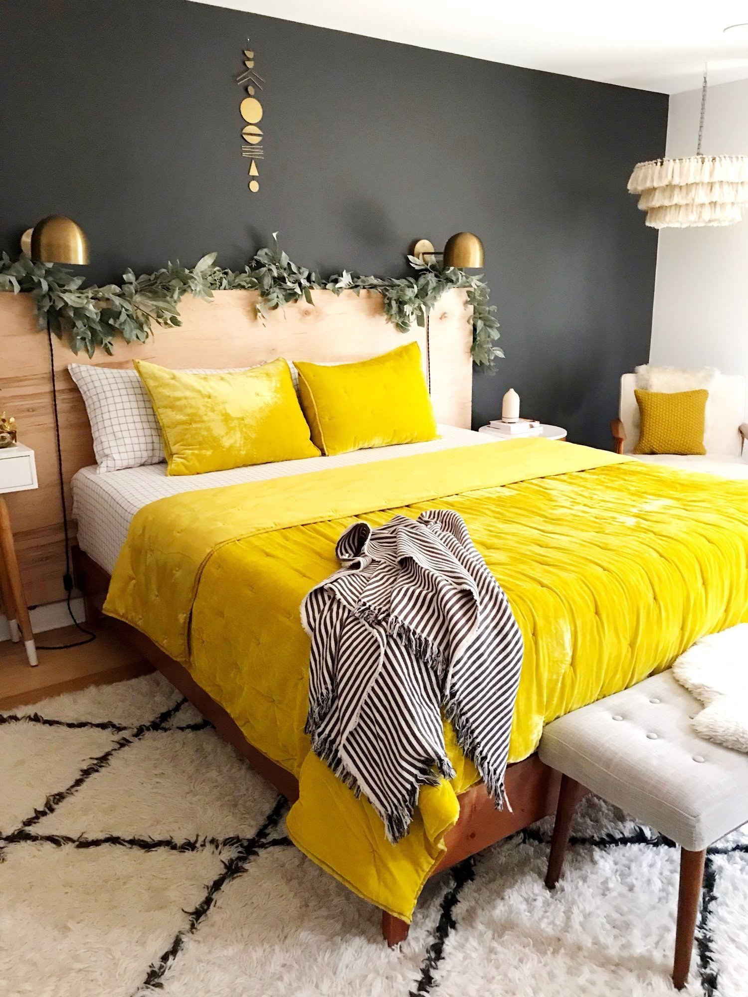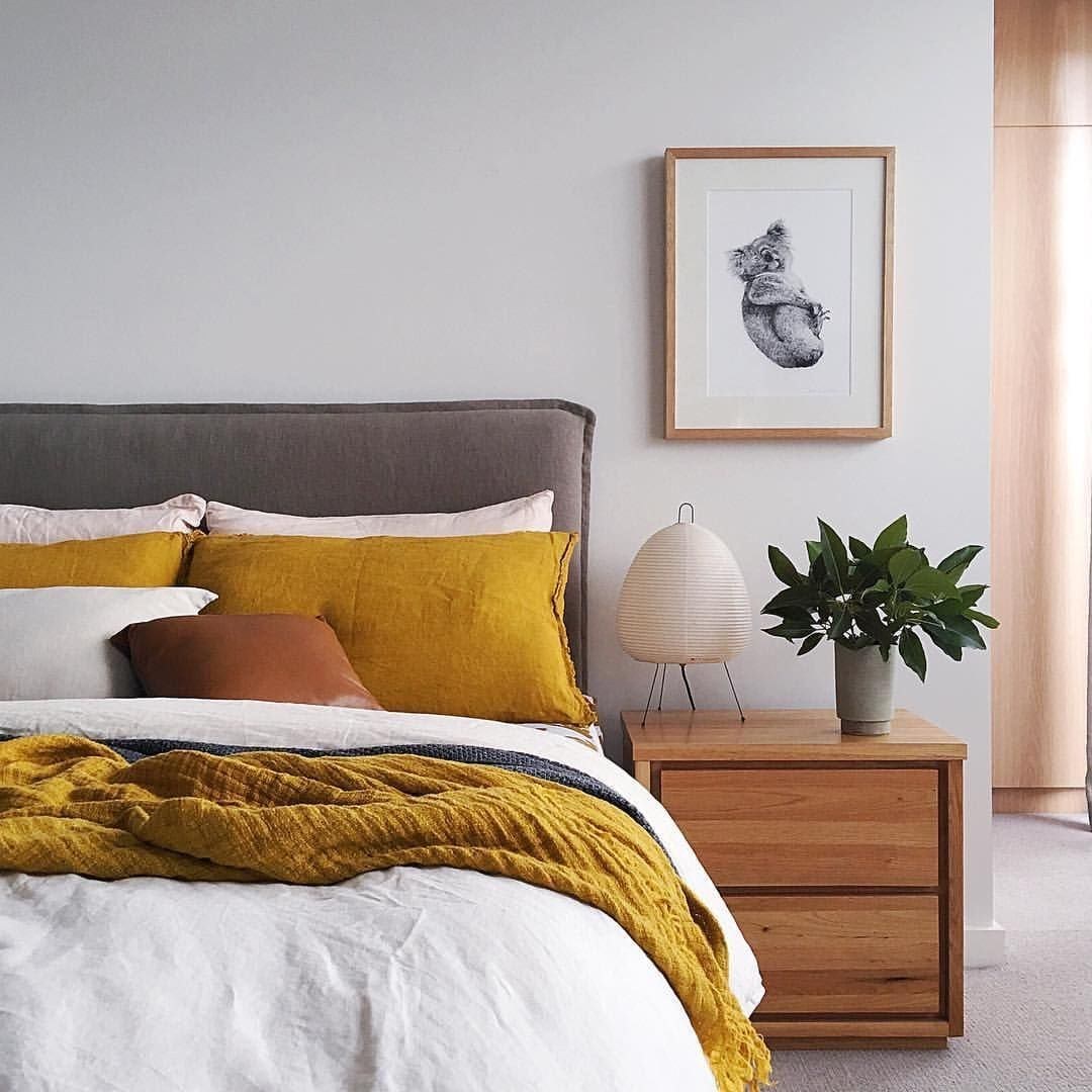 Спальня в скандинавском стиле с желтым