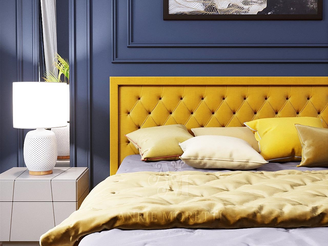 Сине желтая спальня