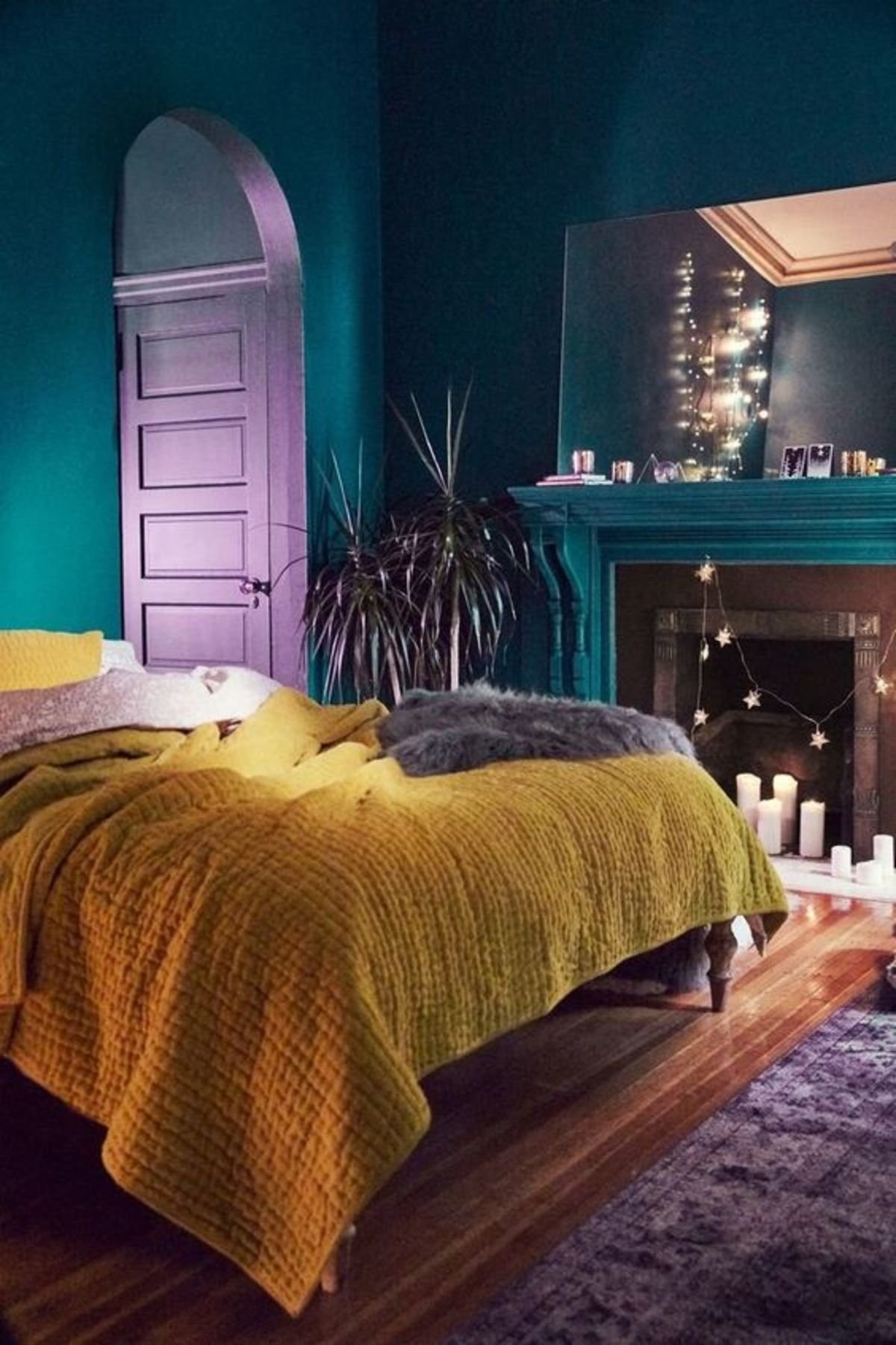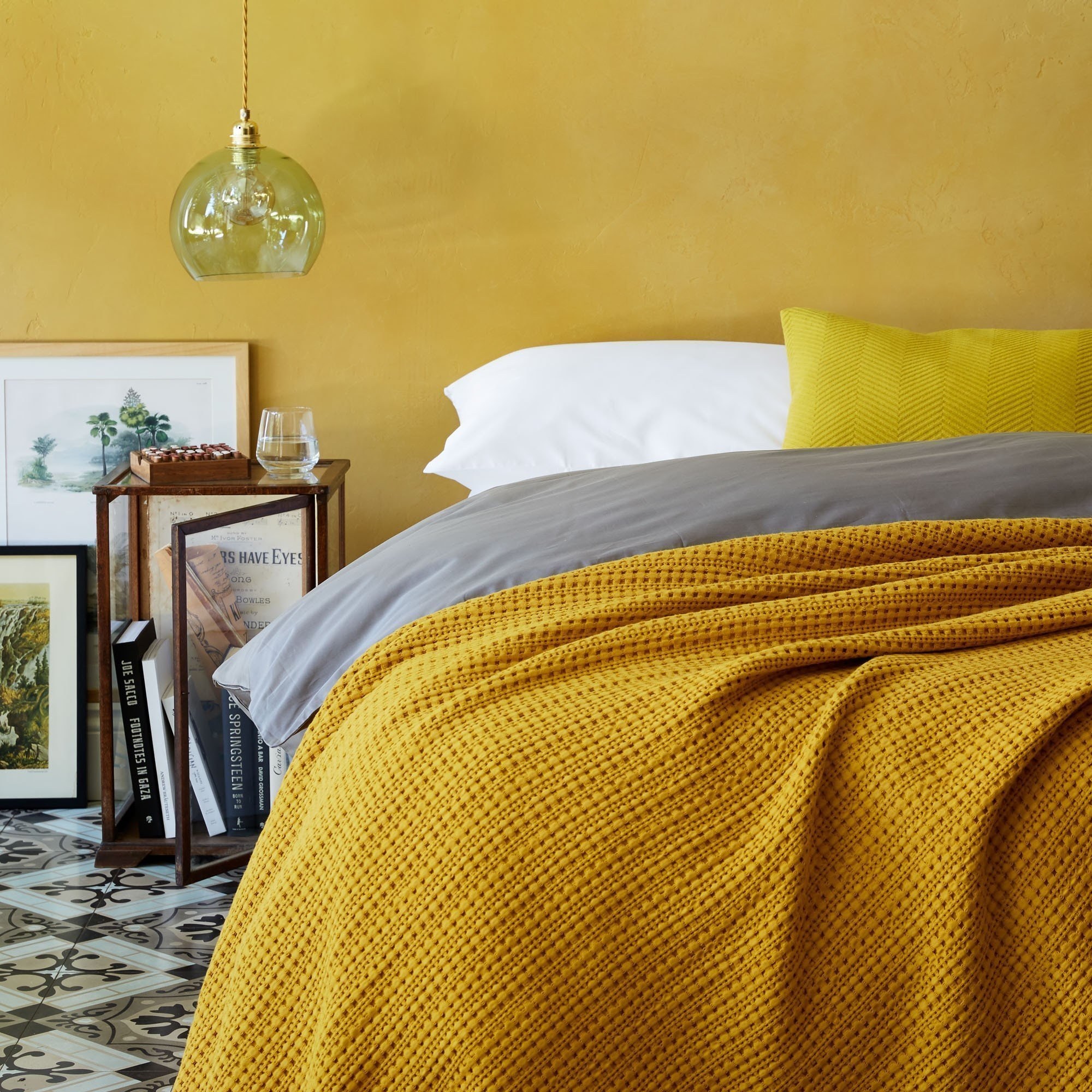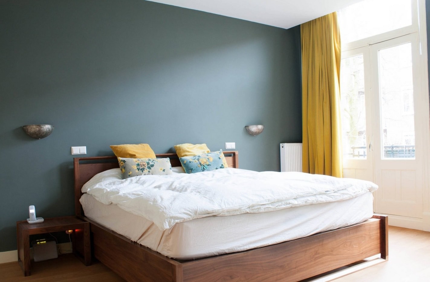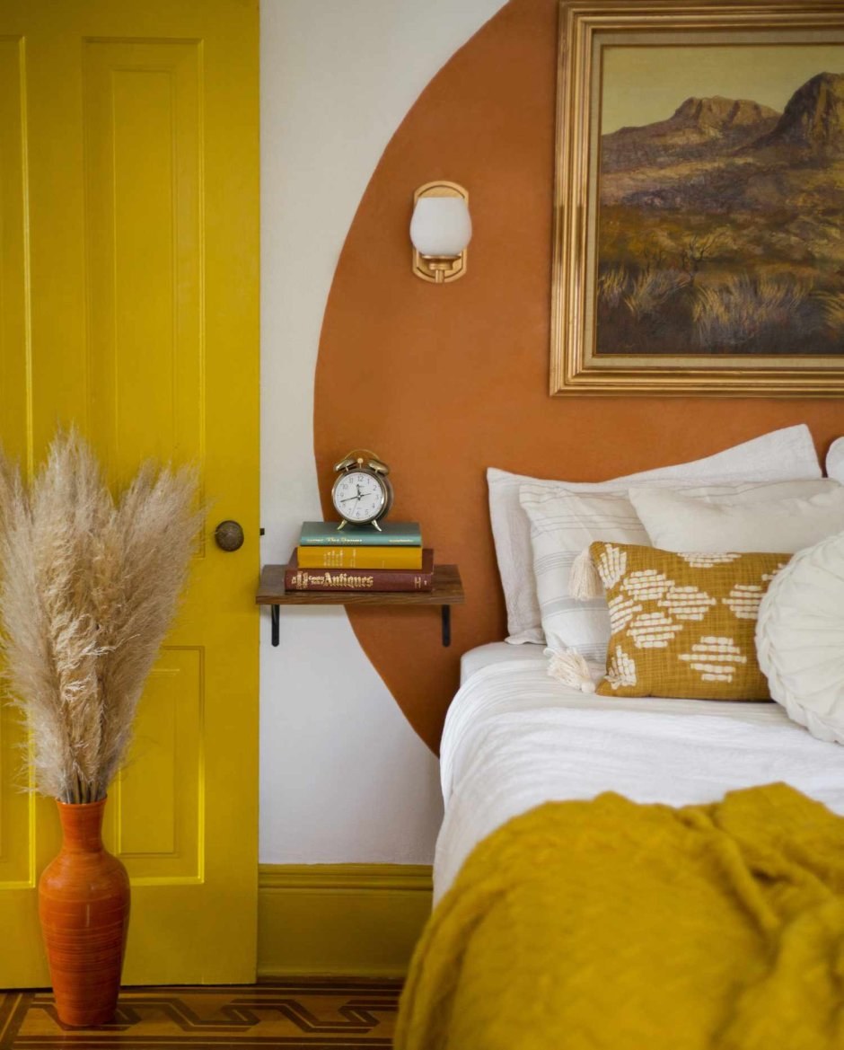 Горчичные стены в спальне
