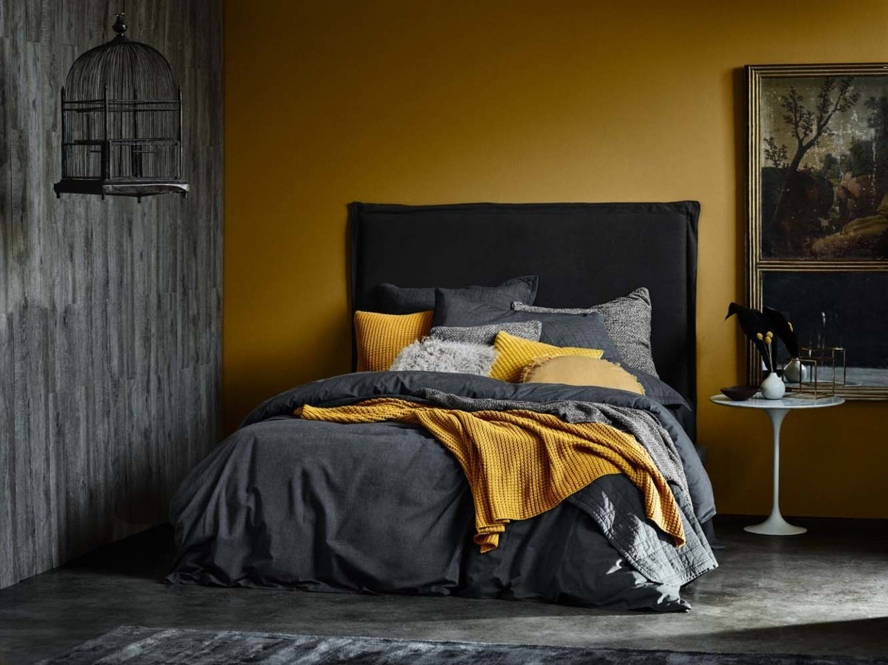 Серый и горчичный в интерьере