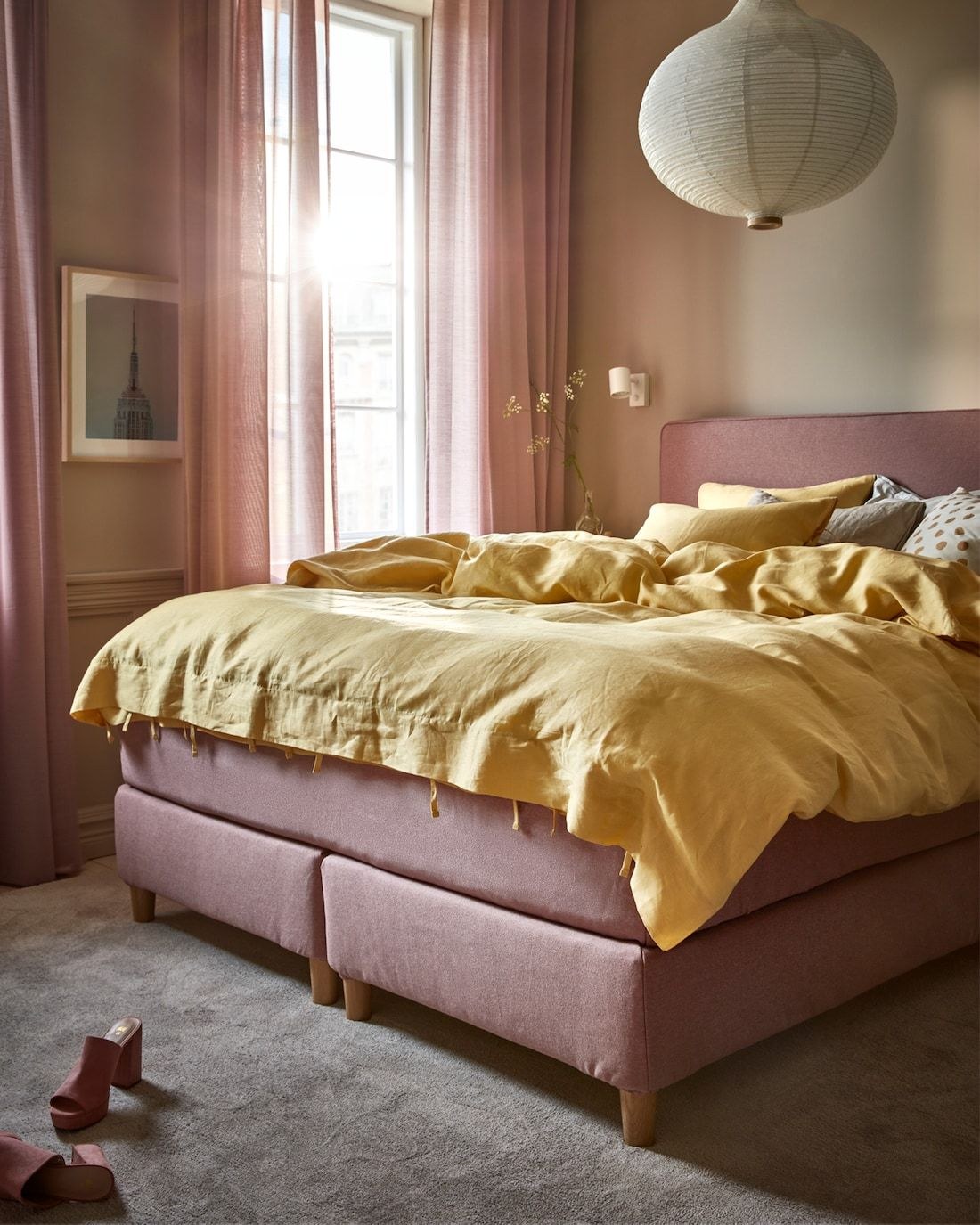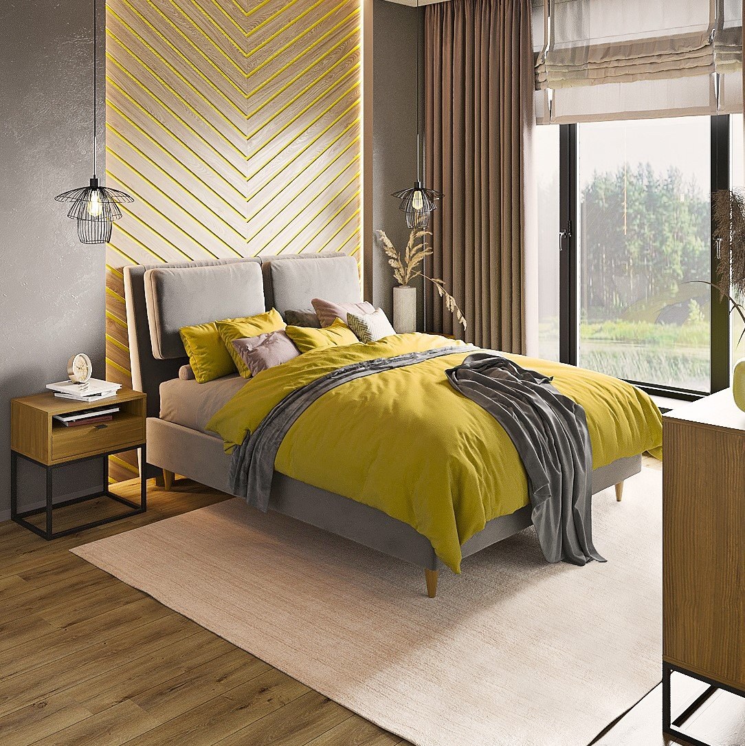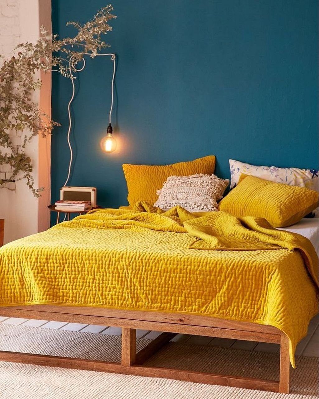 Кровать горчичного цвета в интерьере (59 фото)