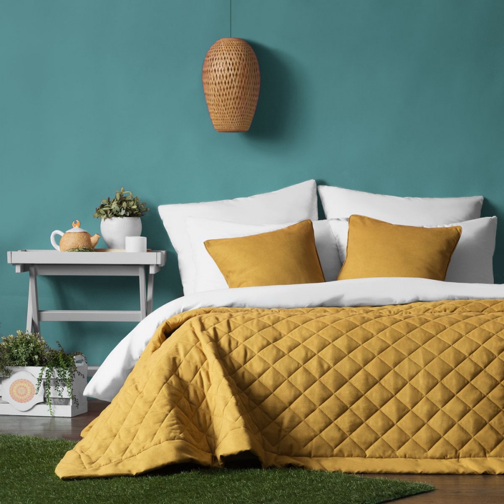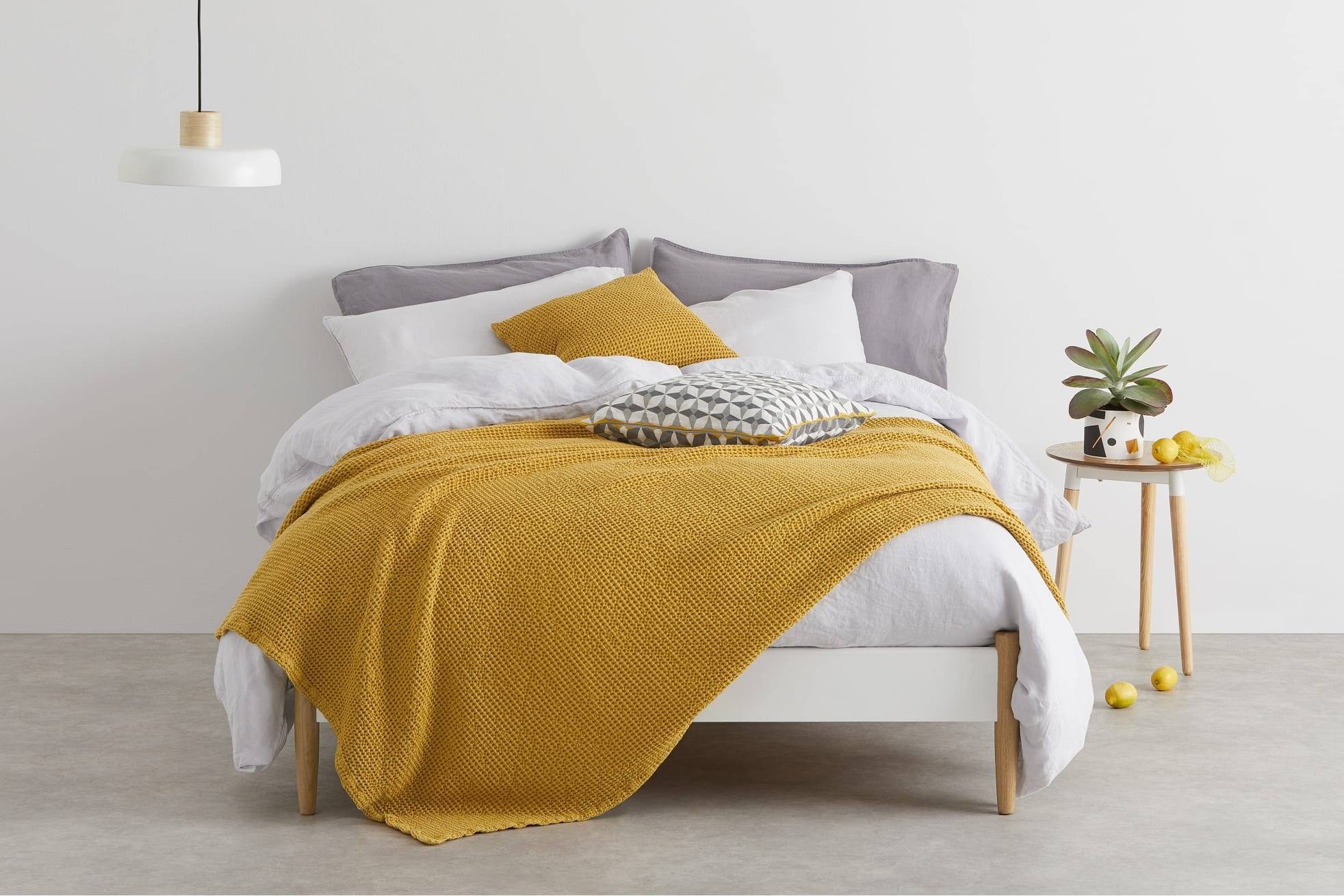 Желтое покрывало на кровать