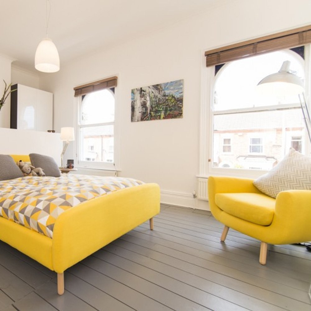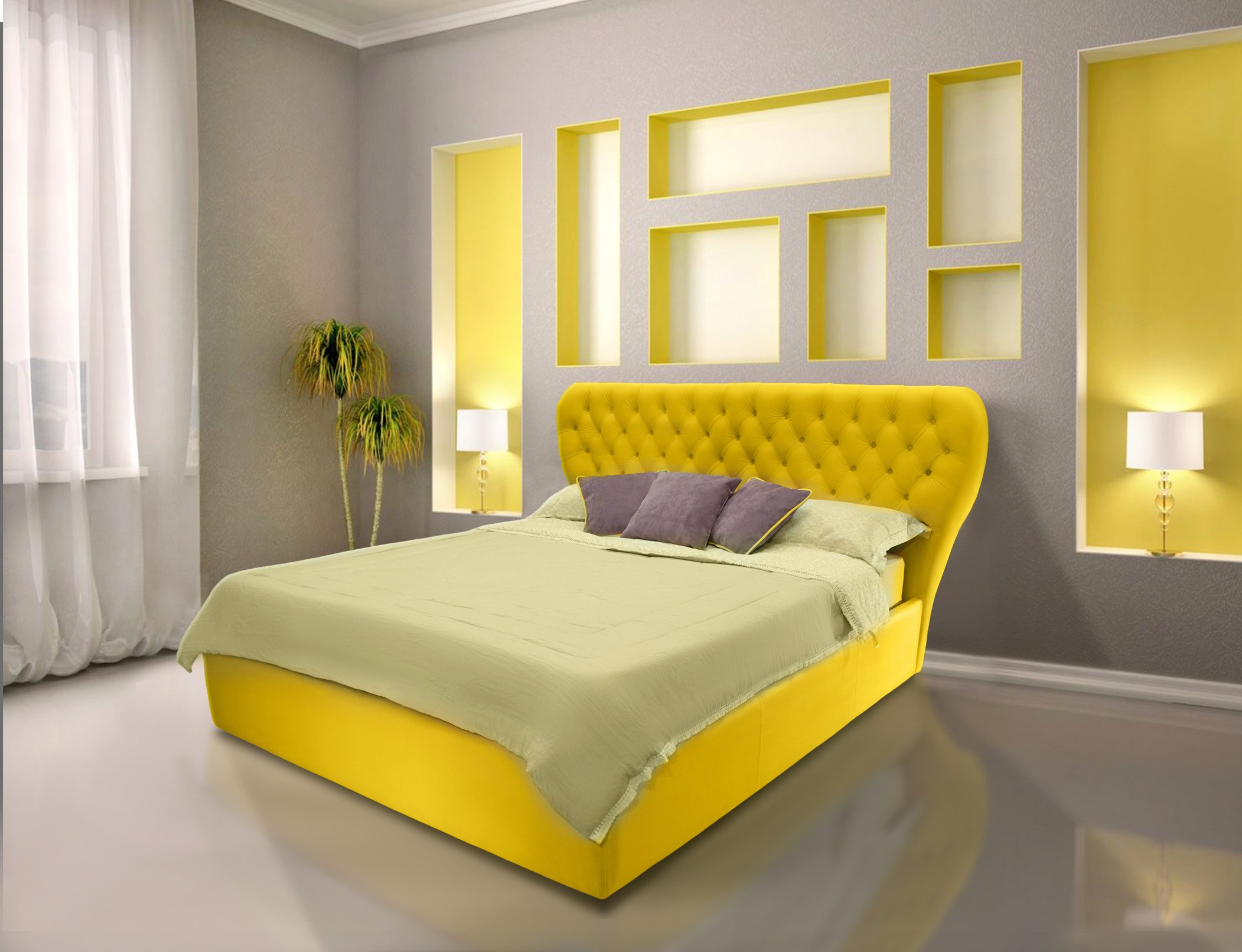 Желтая кровать в интерьере