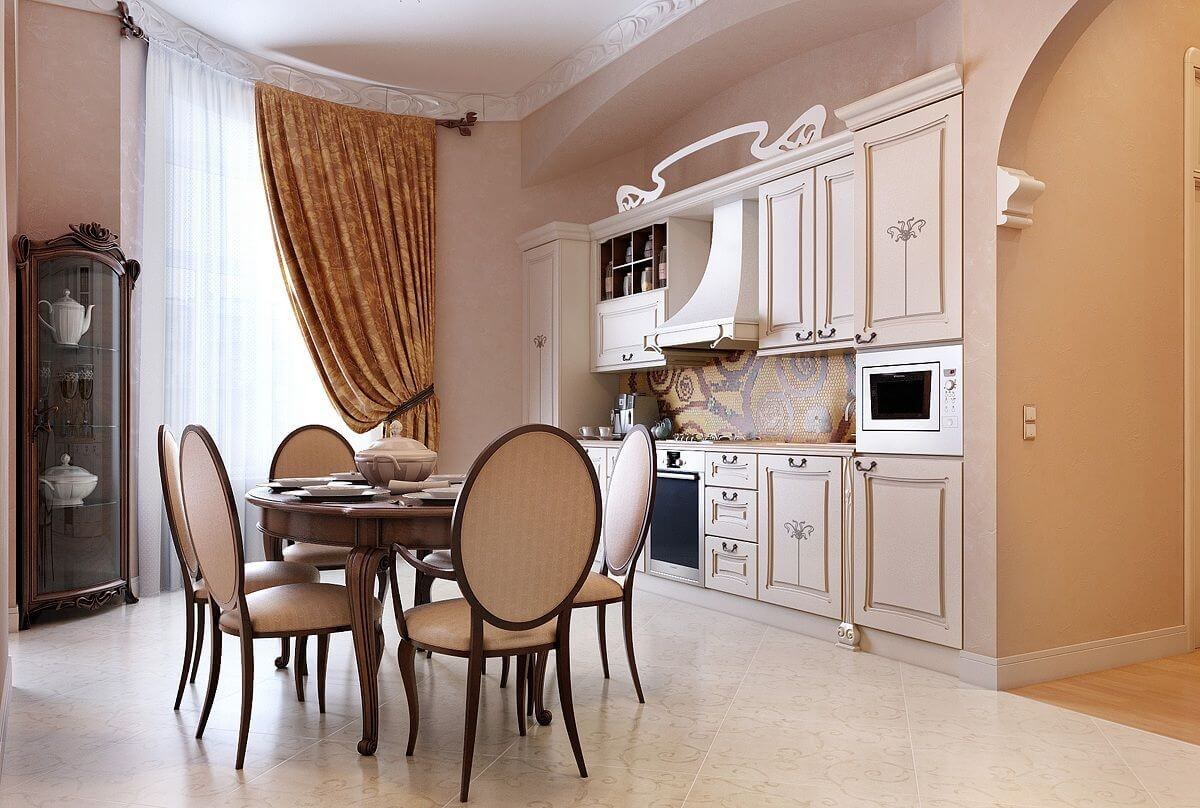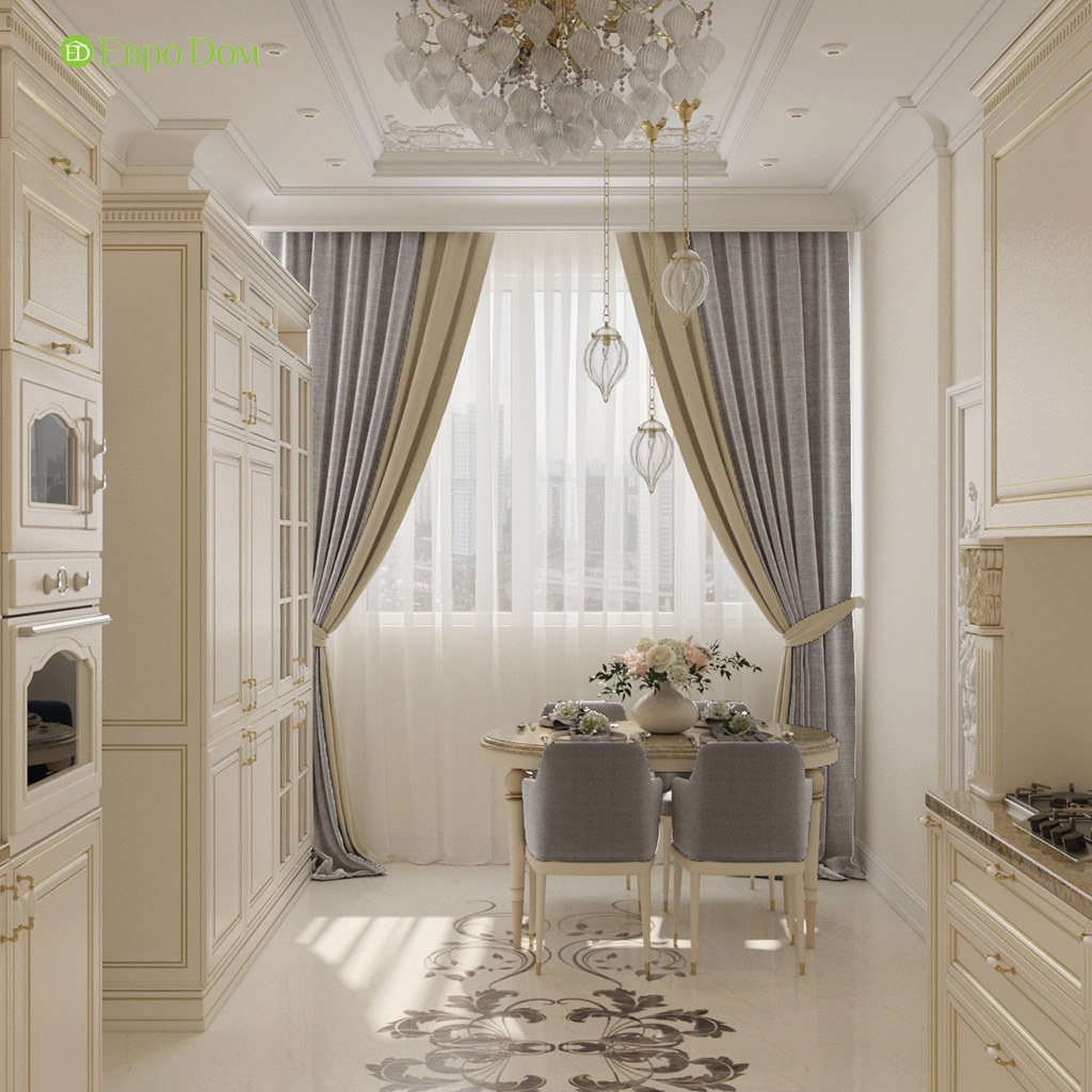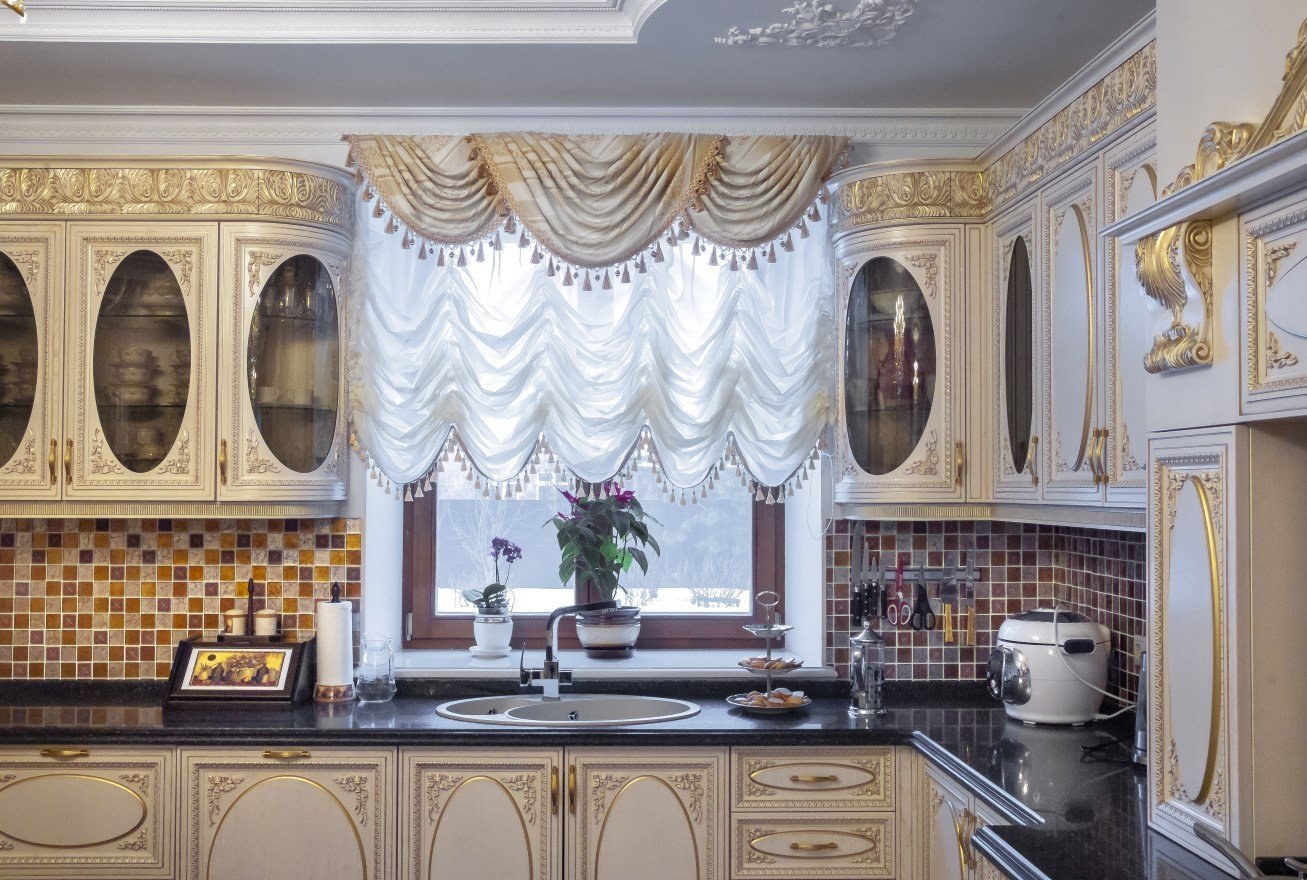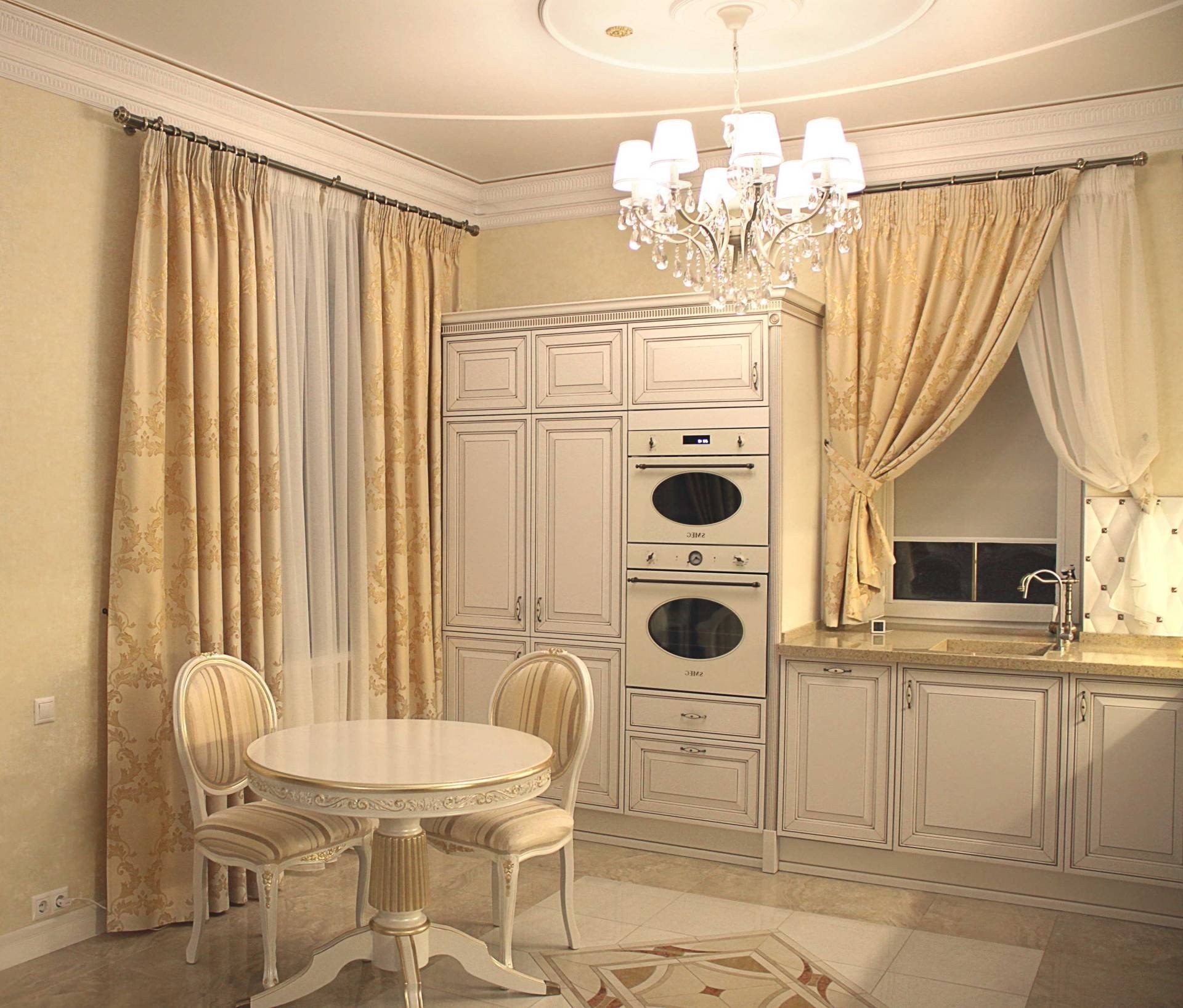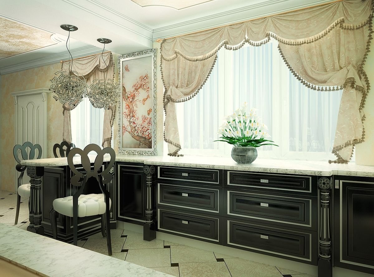 Шторы на кухне в стиле неоклассики