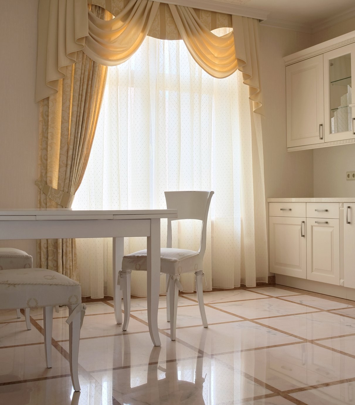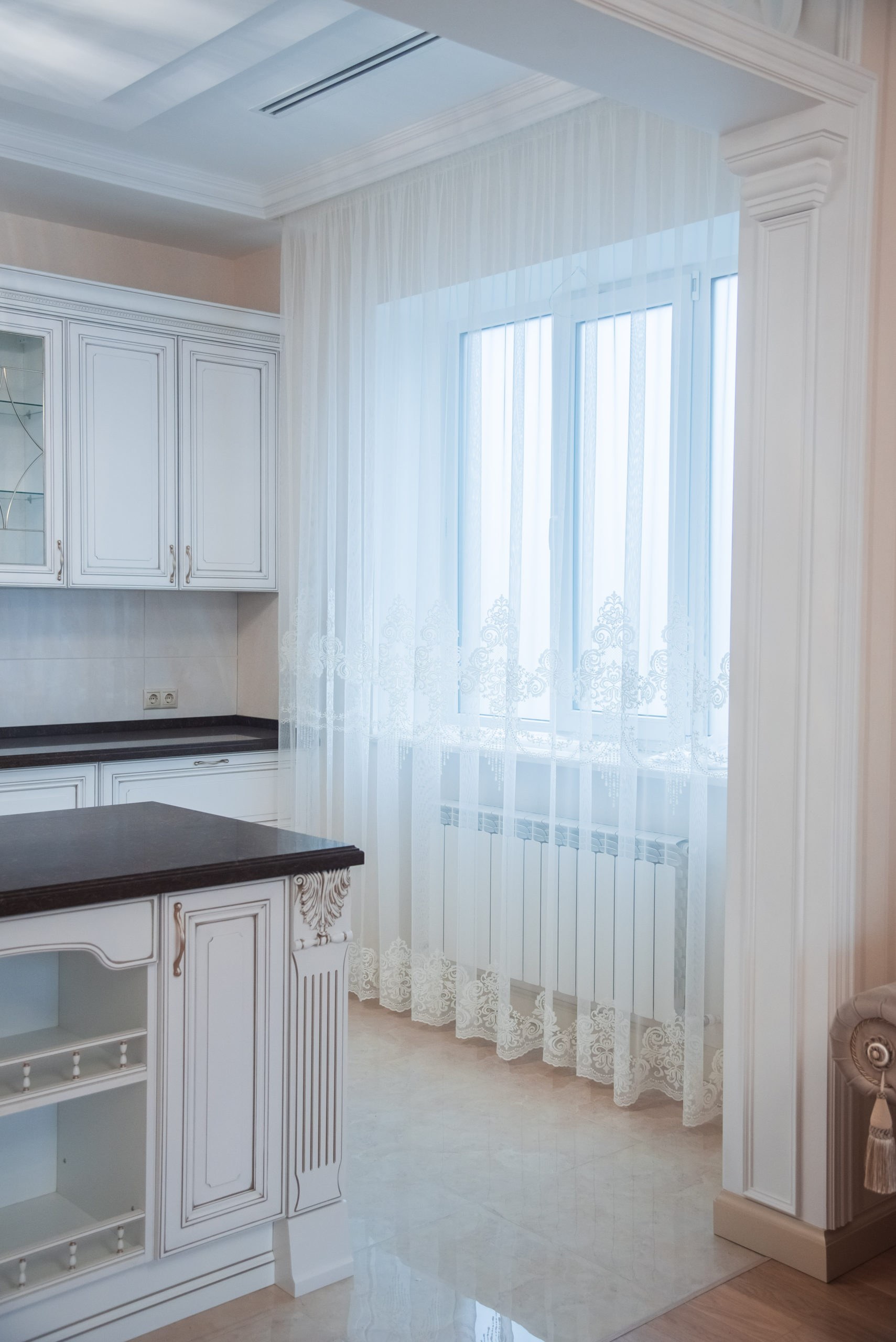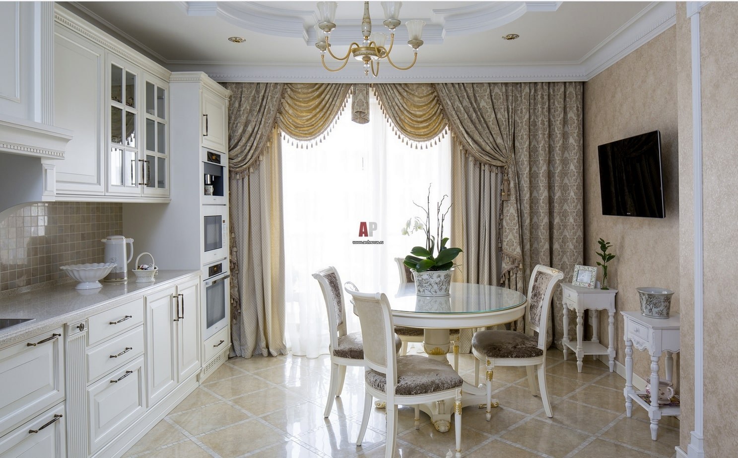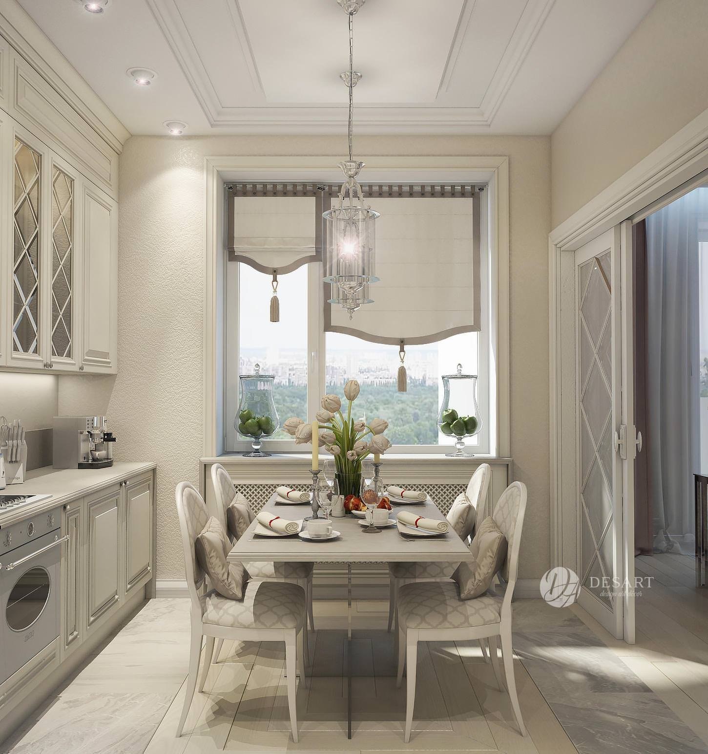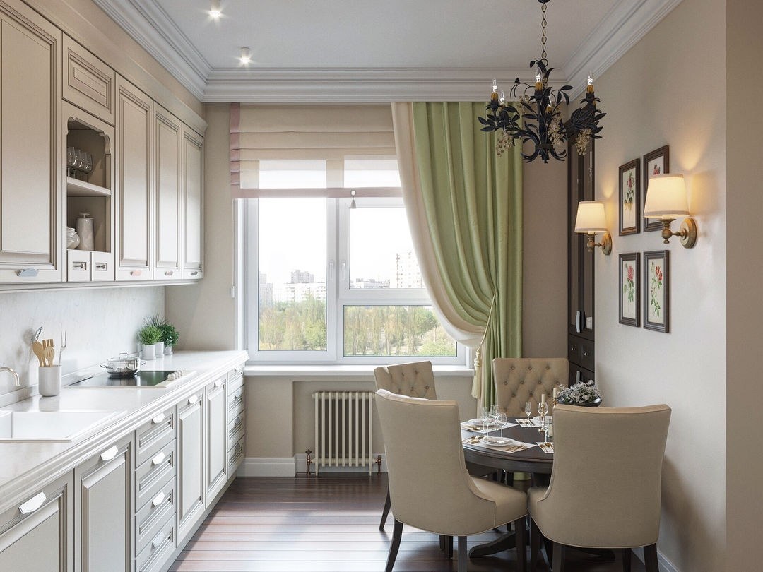 Шторы на кухне в стиле неоклассики