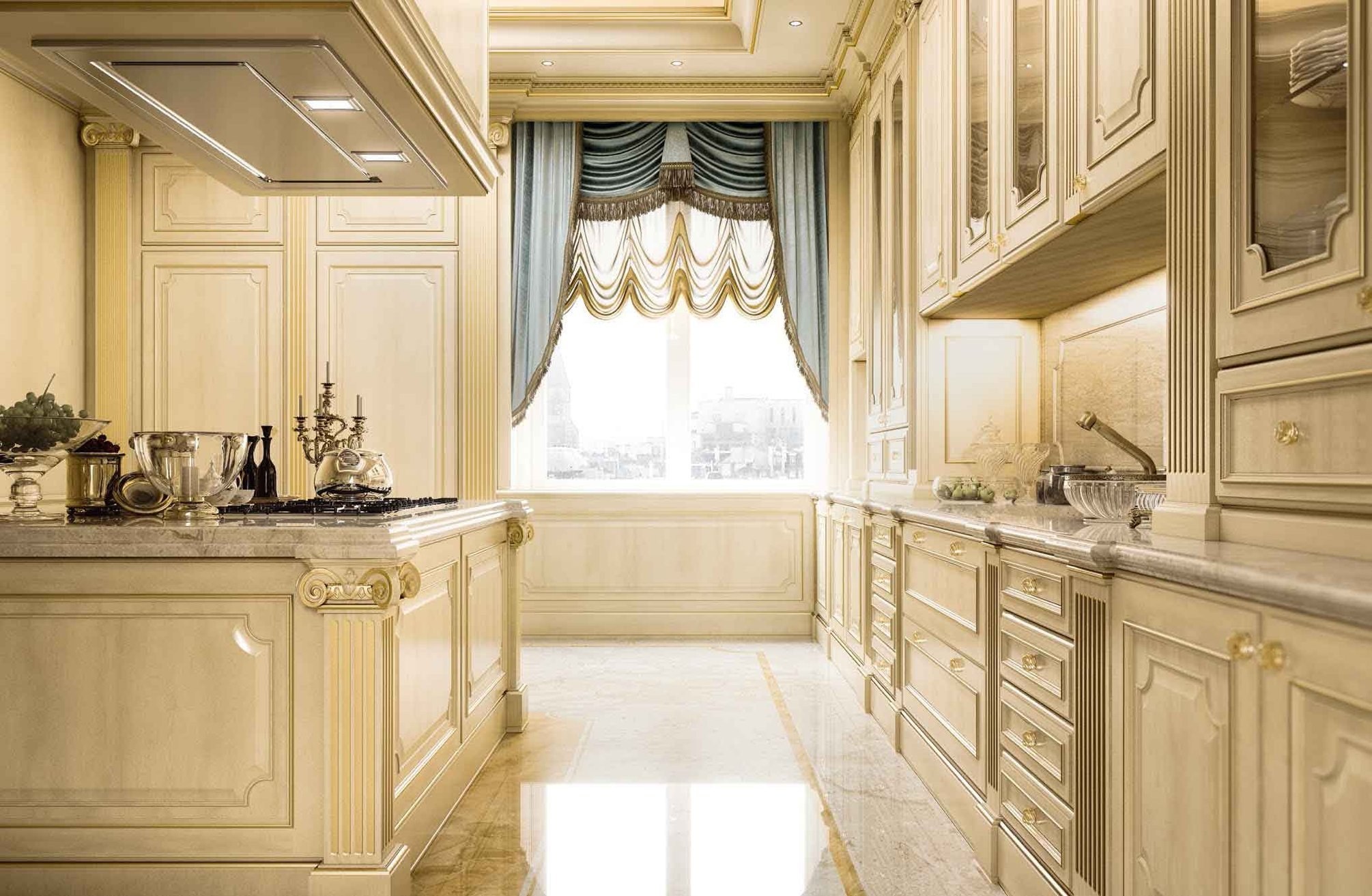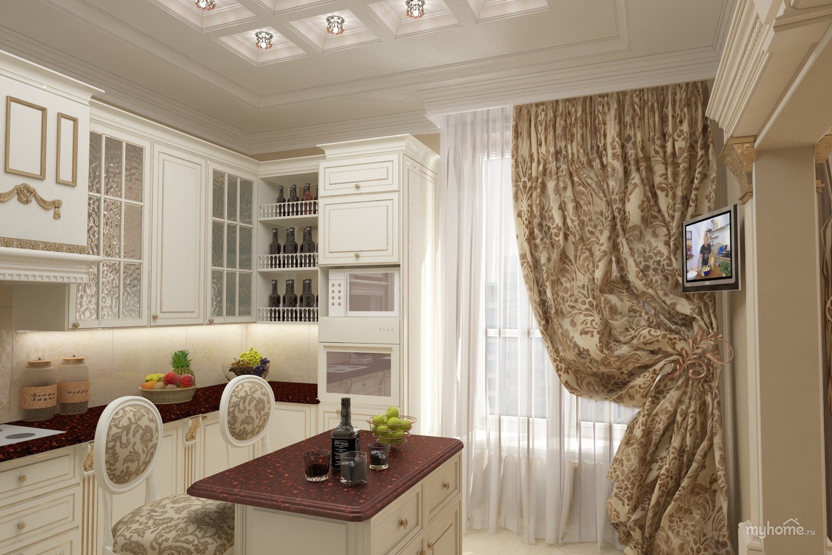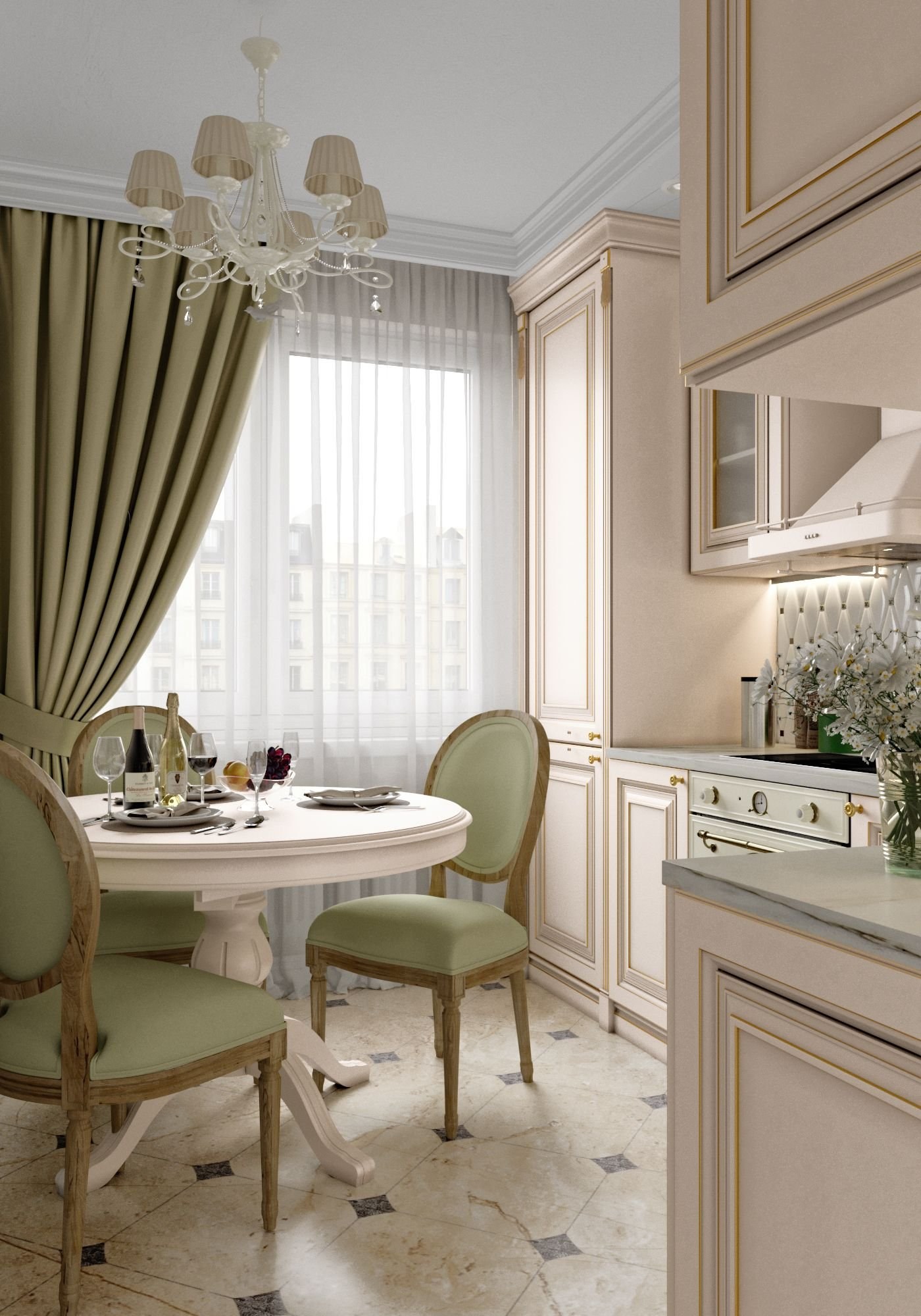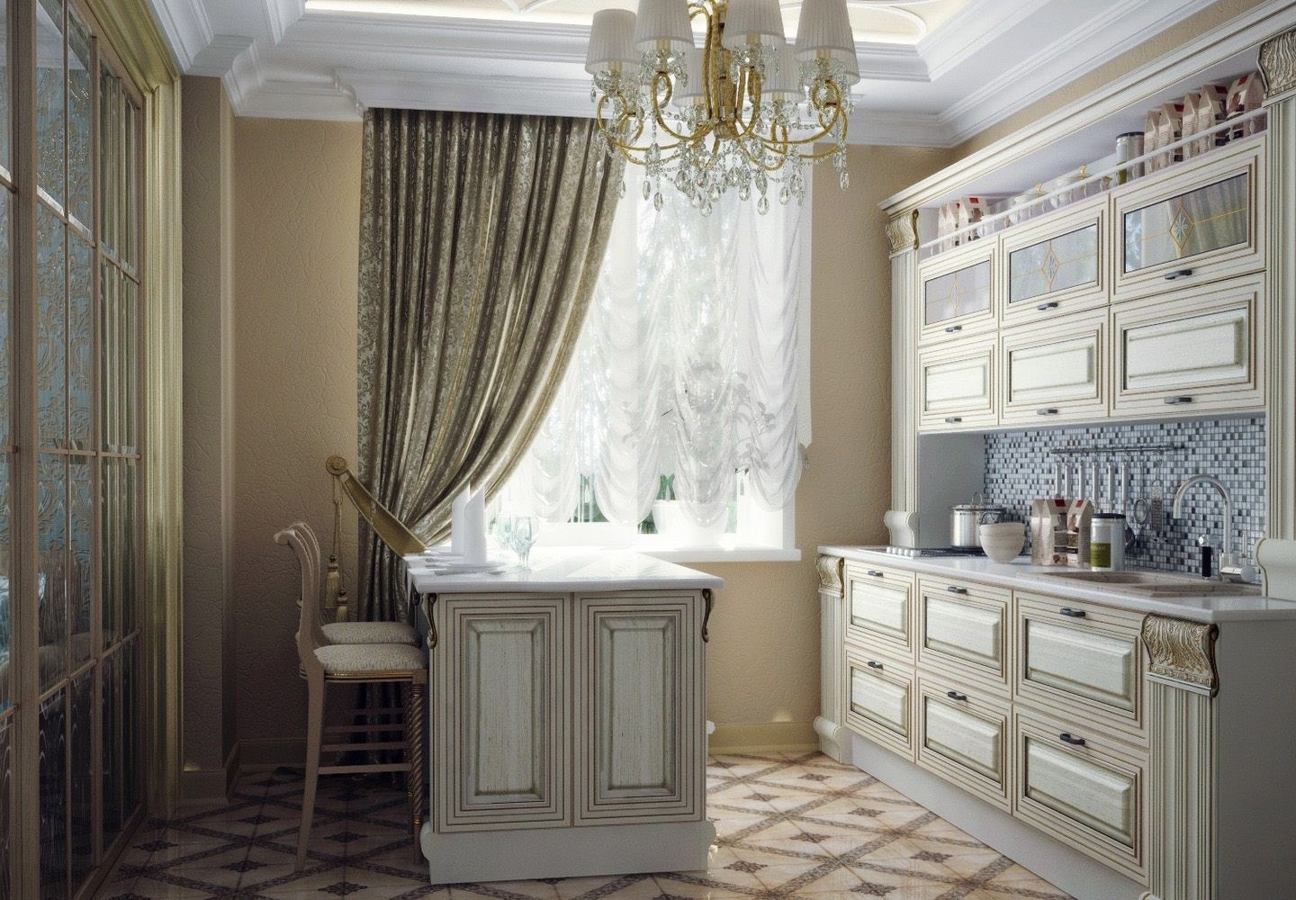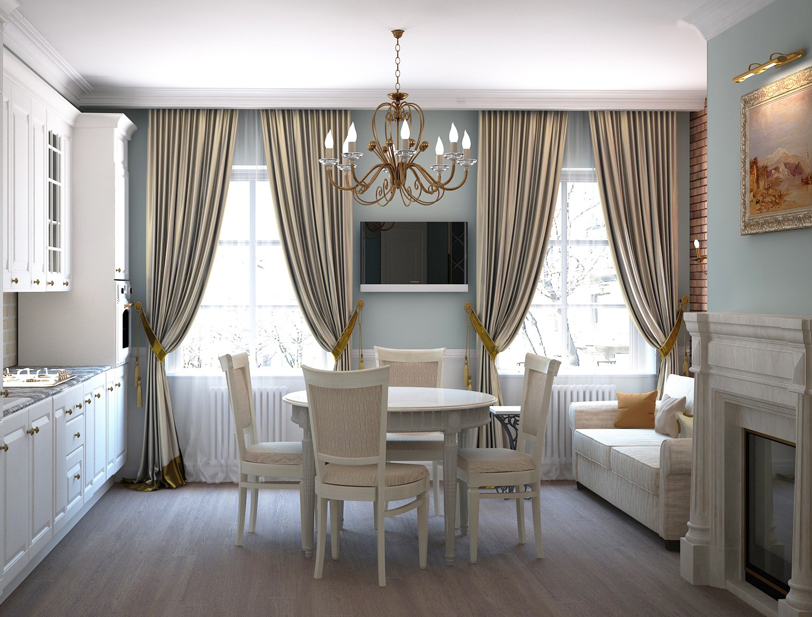 Шторы на кухне в стиле неоклассики