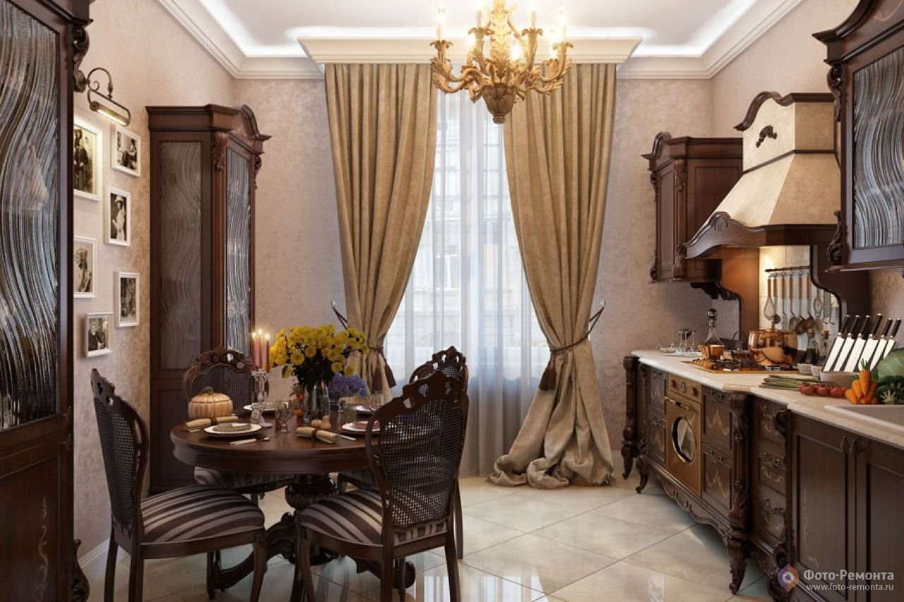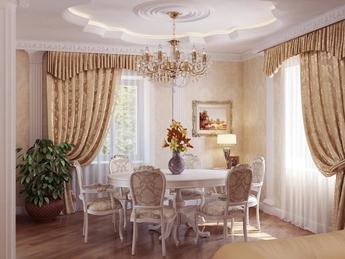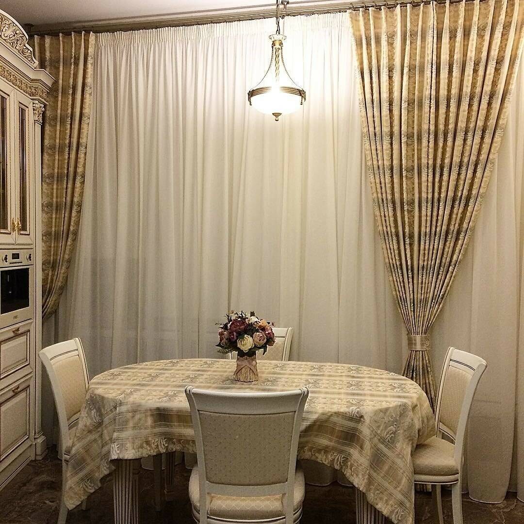 Шторы в классическом стиле для кухни-столовой