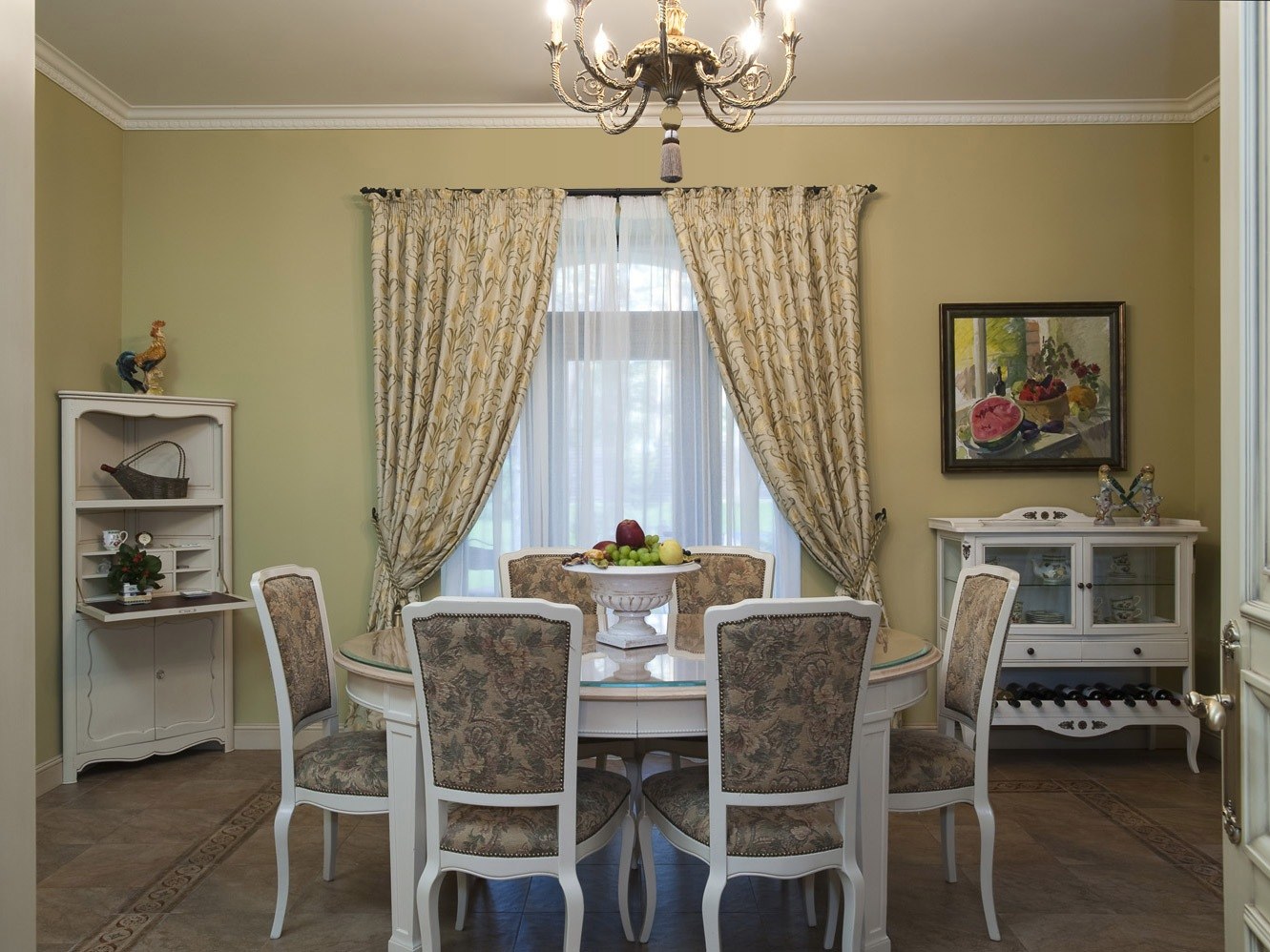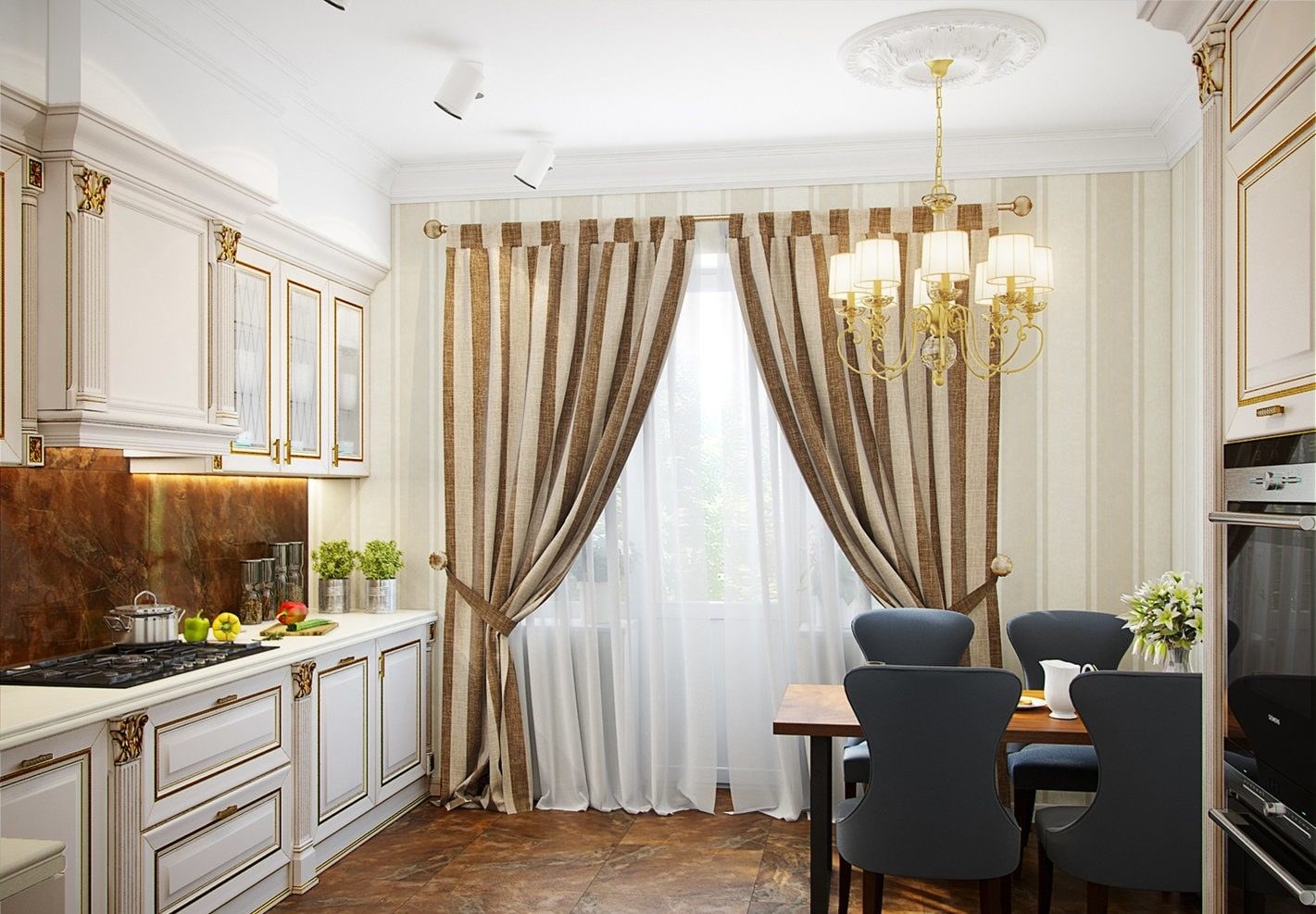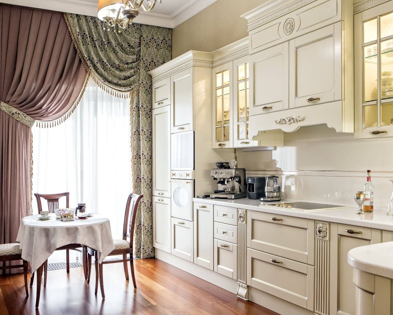 Шторы в классическом стиле для кухни-столовой
