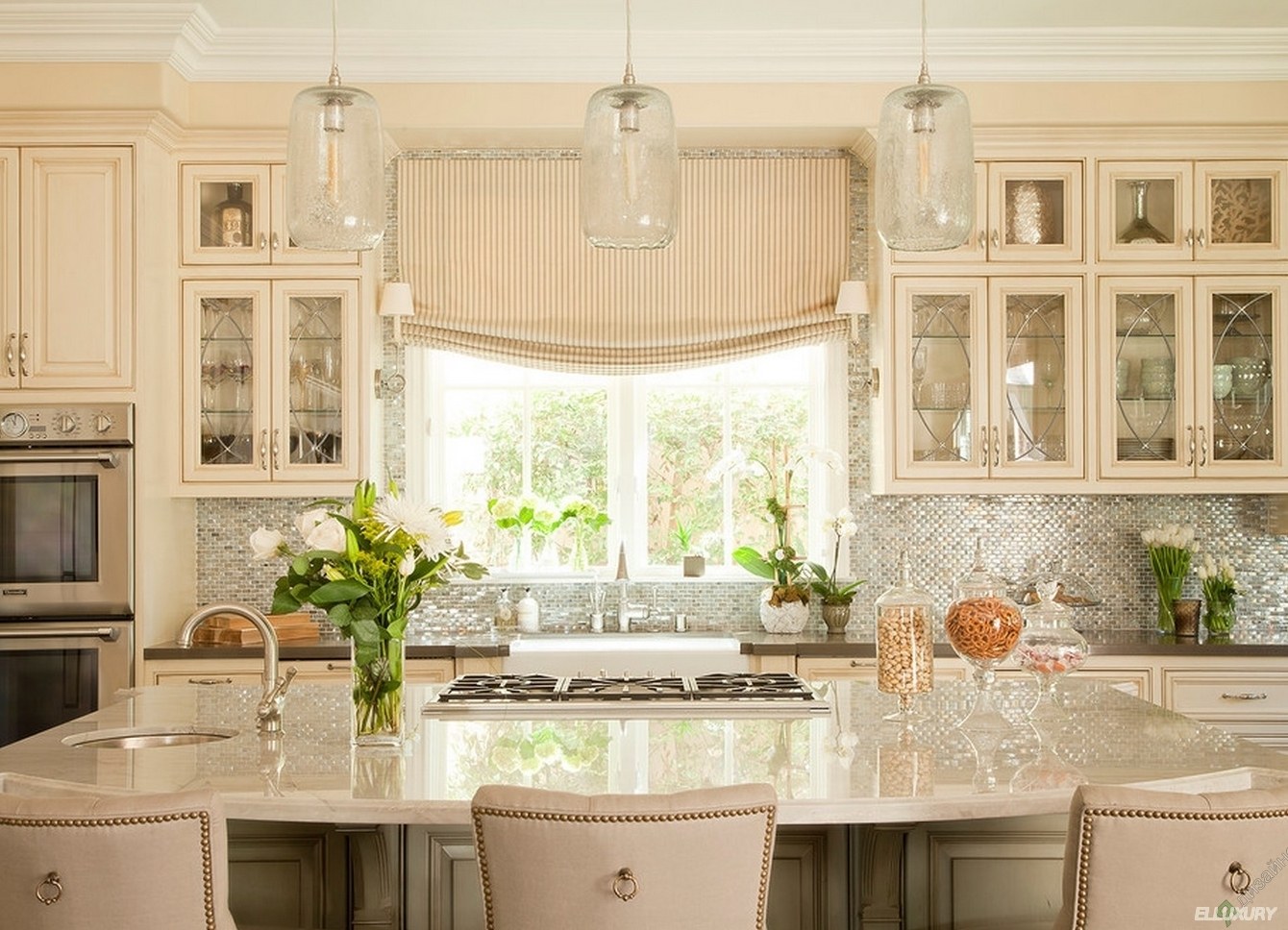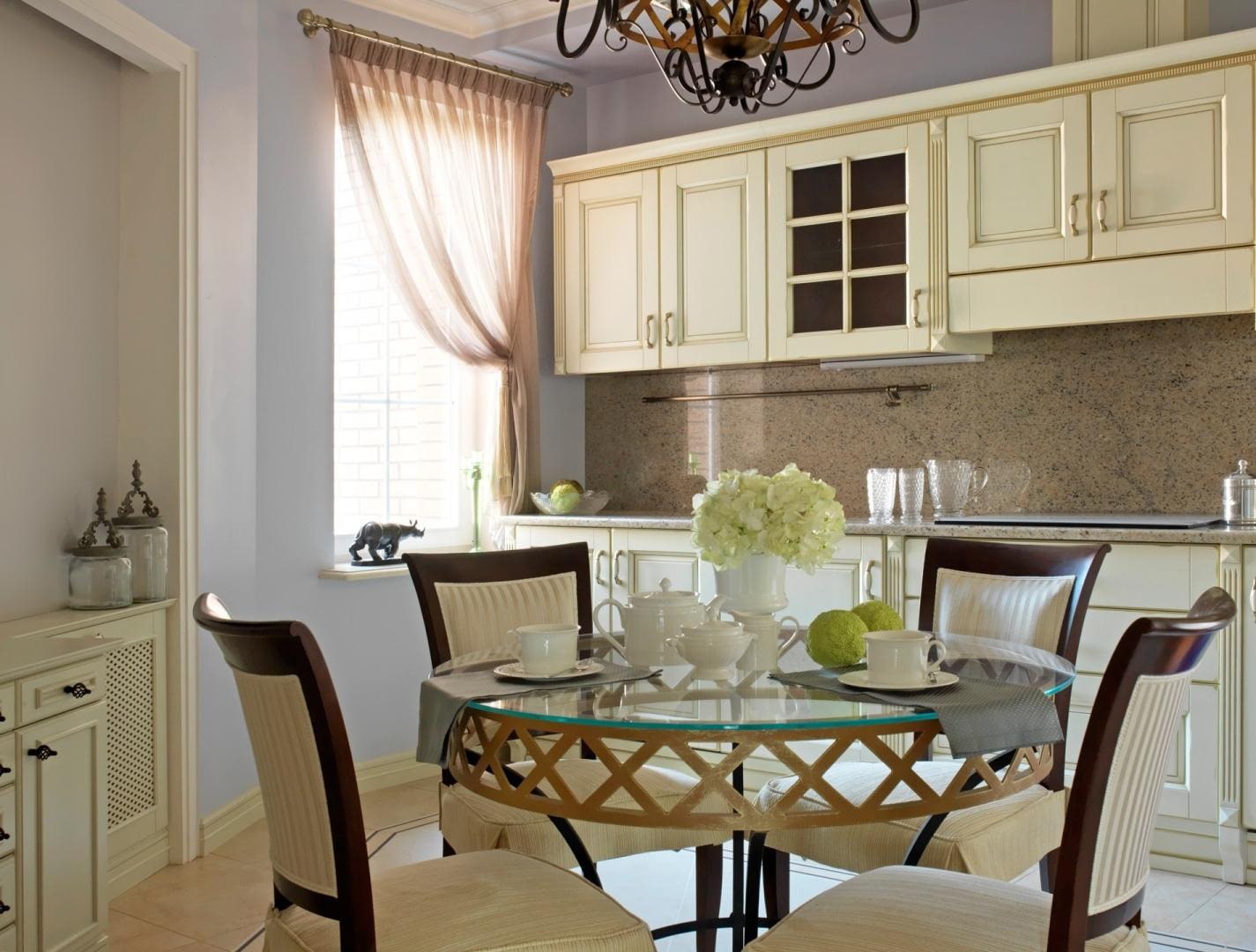 Шторы в интерьере классической кухни